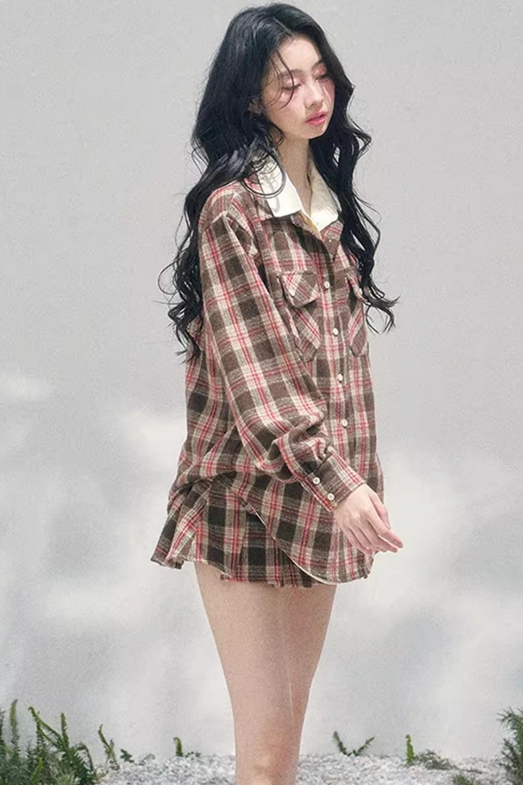 British Cafe Plaid Shirt and Short Skirt Set-Up