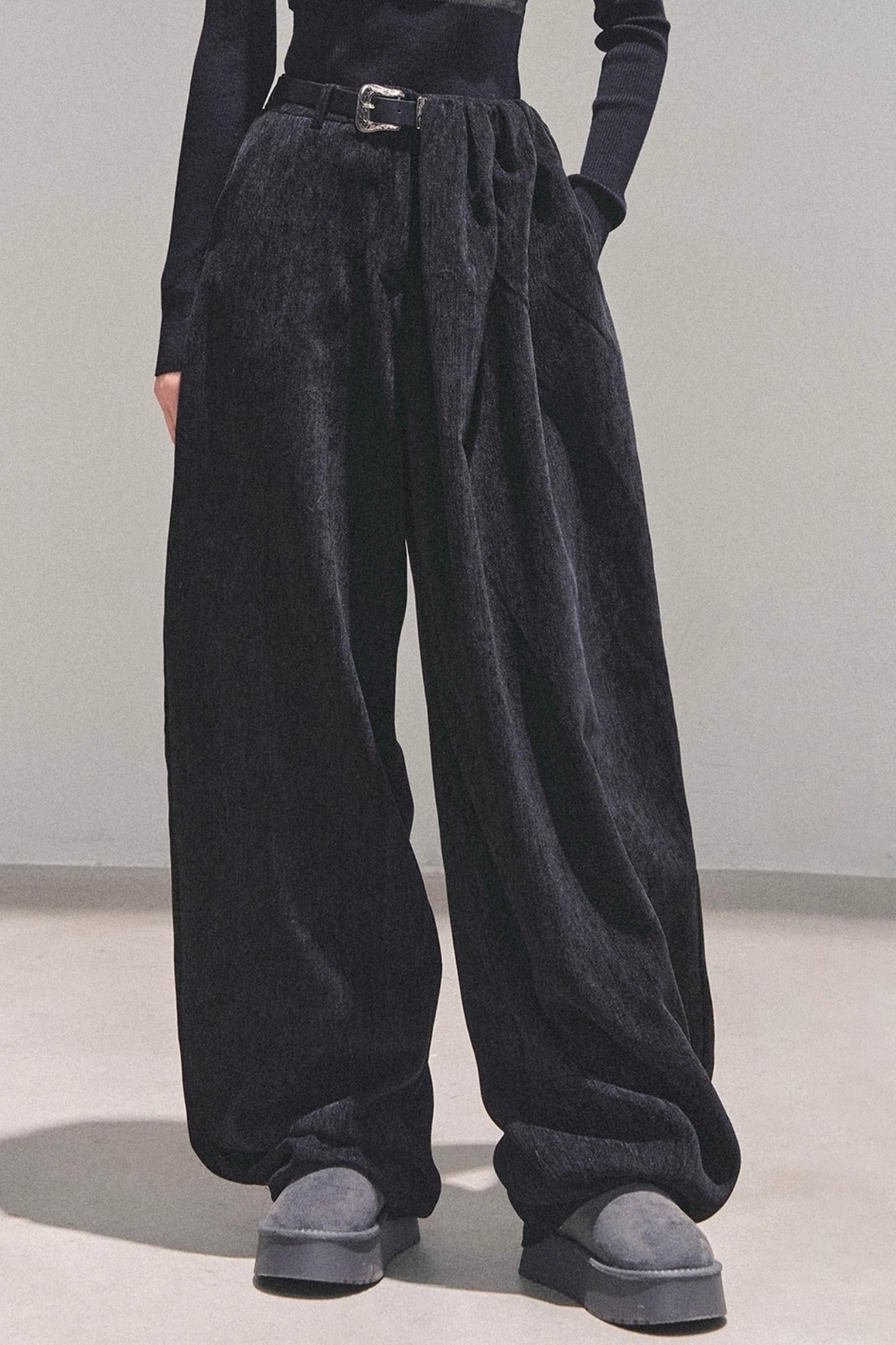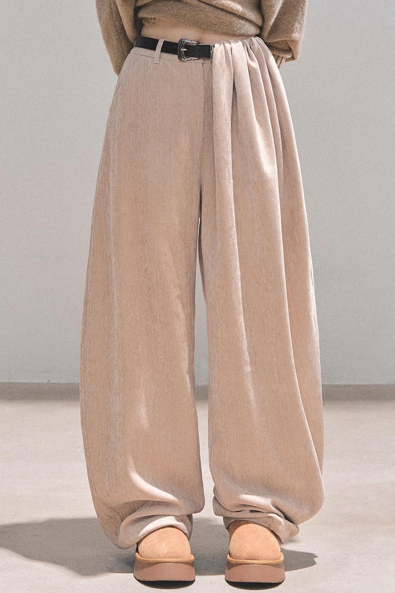 Fleece-Lined Wide-Leg Pants