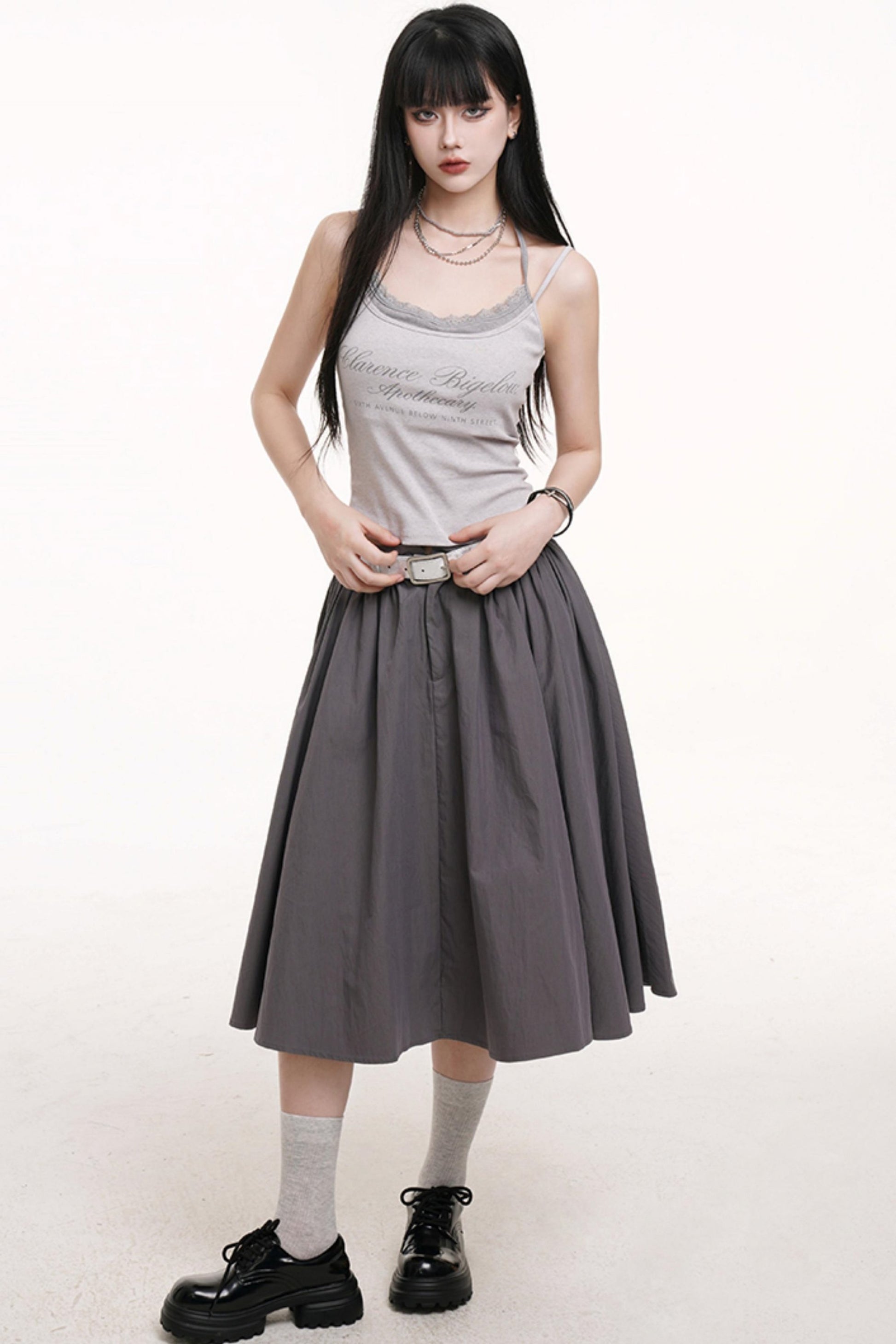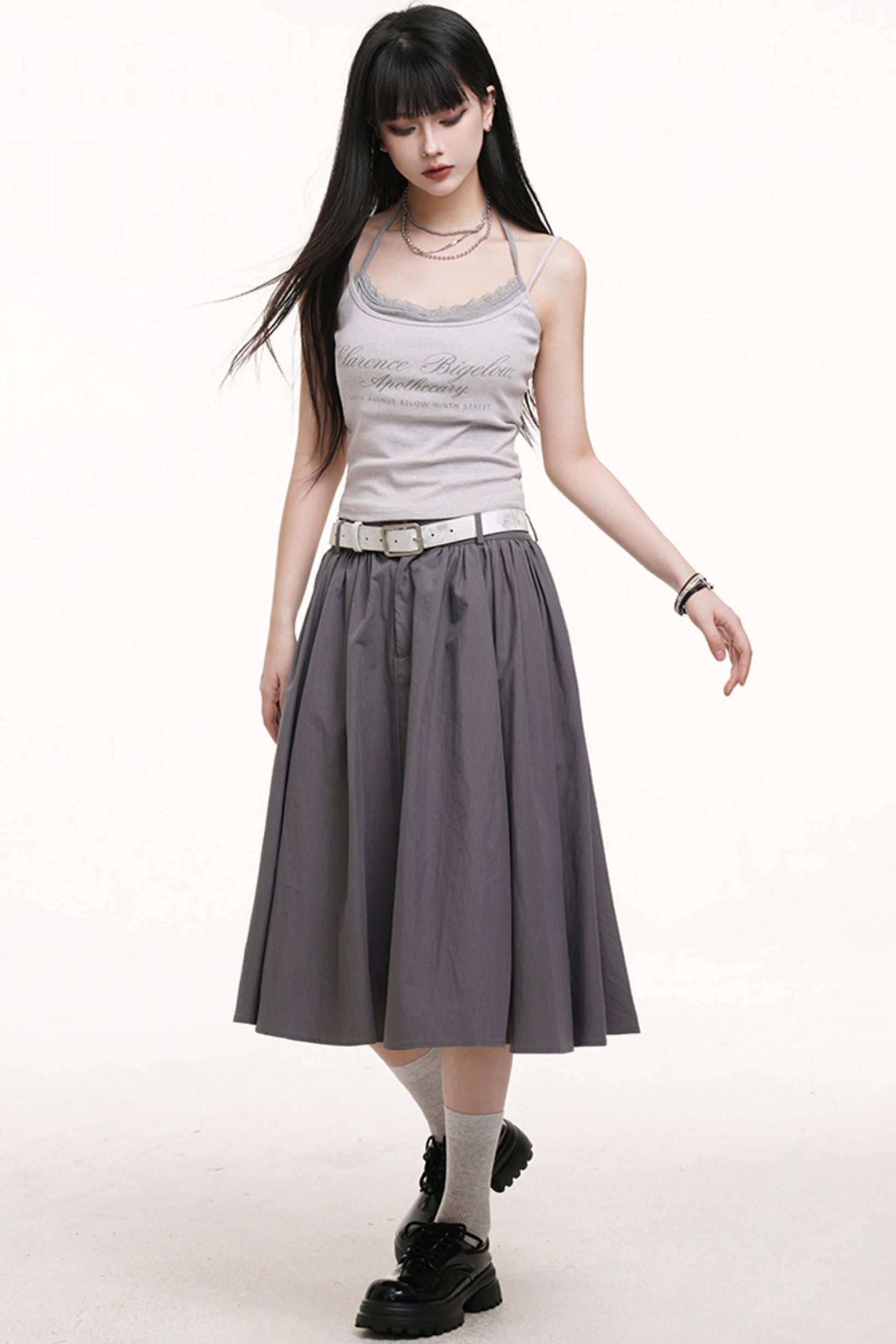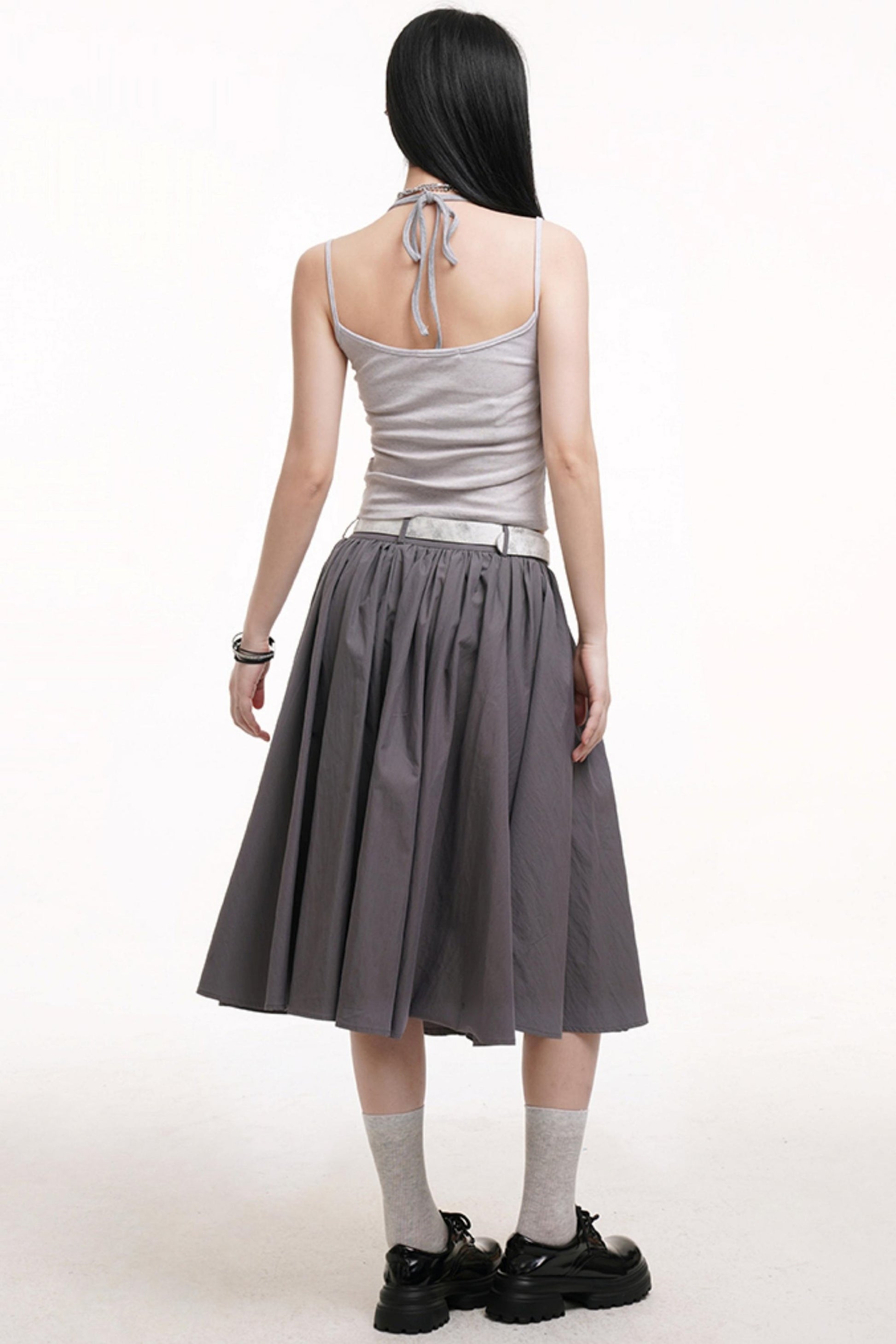 Gray Pleated Midi Skirt