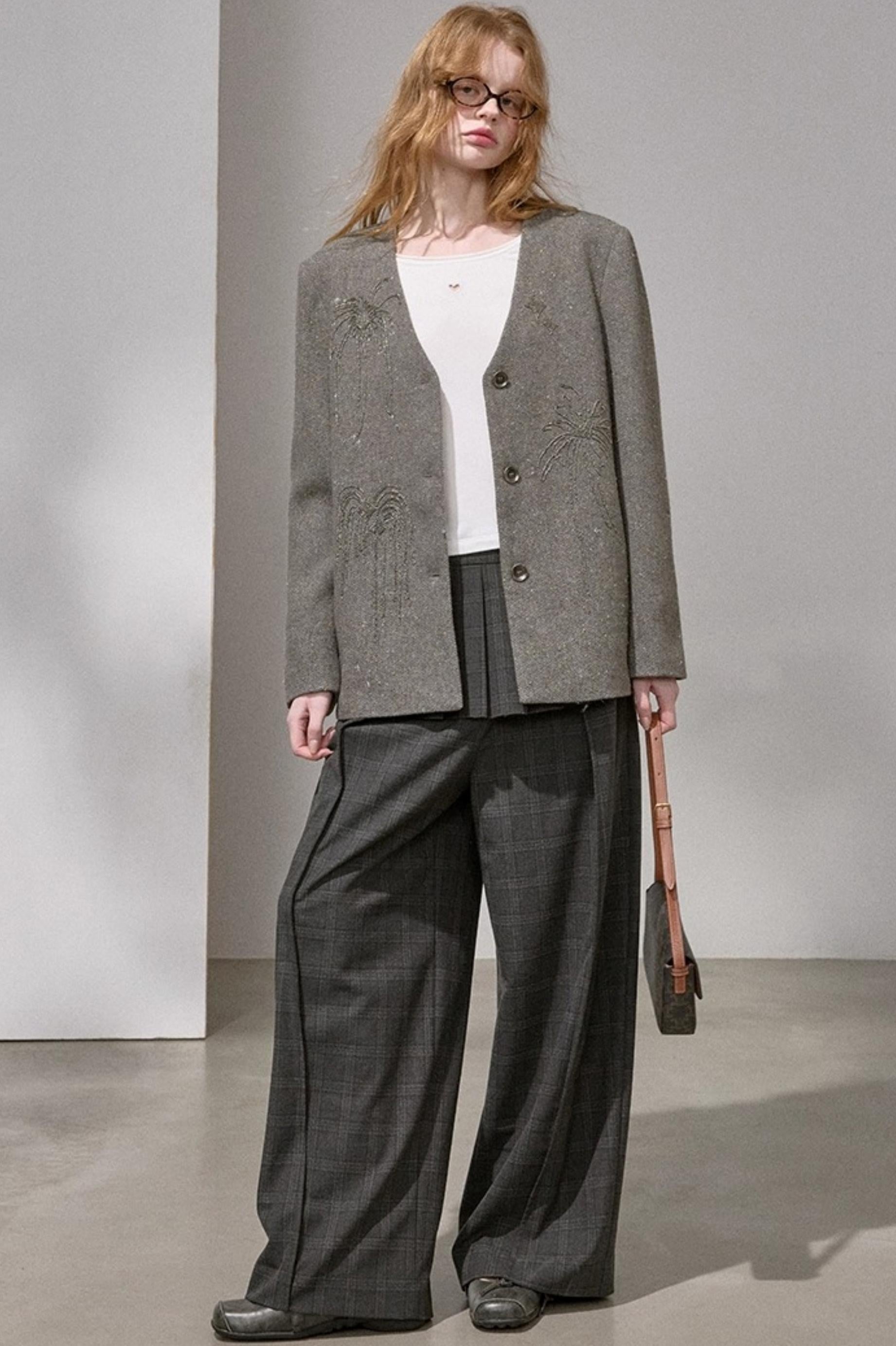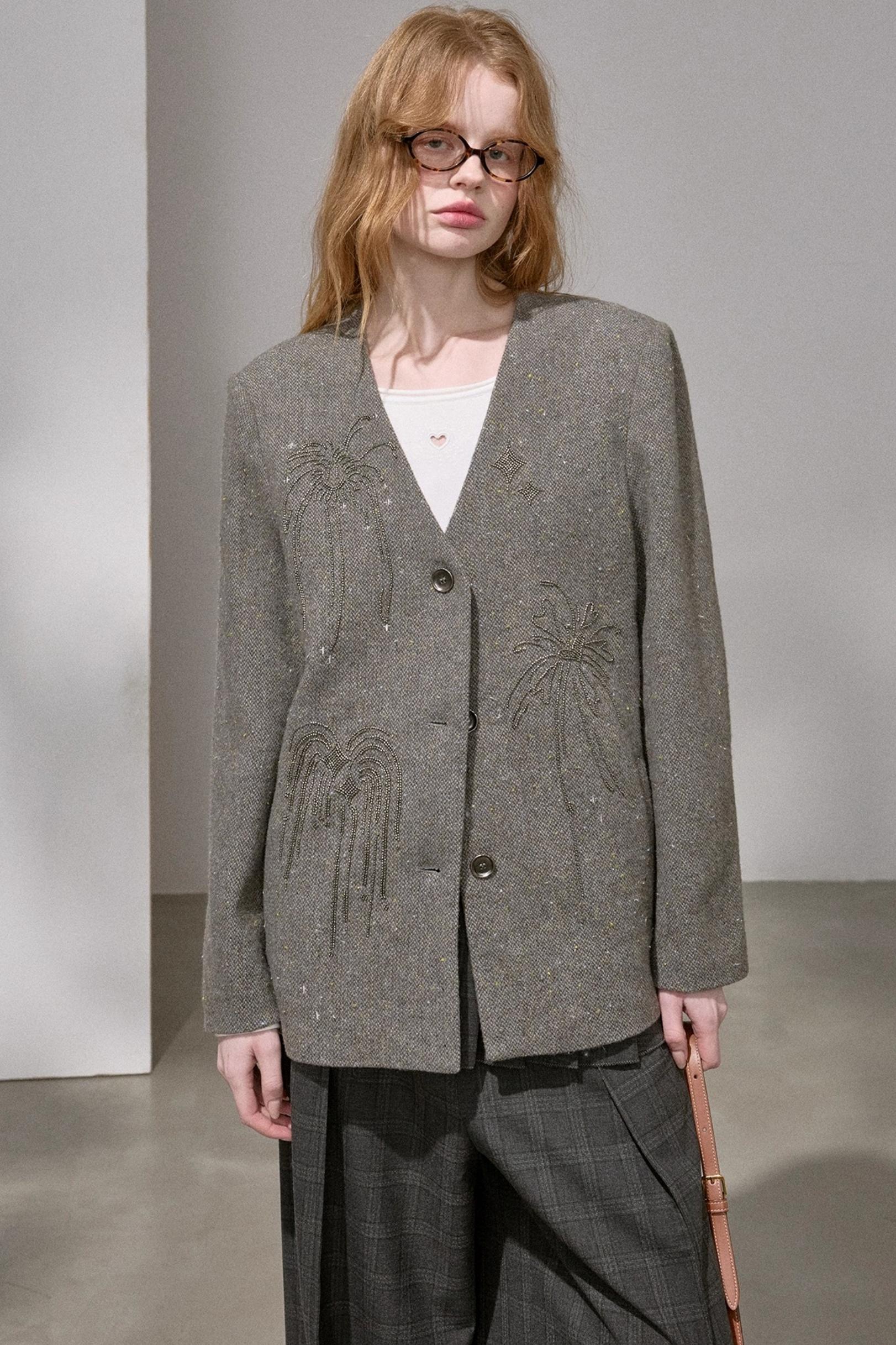 High-Density Beaded V-Neck Jacket