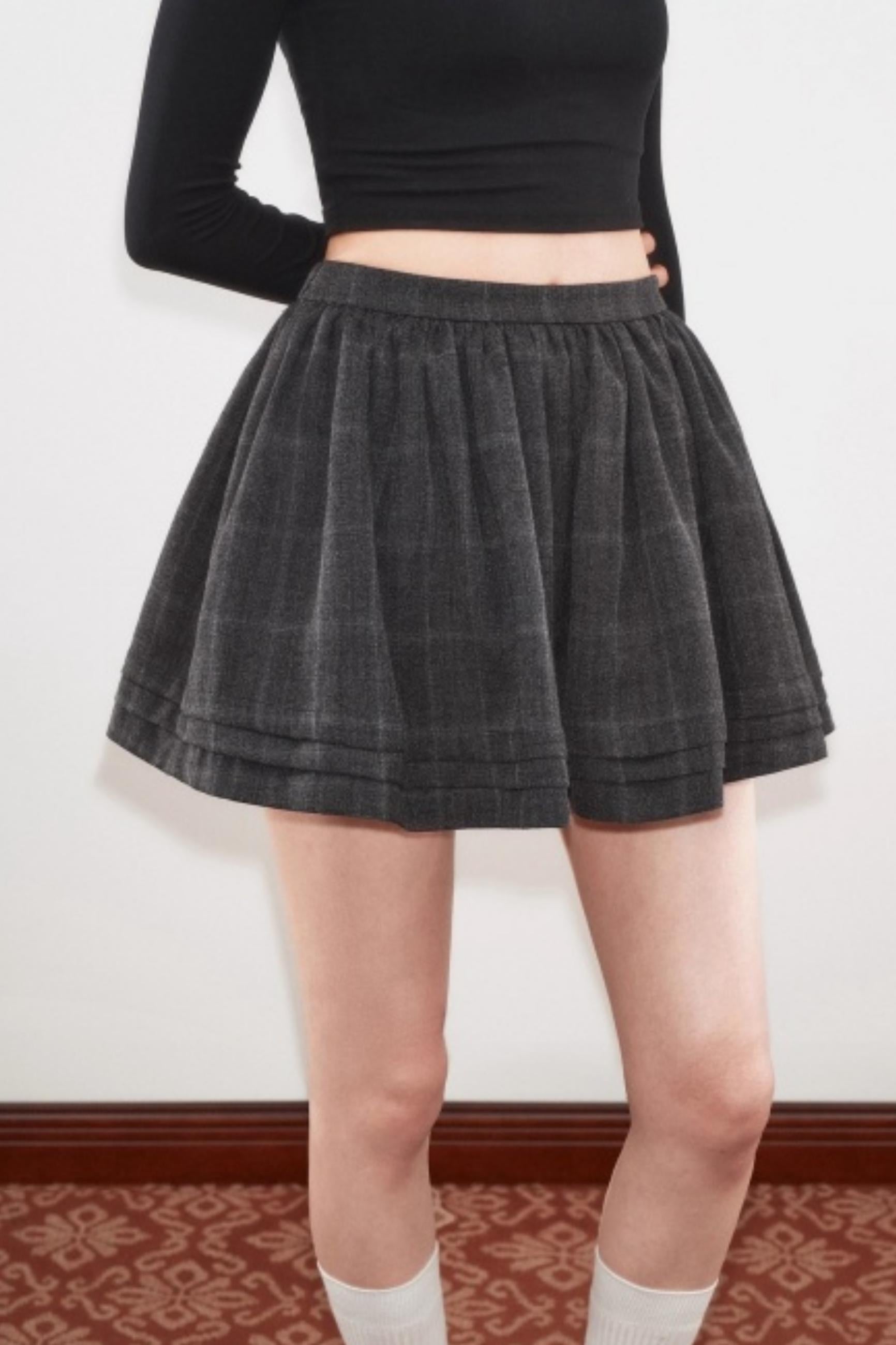 High-Waisted Pleated Puffy A-Line Skirt Set-Up
