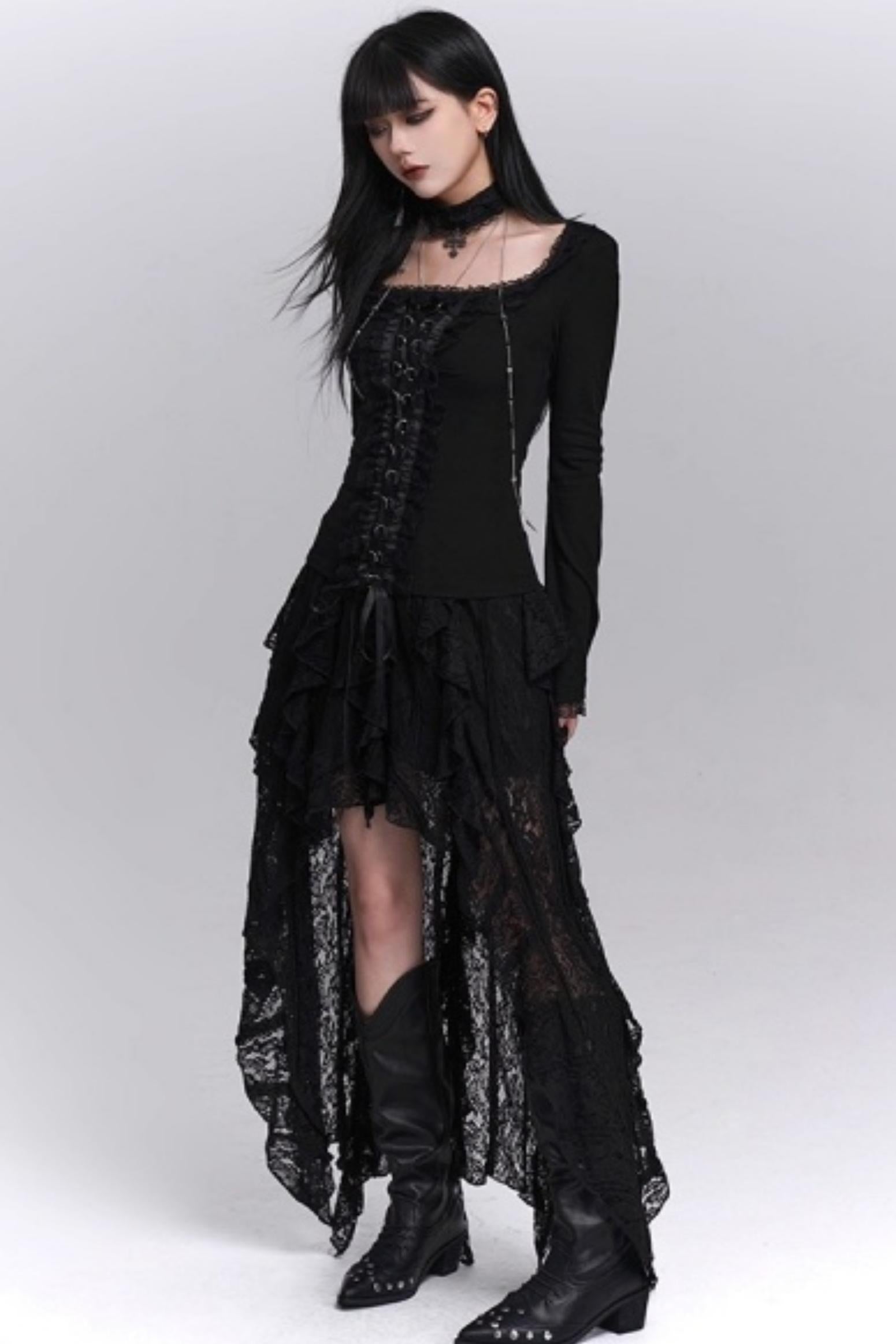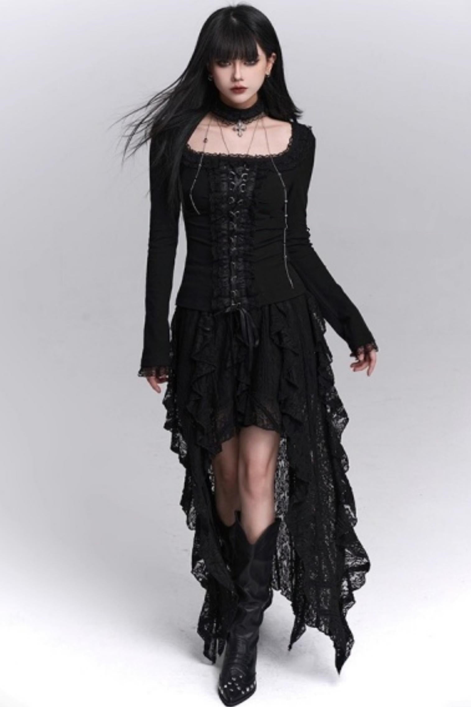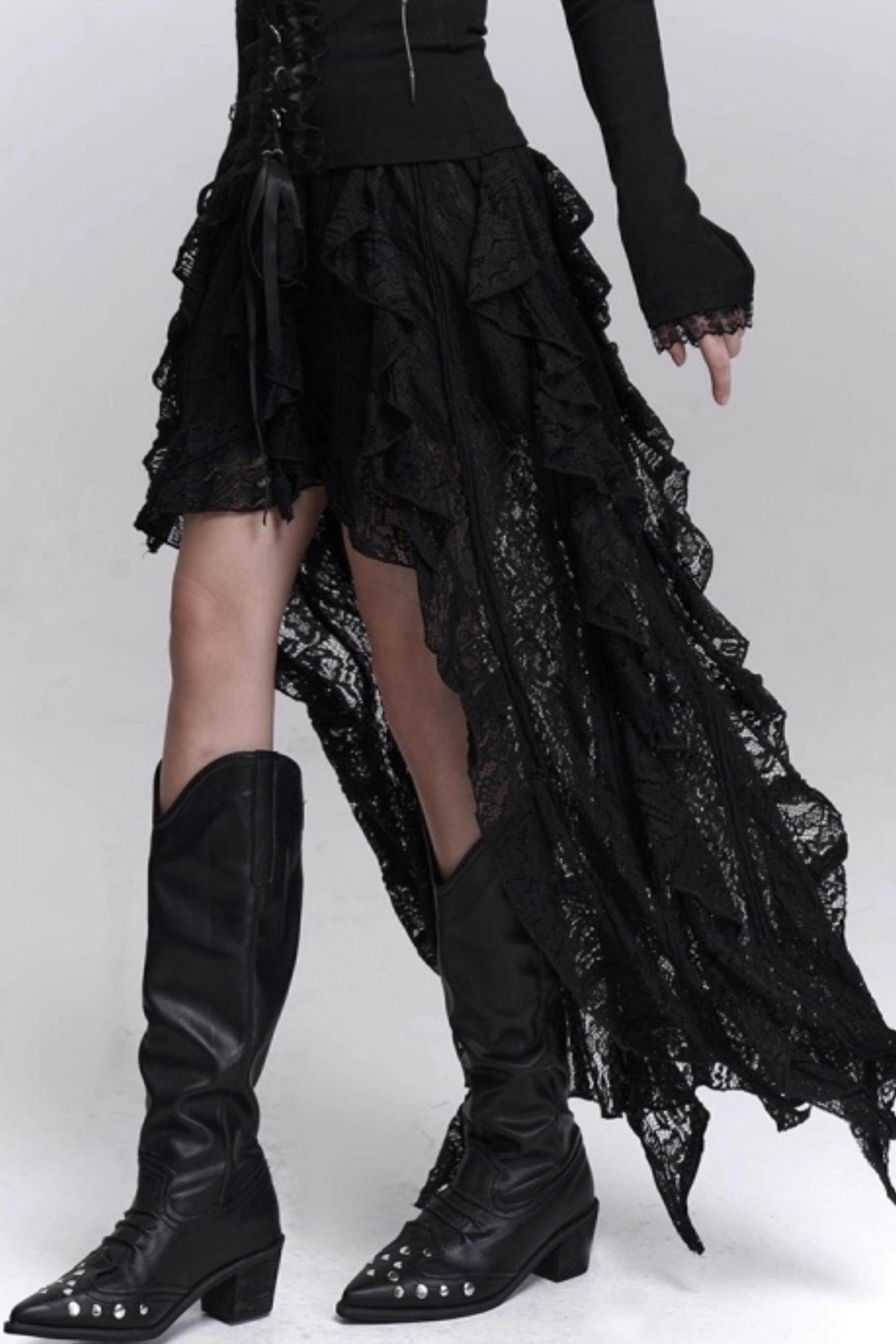 Irregular Lace Hem Skirt