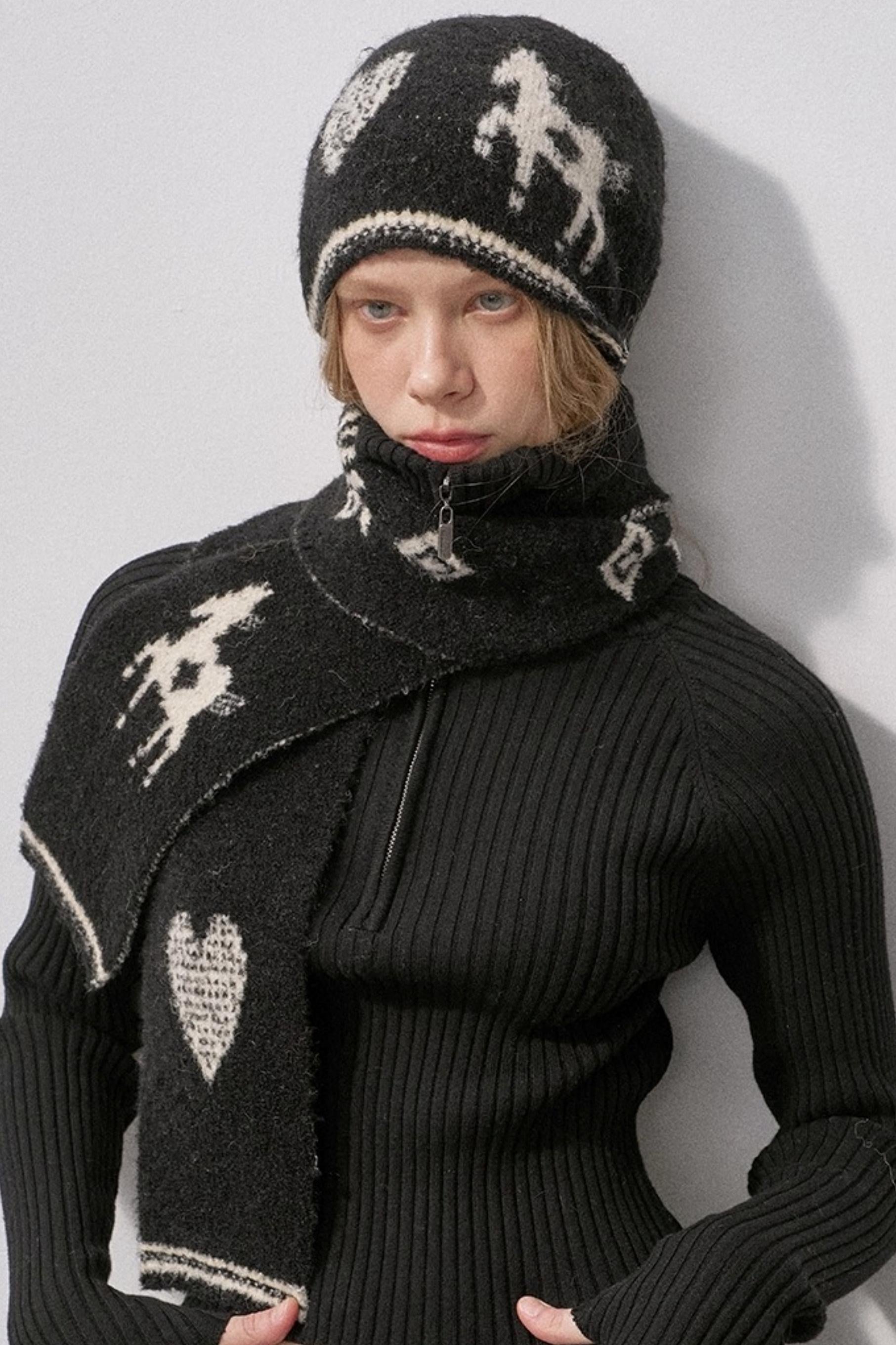 Love Pony Knitted Plush Warm Hat Scarf Set-Up