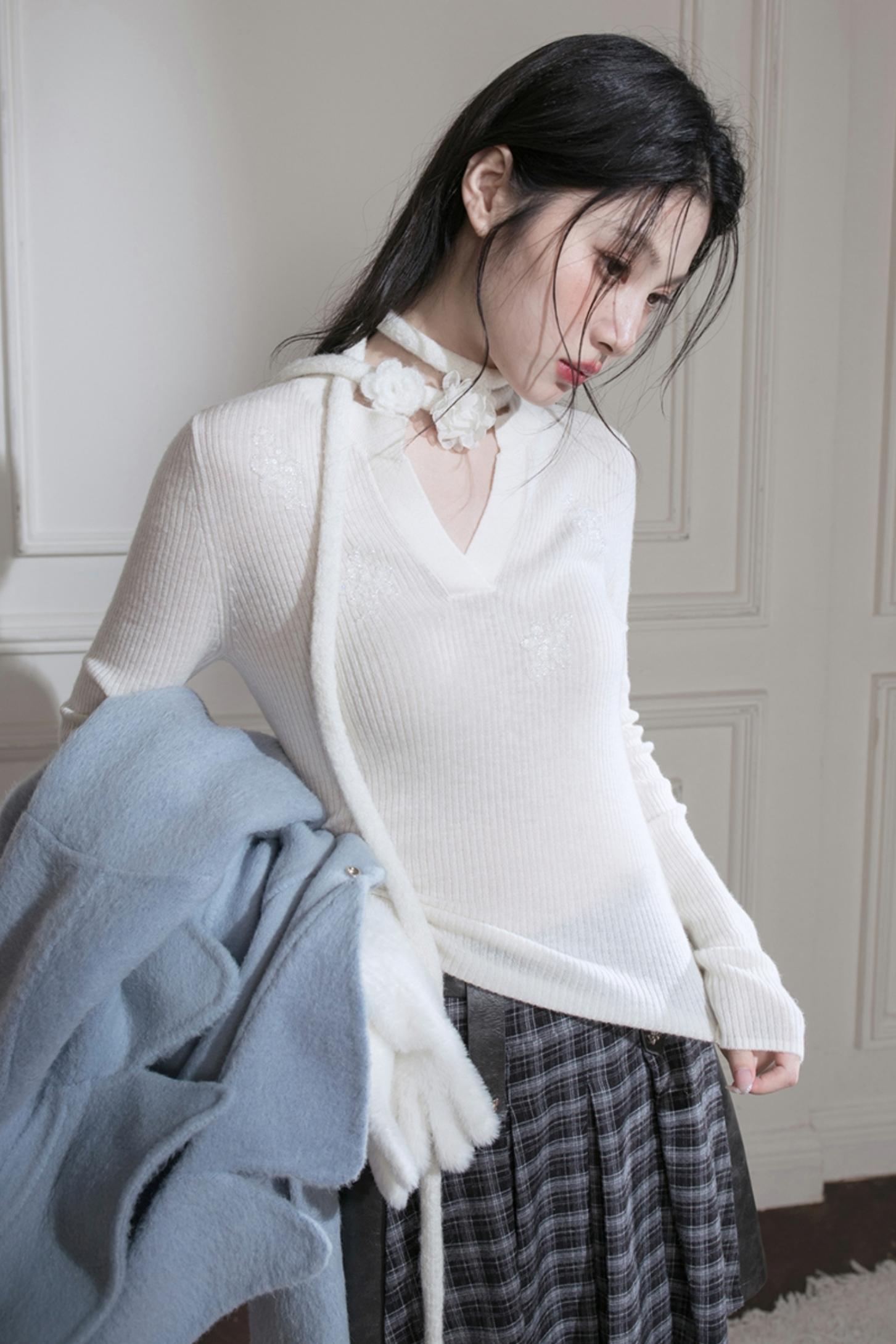 Wool Sequin Embroidered Top