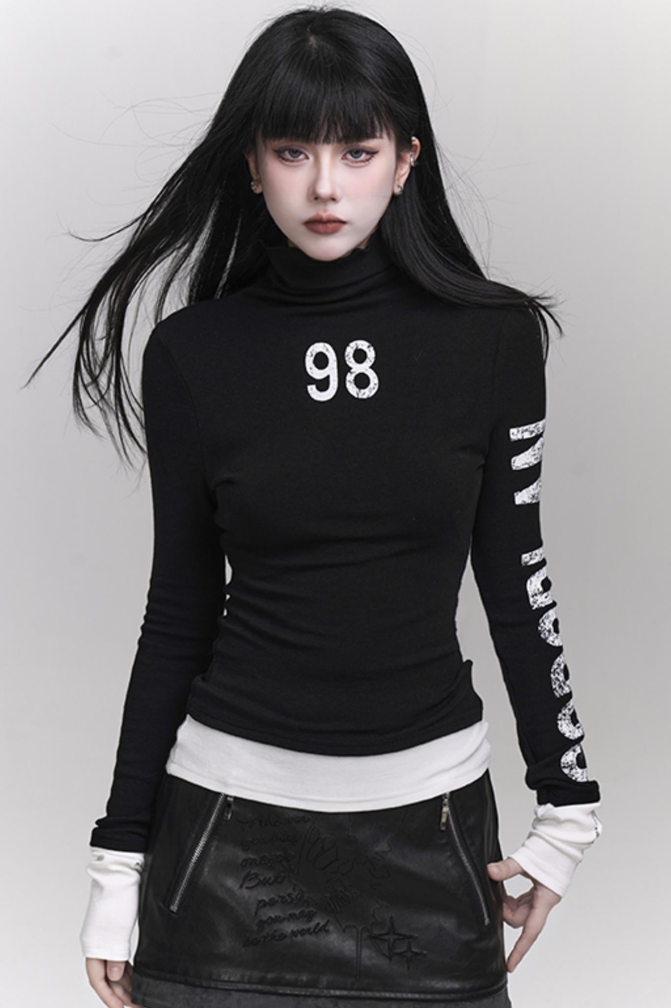 여성용 하이넥 니트 탑