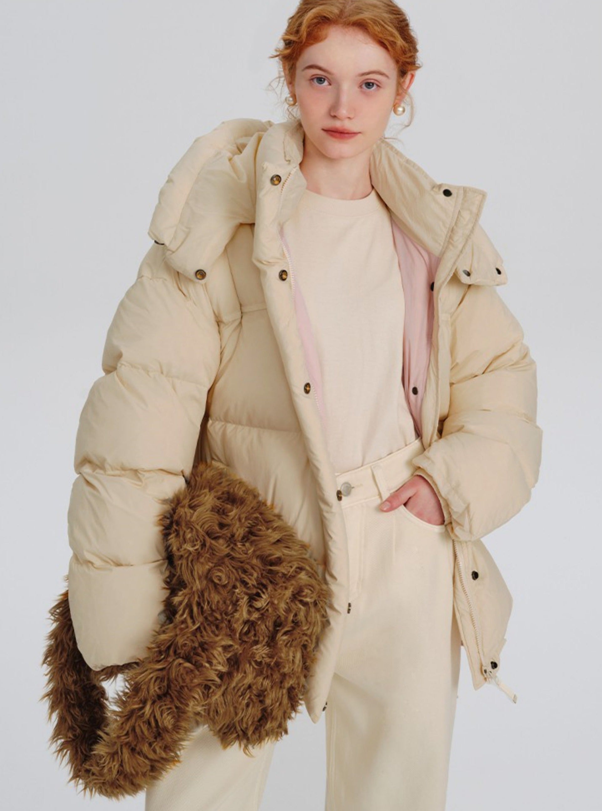 짧은 후드가 두꺼운 빵 재킷