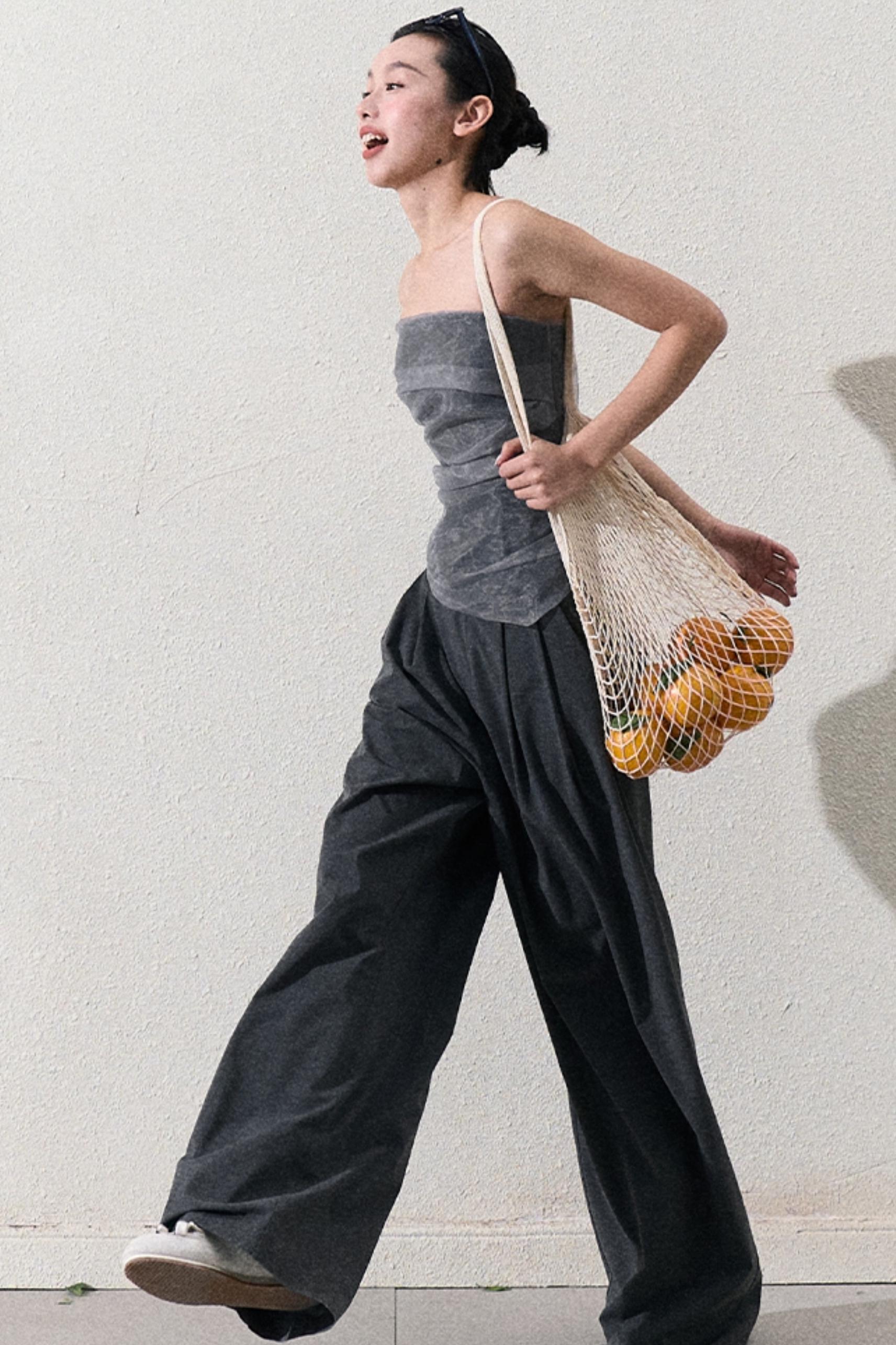 캐주얼 슬림 자켓 & 와이드 레이스 팬츠 세트