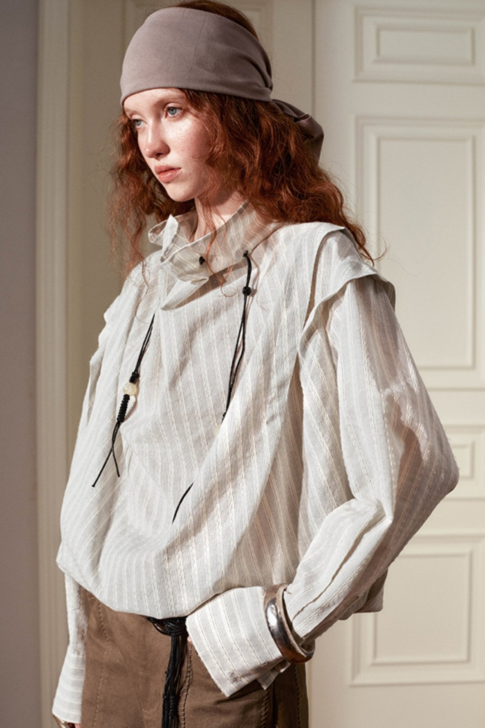 프리미엄 비즈 장식의 모조 리넨 셔츠