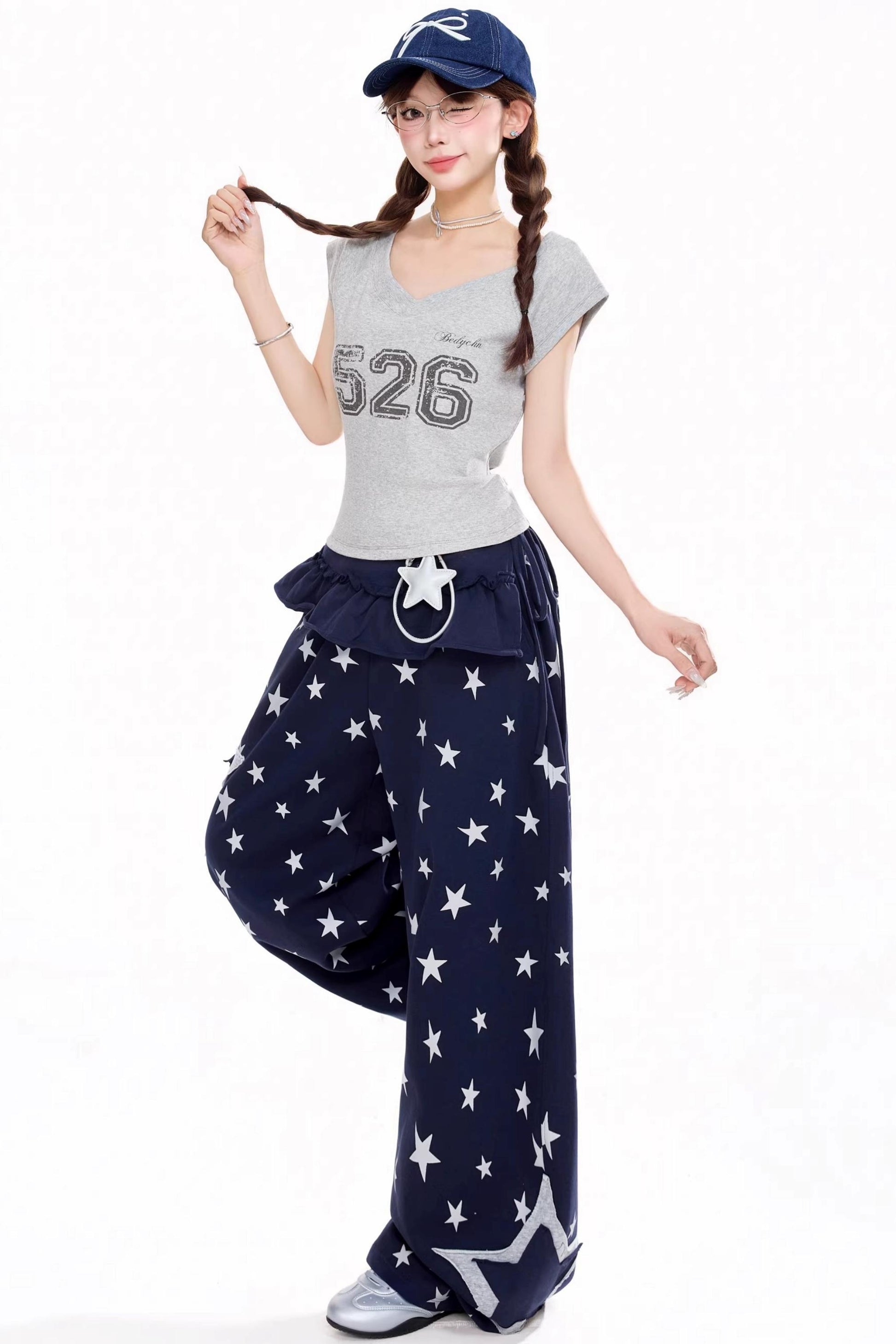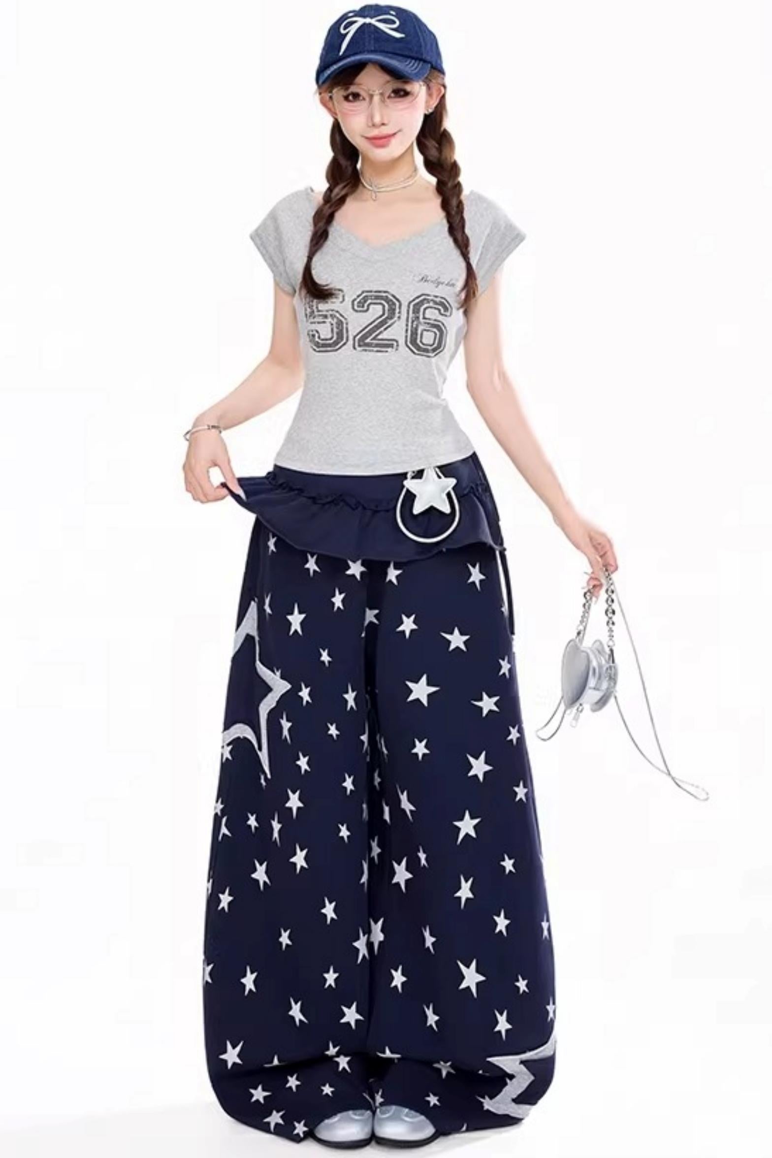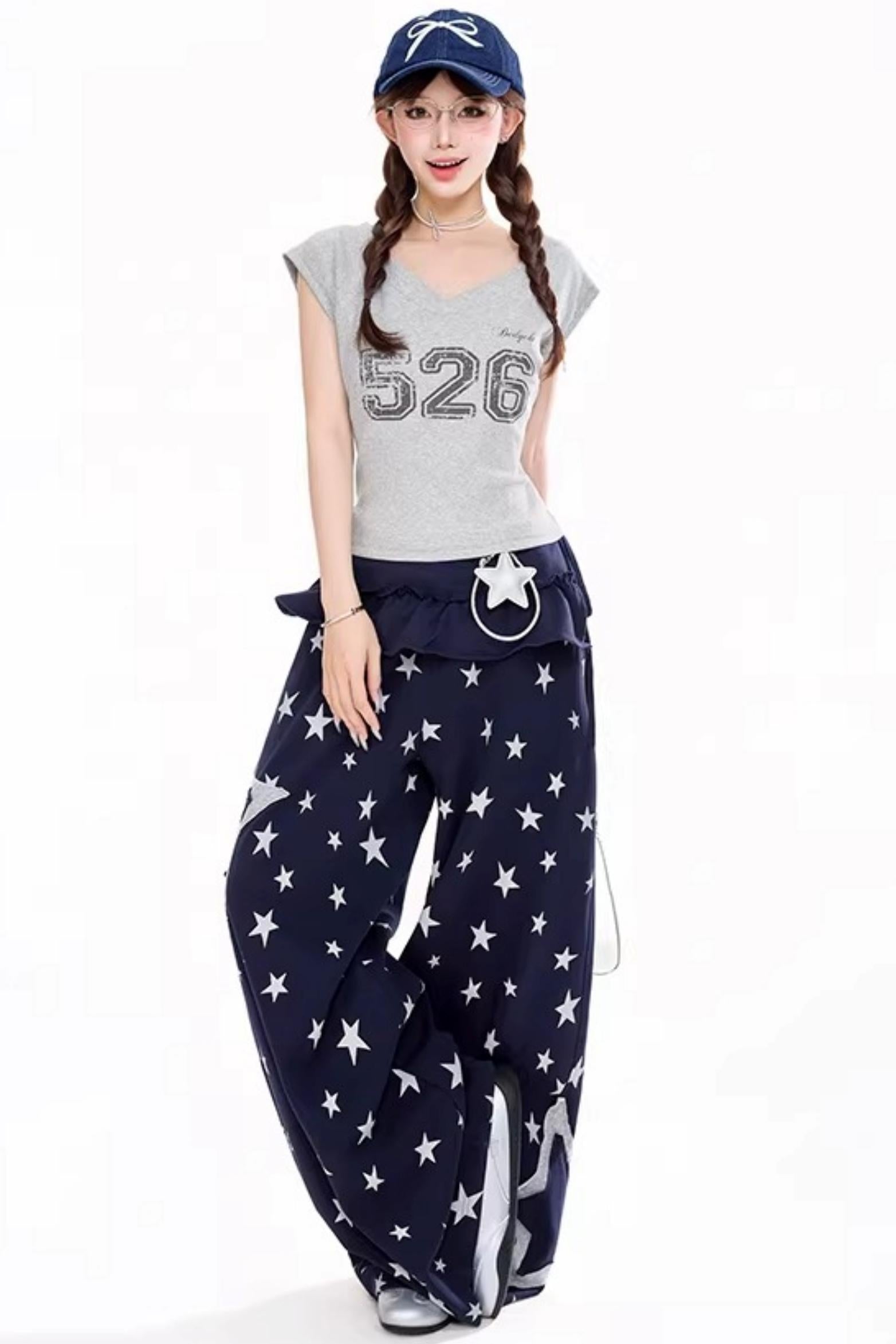 전체 별 와이드 레그 팬츠