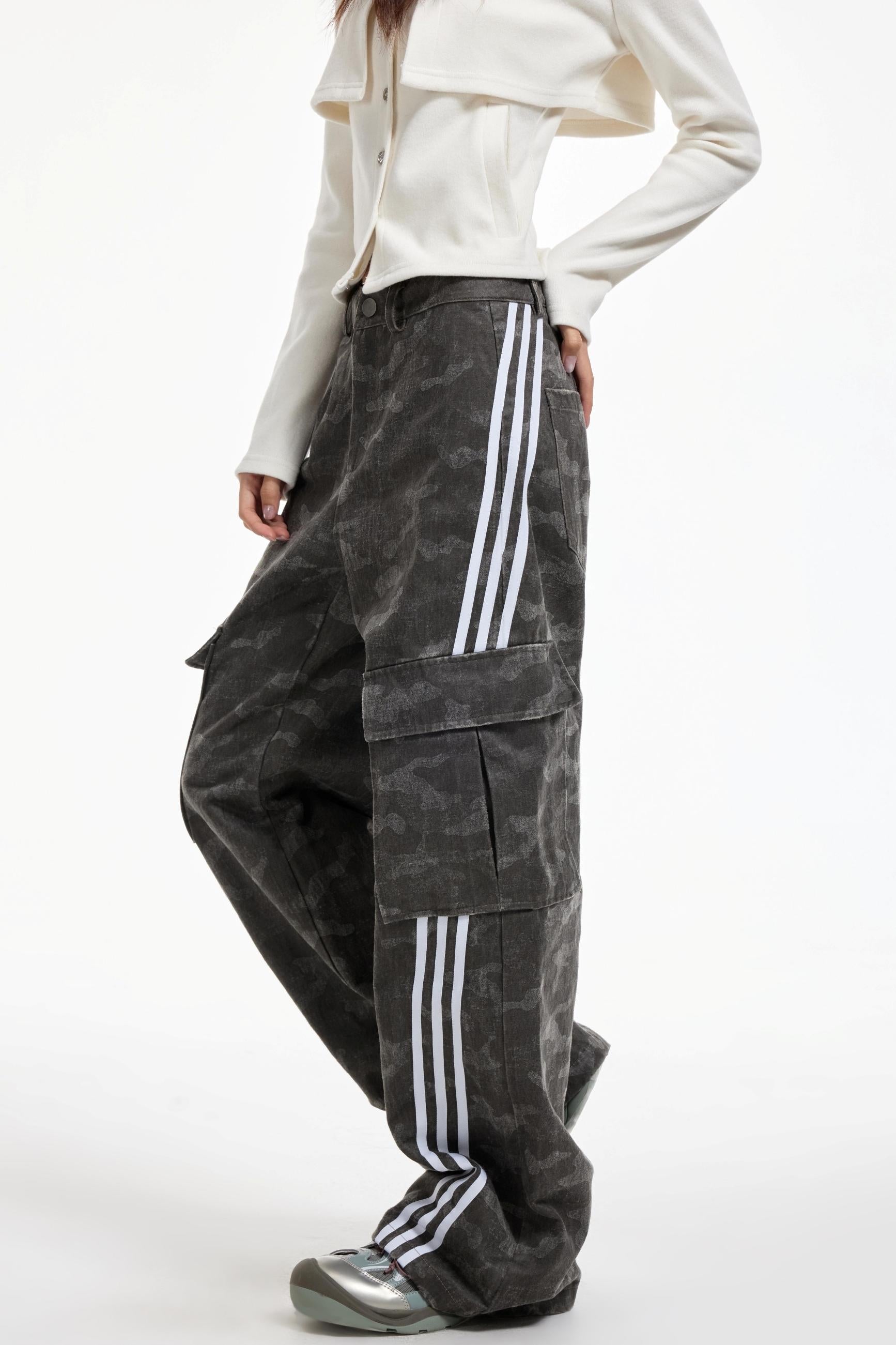 Gray Striped Cargo Pants