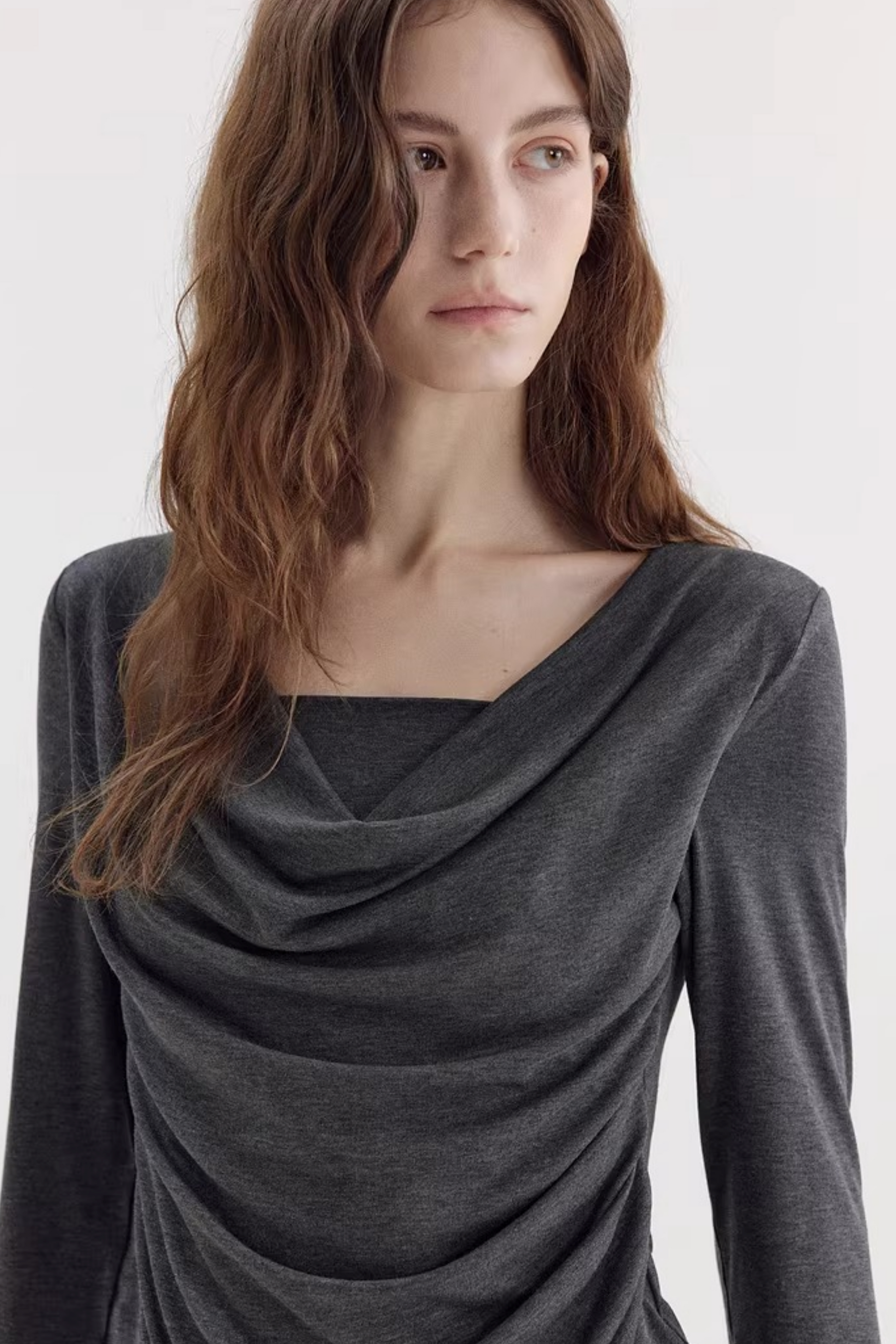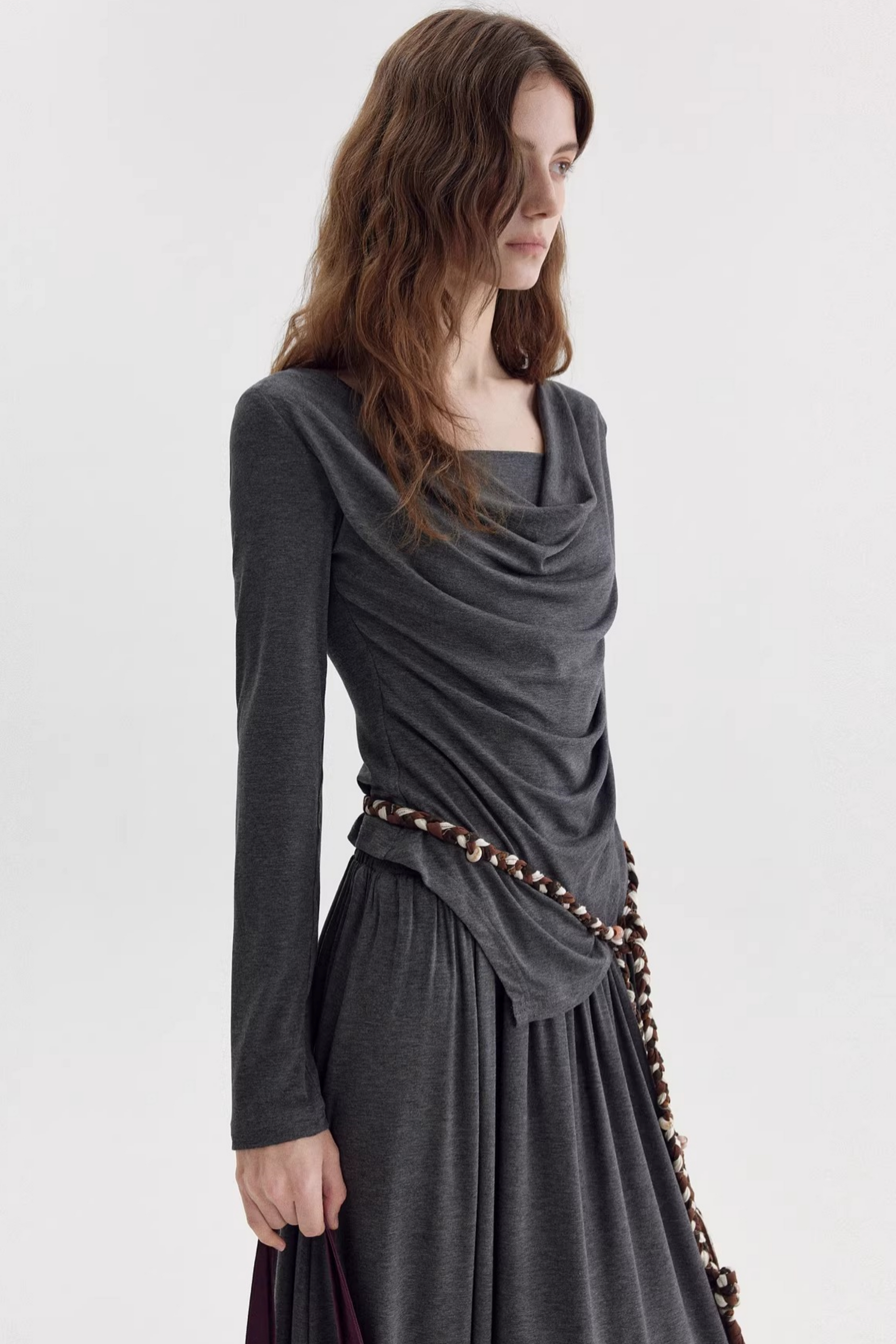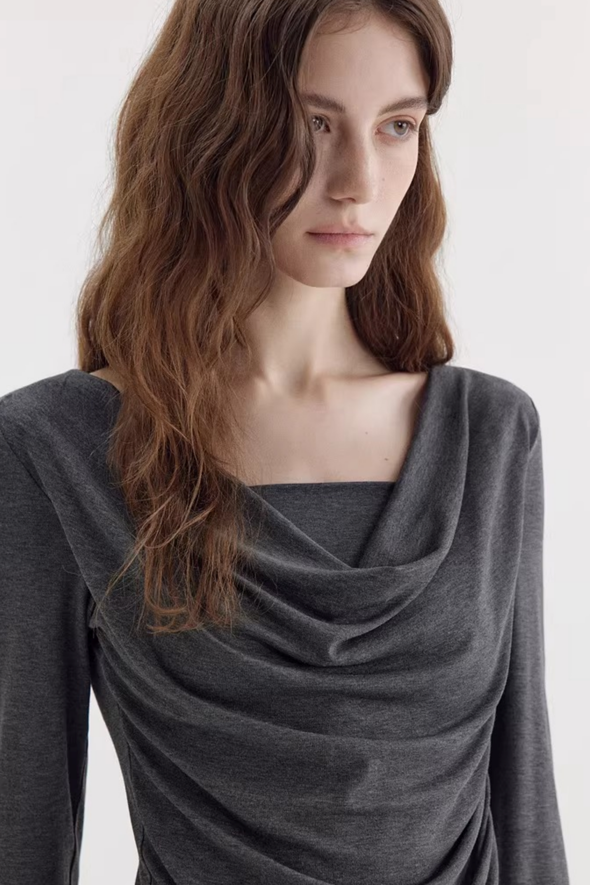 비대칭 스택 칼라 블라우스
