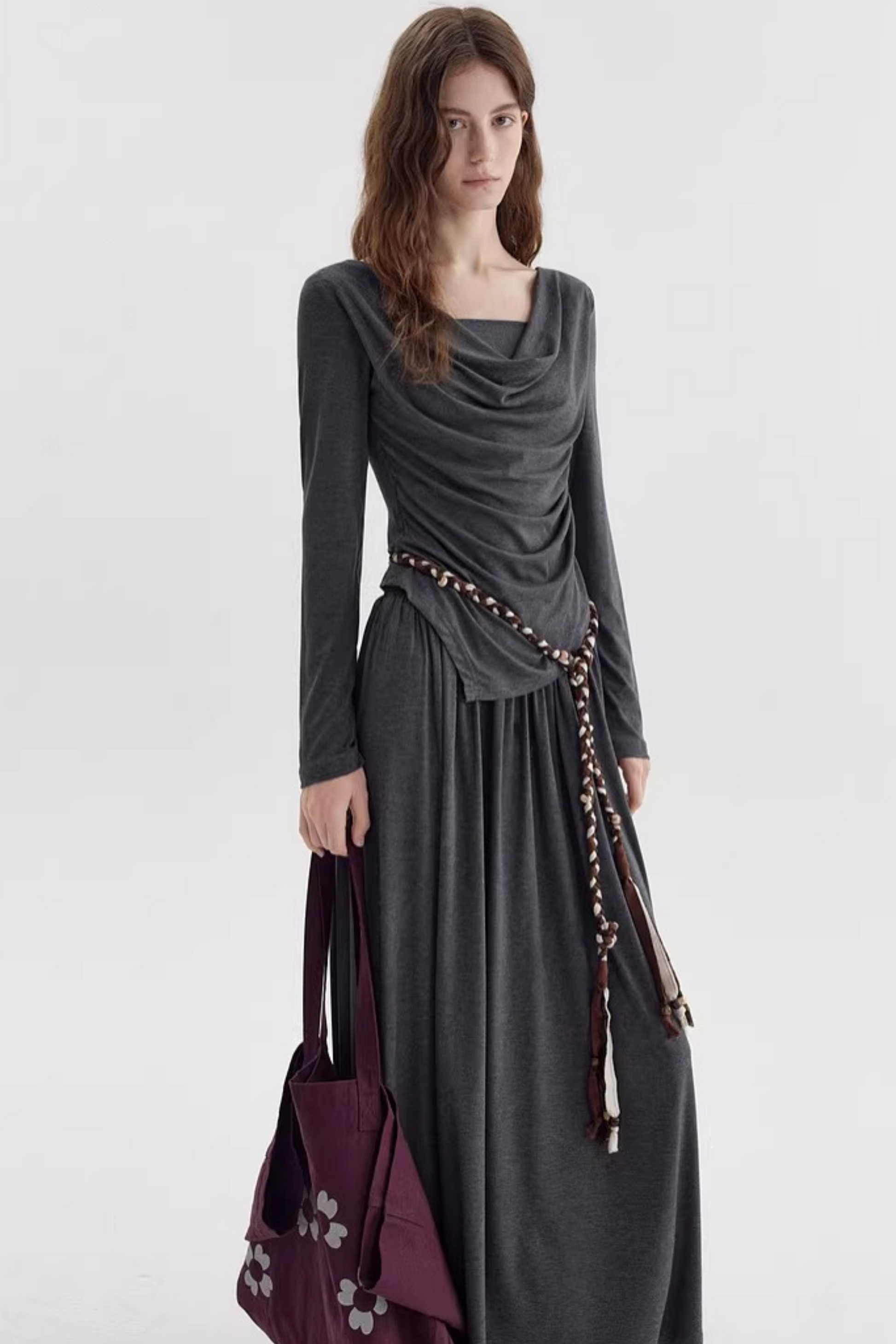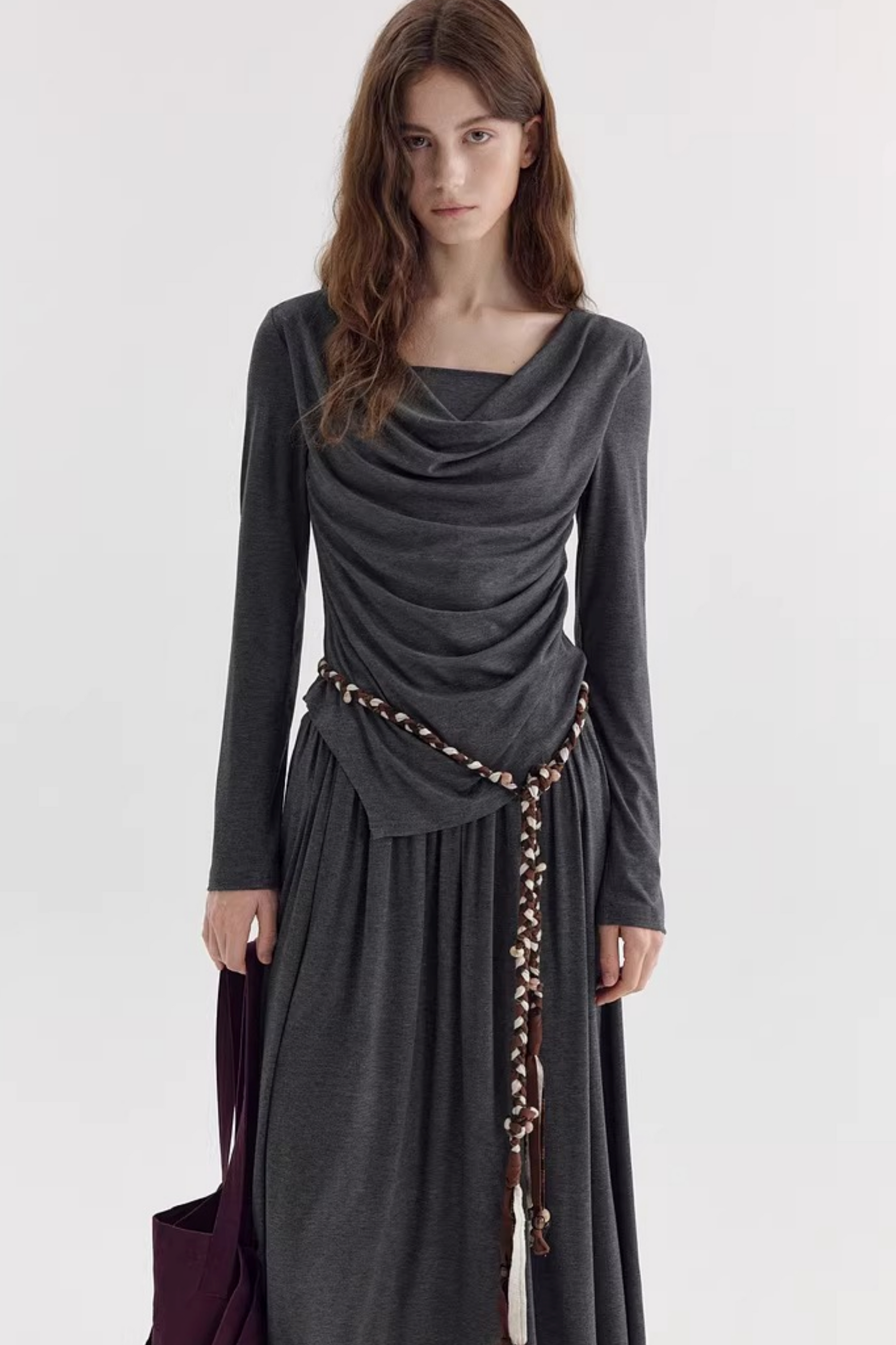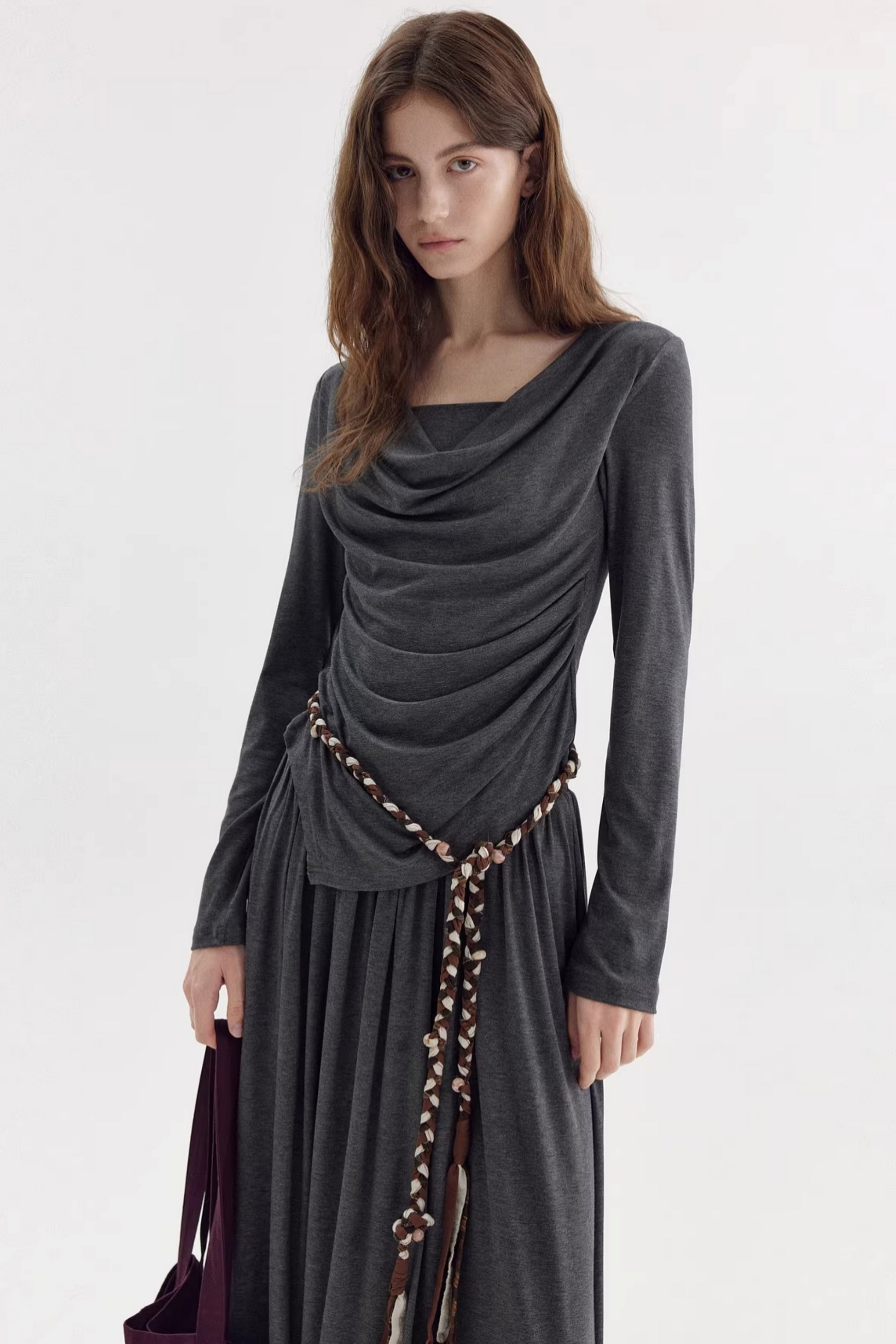 비대칭 스택 칼라 블라우스