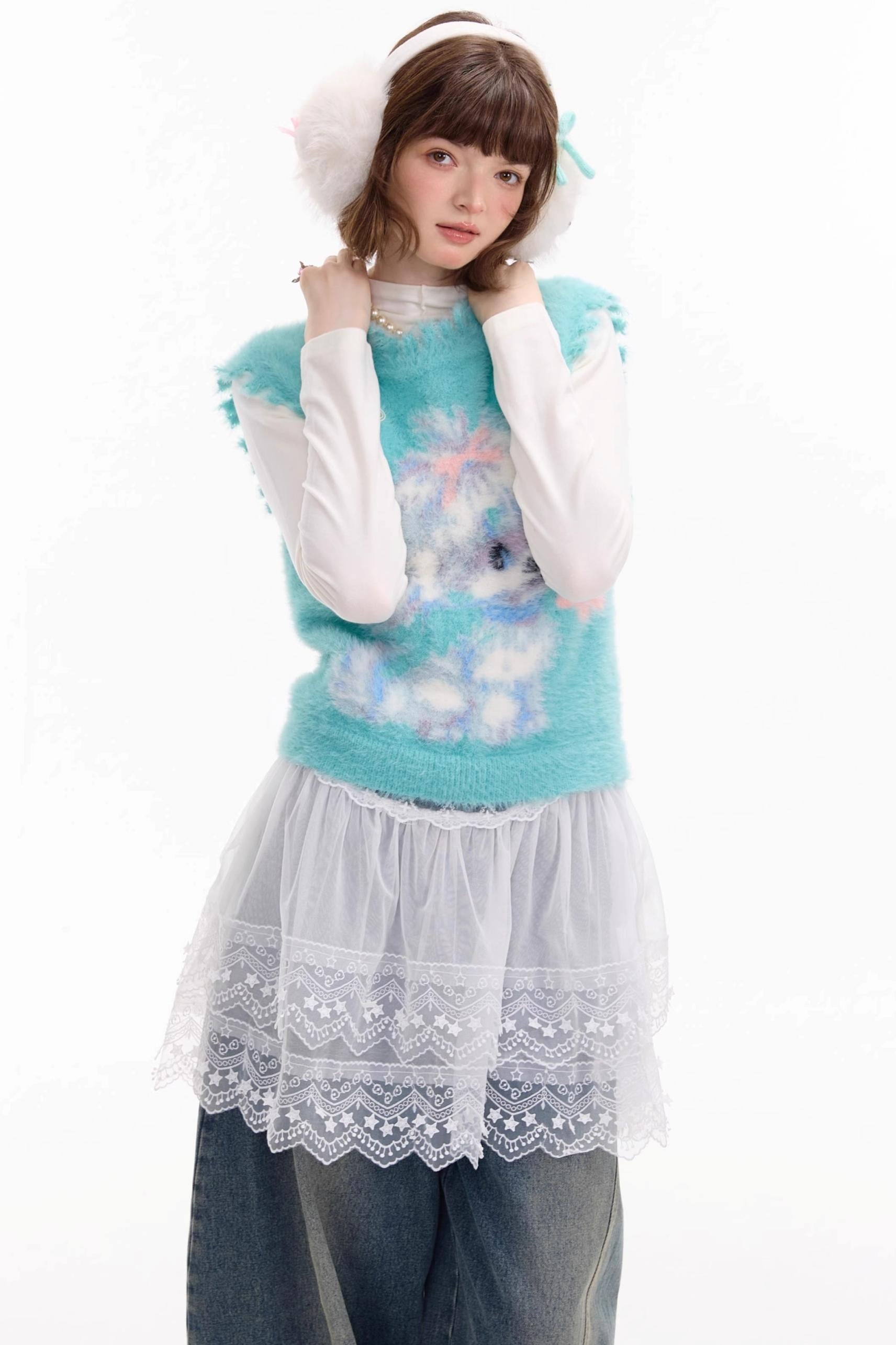 Autumn Vintage Teal Dog Knitted Sweater