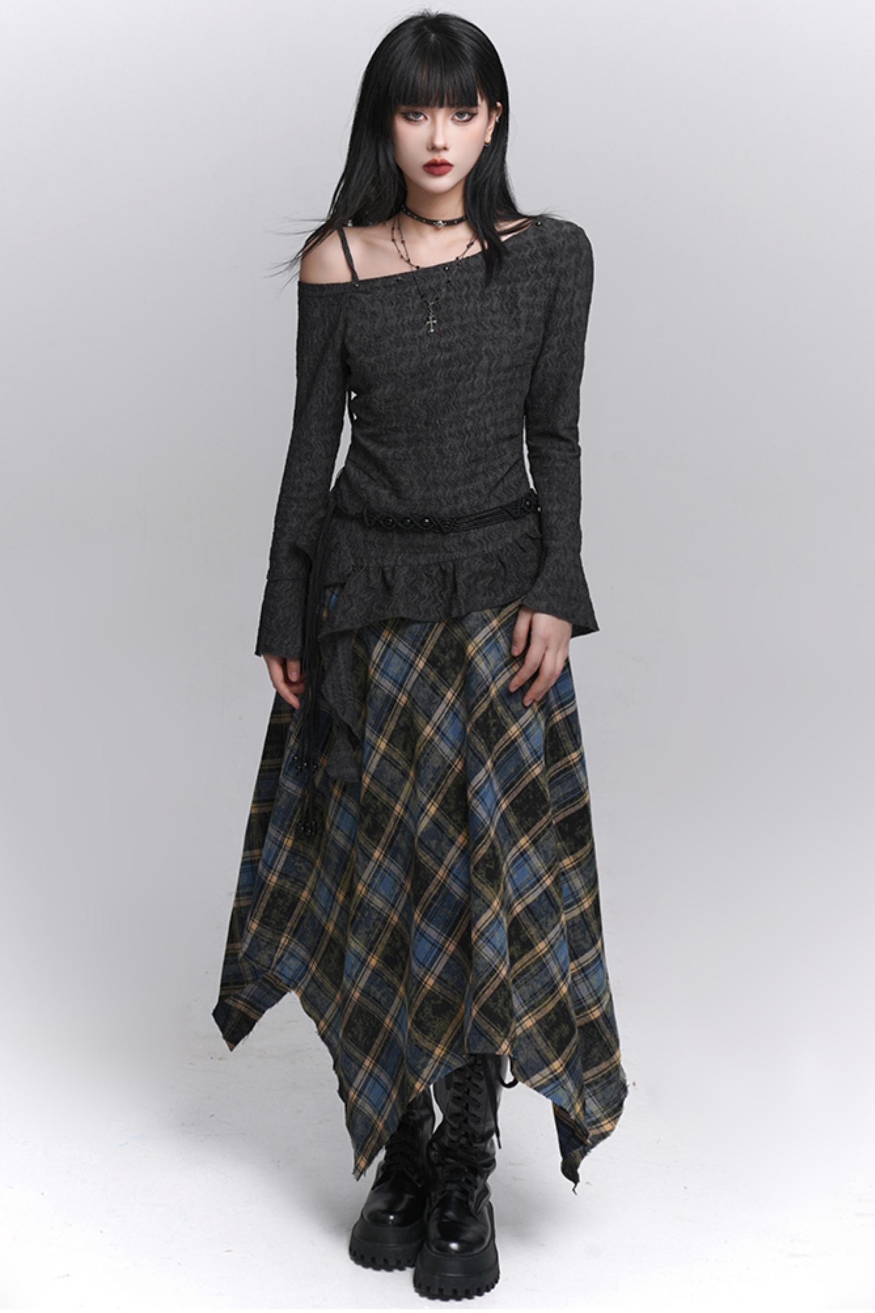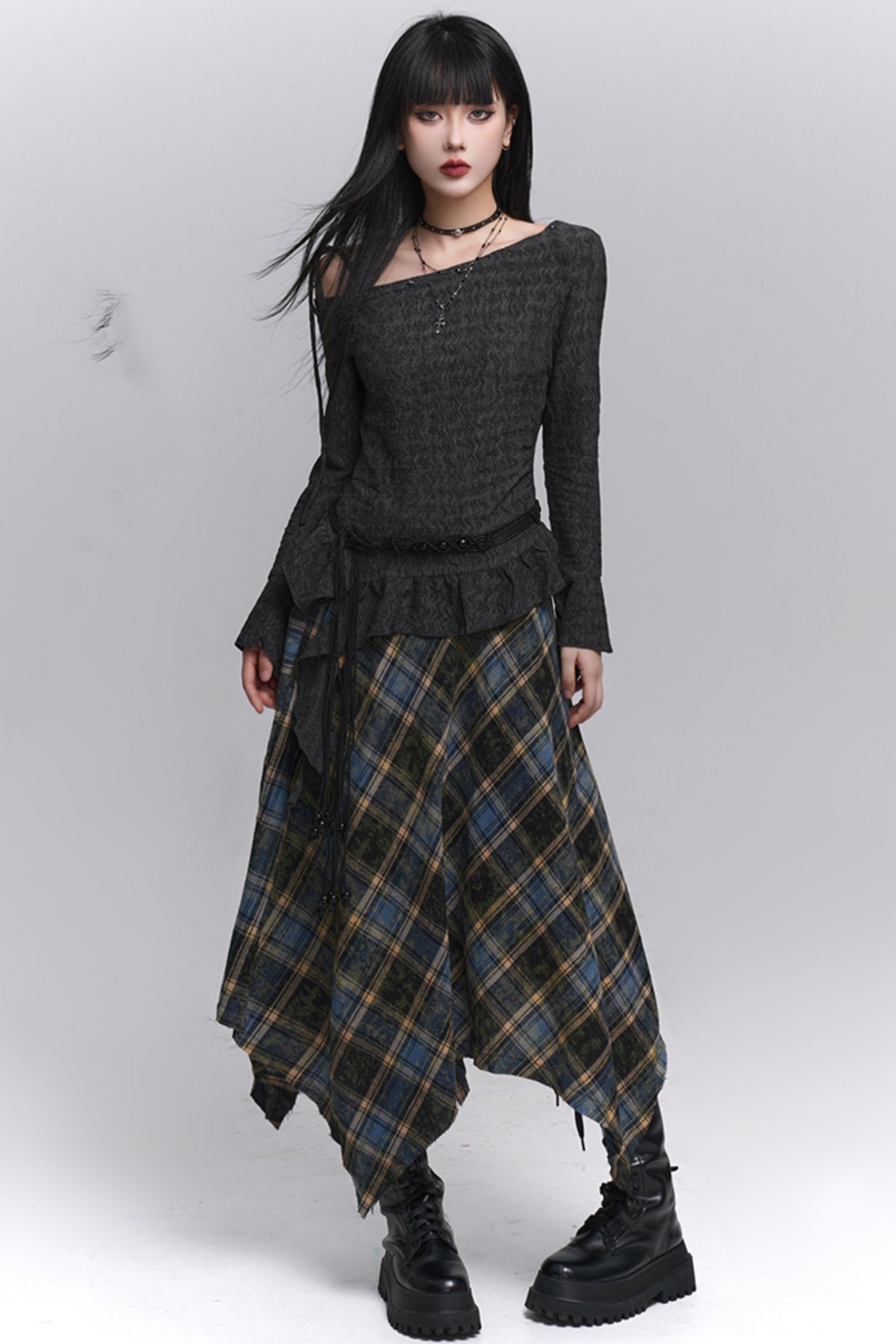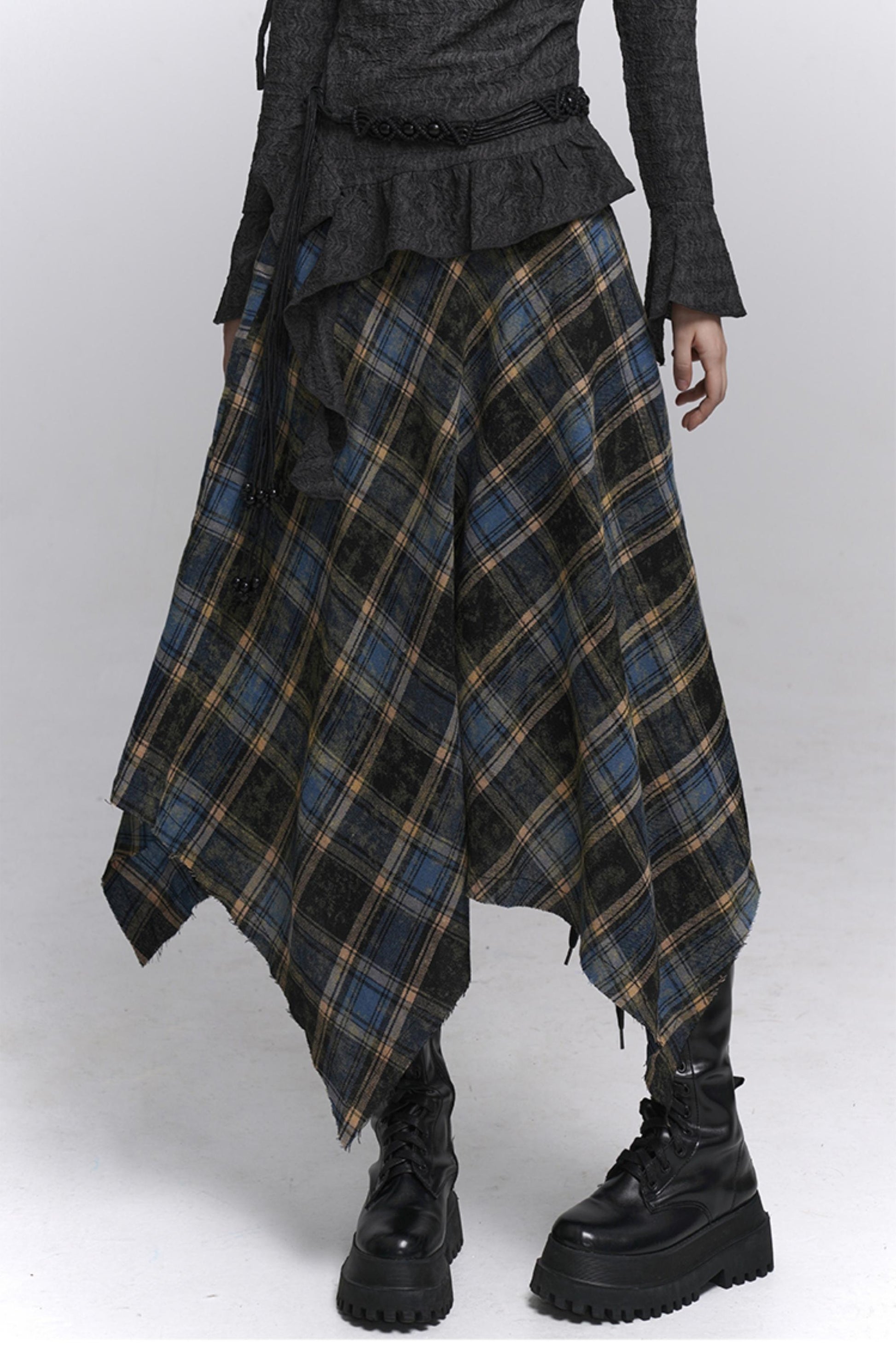 Beautiful Blue Plaid A-Line Skirt & Belt Set