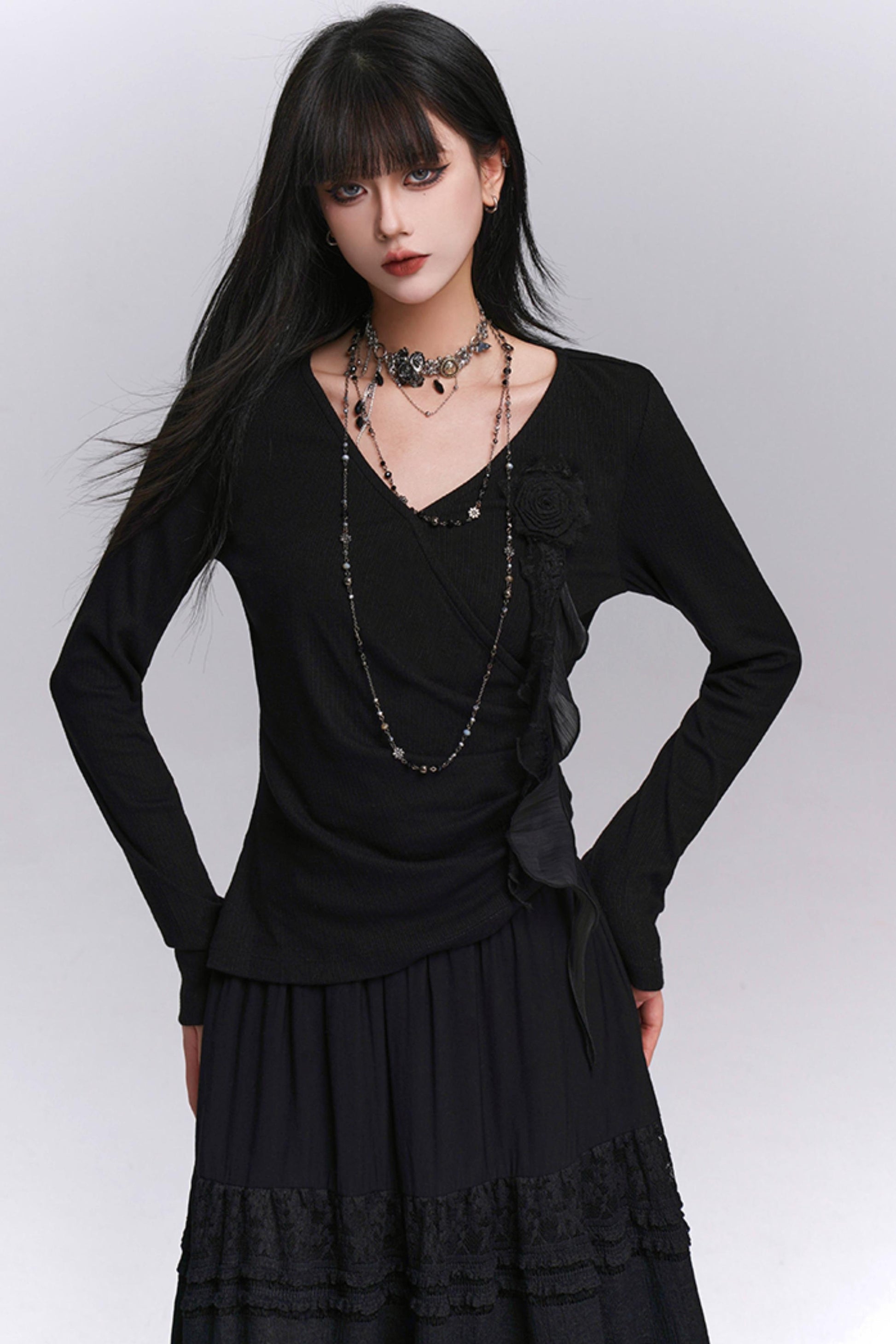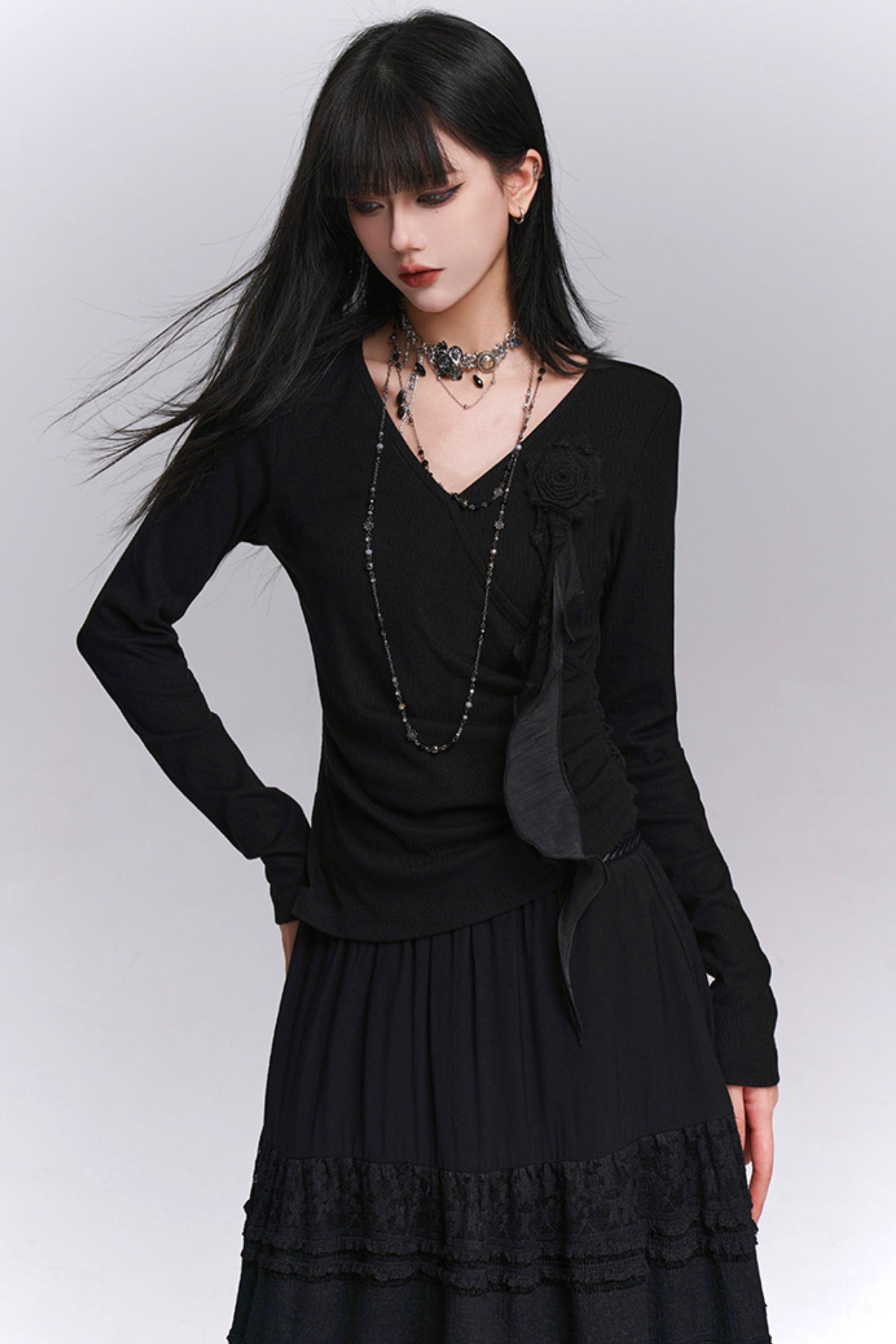 Black V-Neck Top