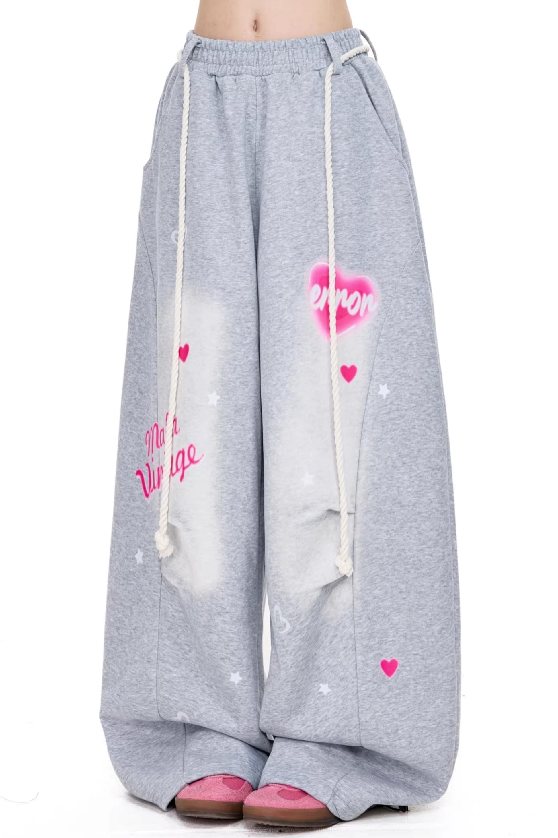 컬러 블로킹 하트 프린트 바지