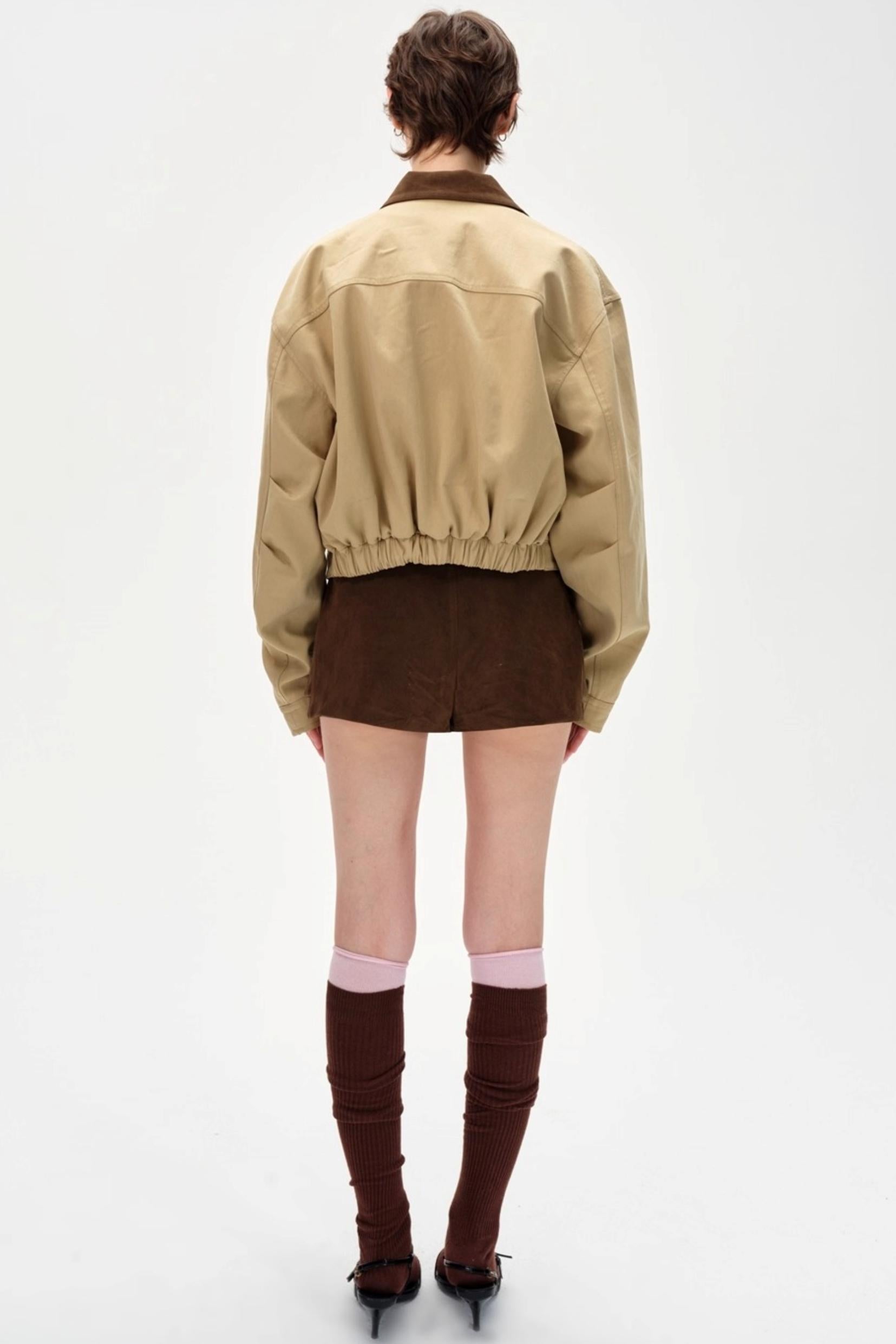 Color-Blocking Lapel Cargo Jacket