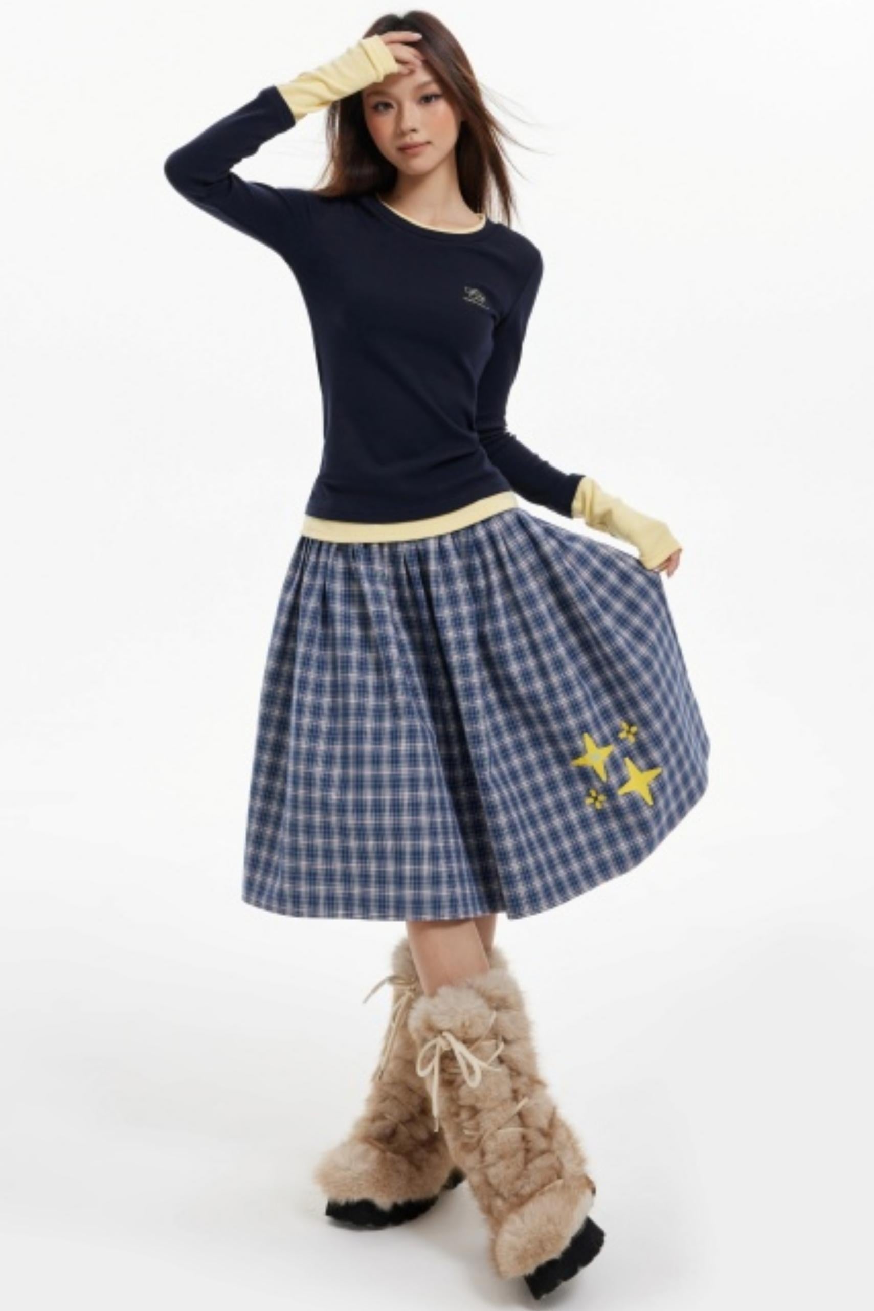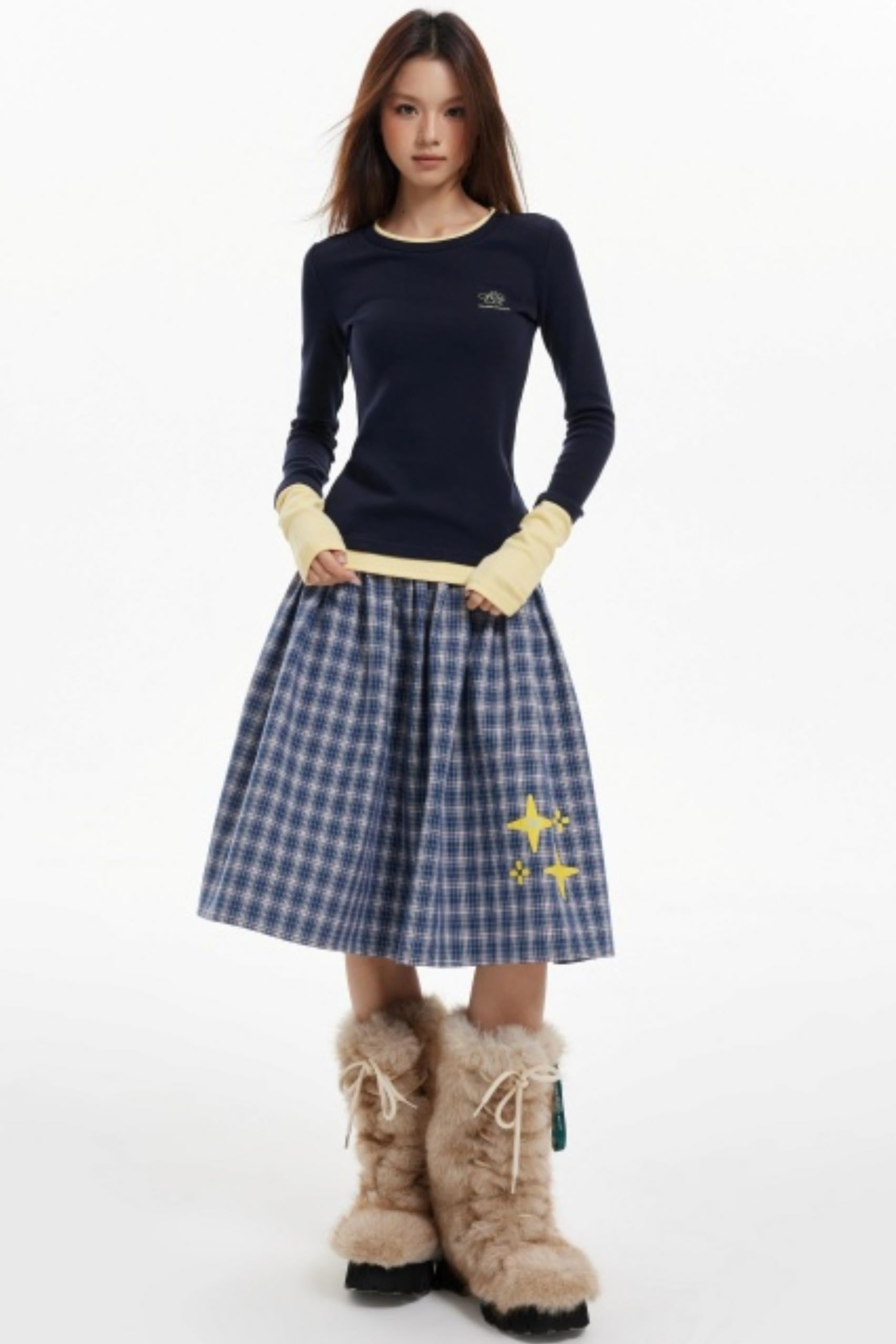 Contrast Fake Two Vintage Long-Sleeve Top