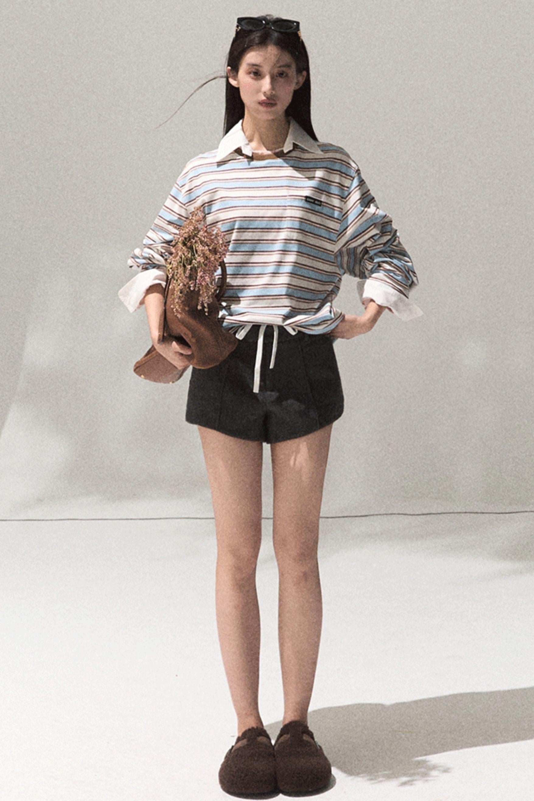 Contrasting Striped Cotton Top