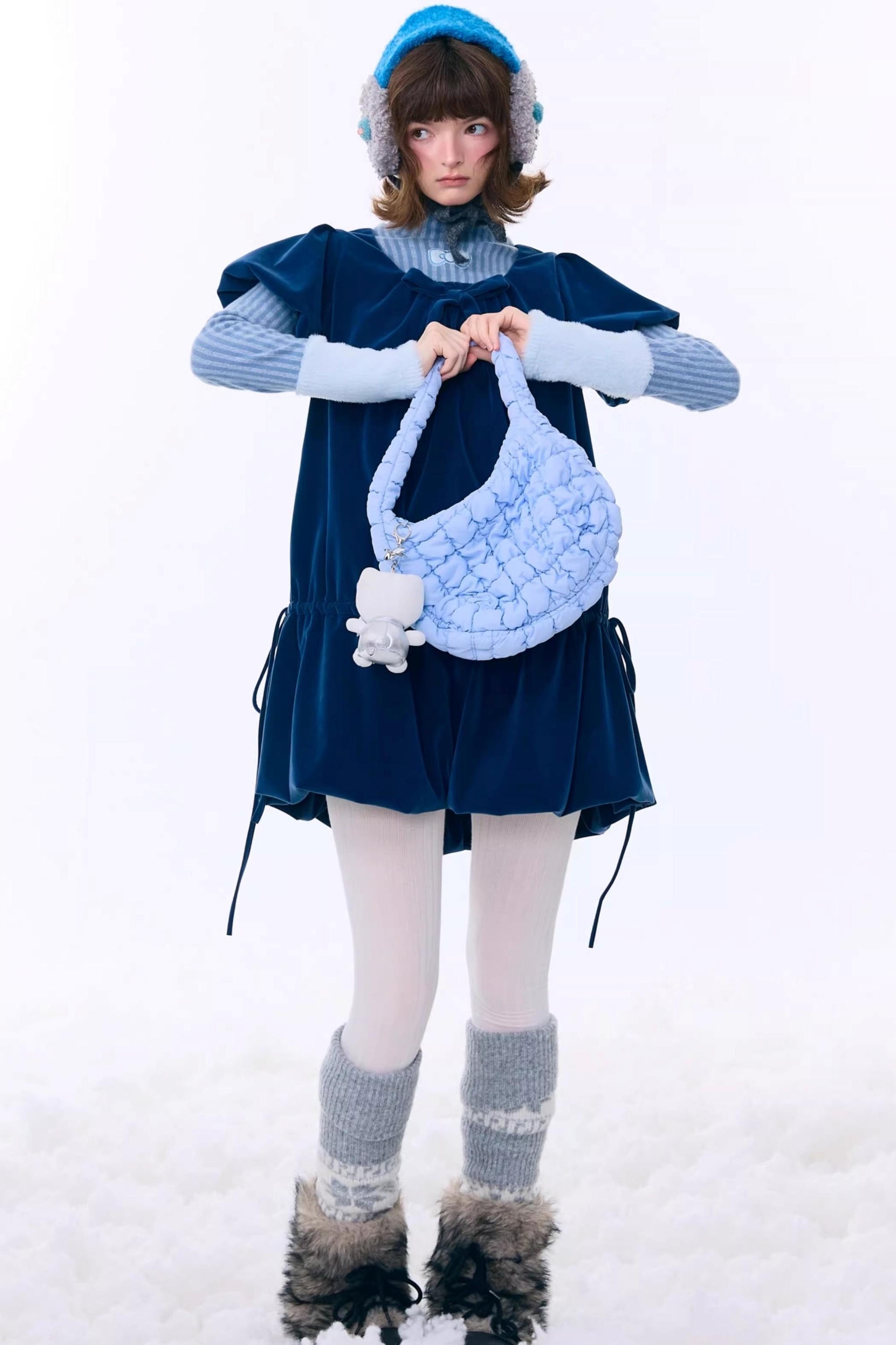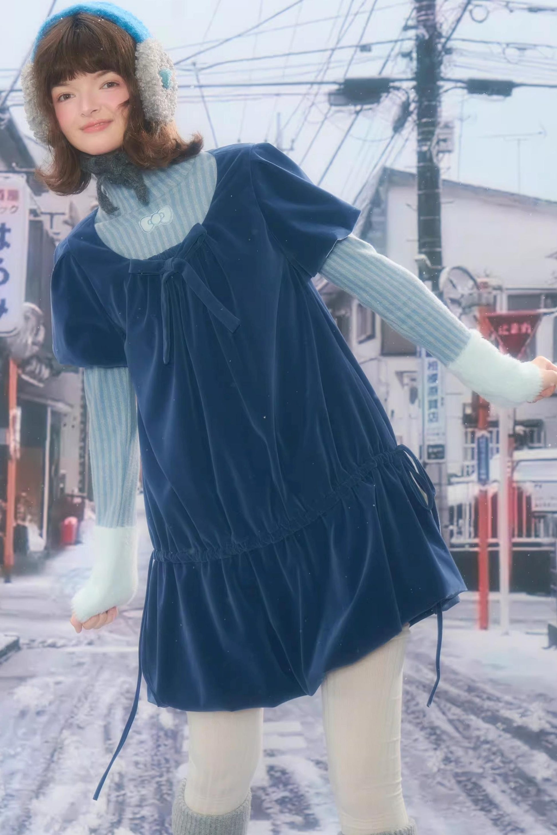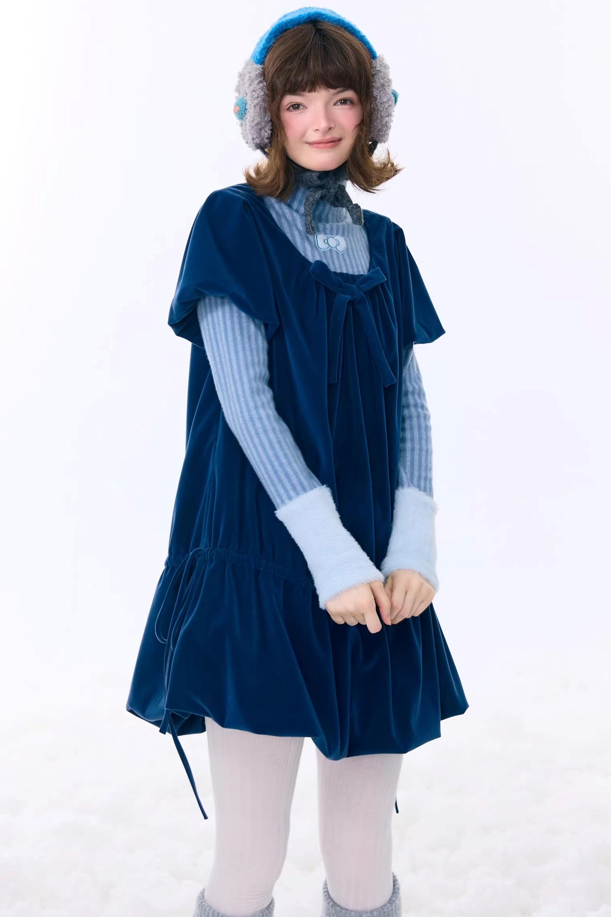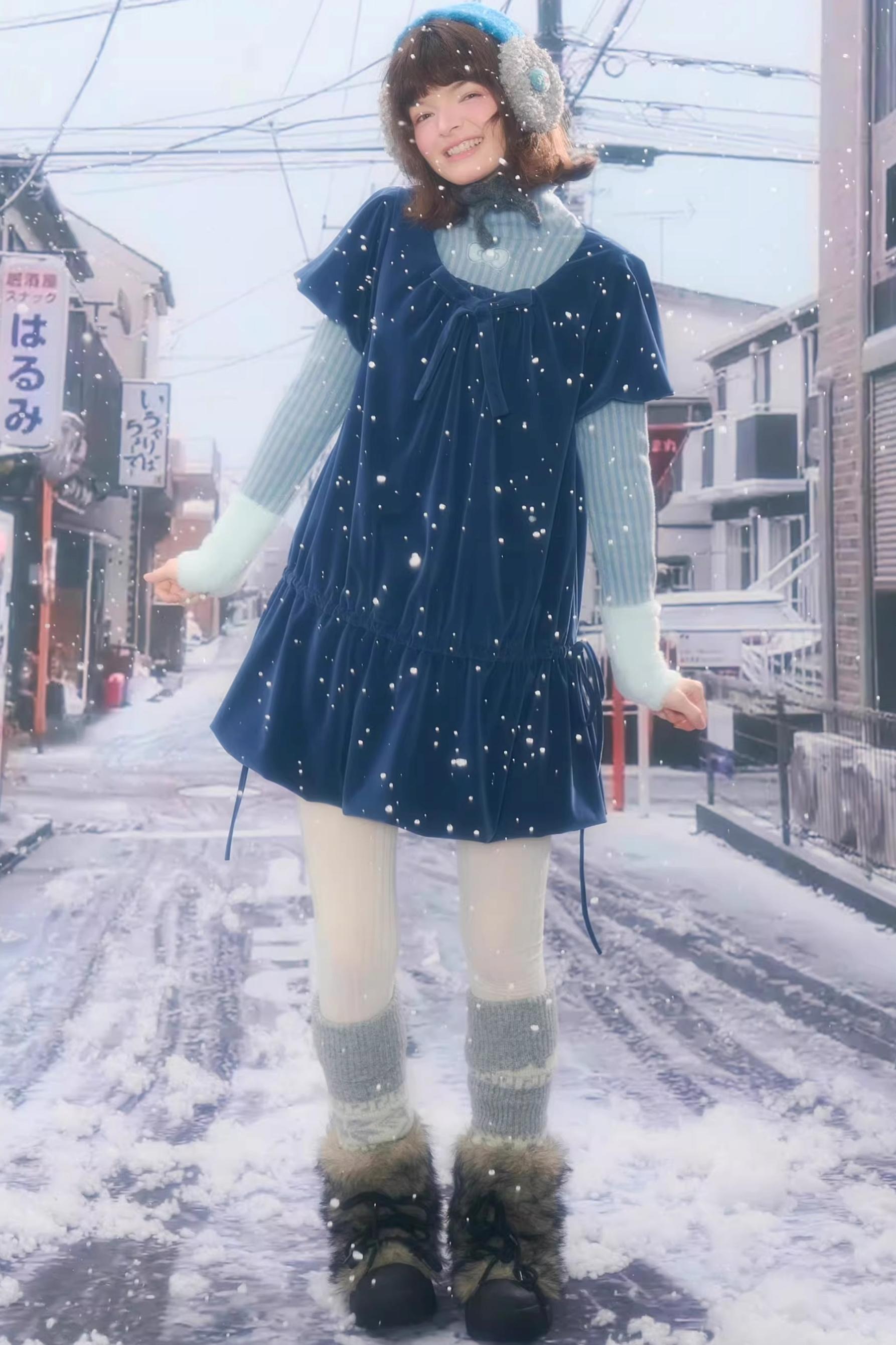 Deep Blue Velvet Bow Dress