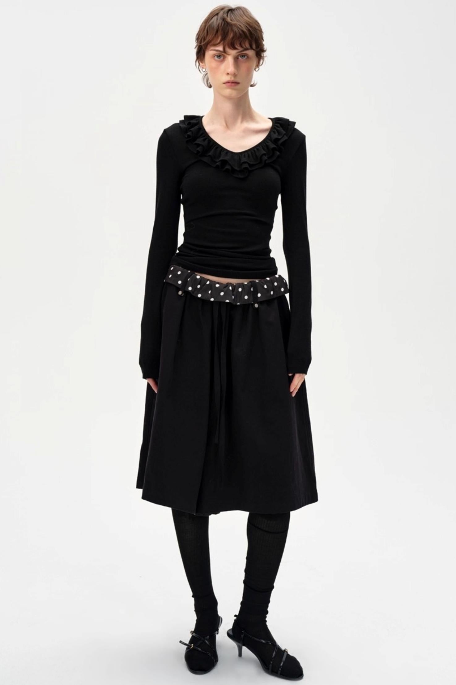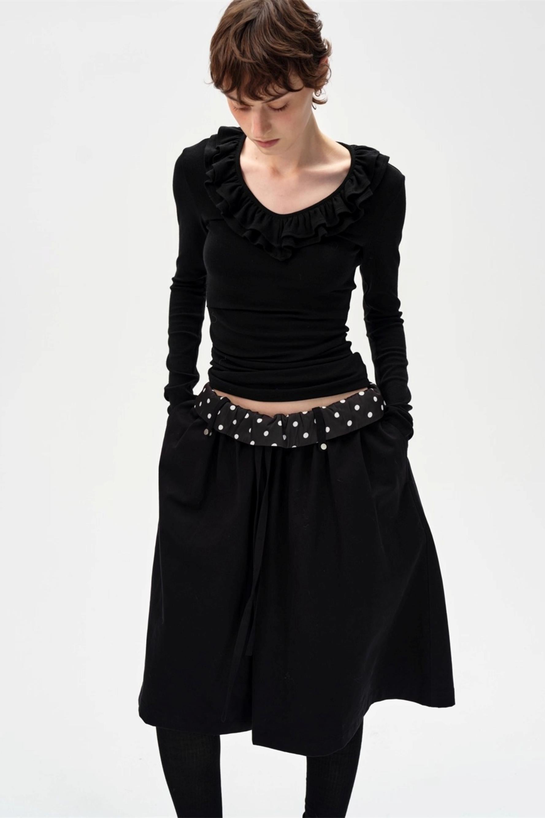 Drape Patchwork Polka Dot Waist Drawstring Skirt