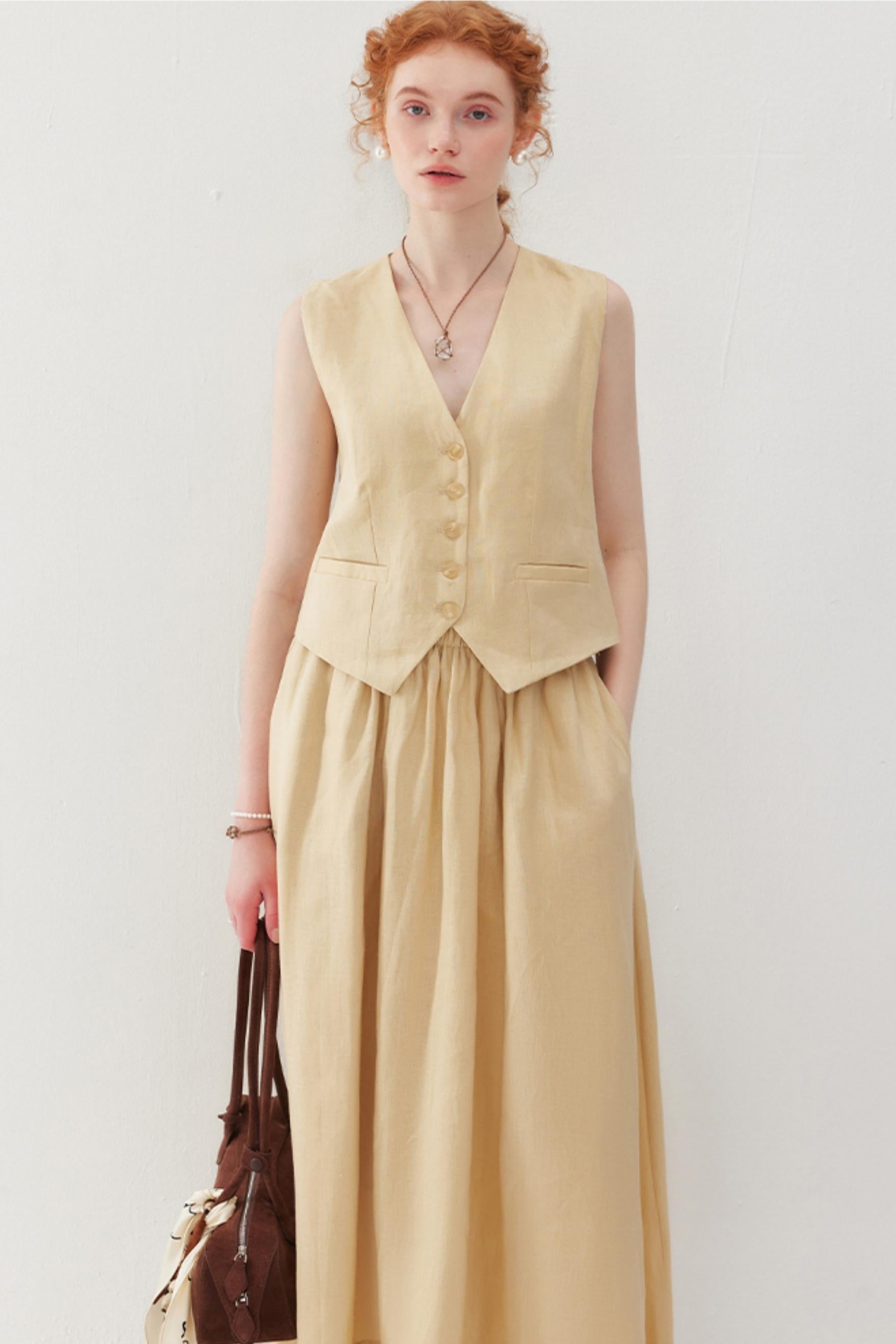 Elegant V-Neck & Pleated Skirt Set