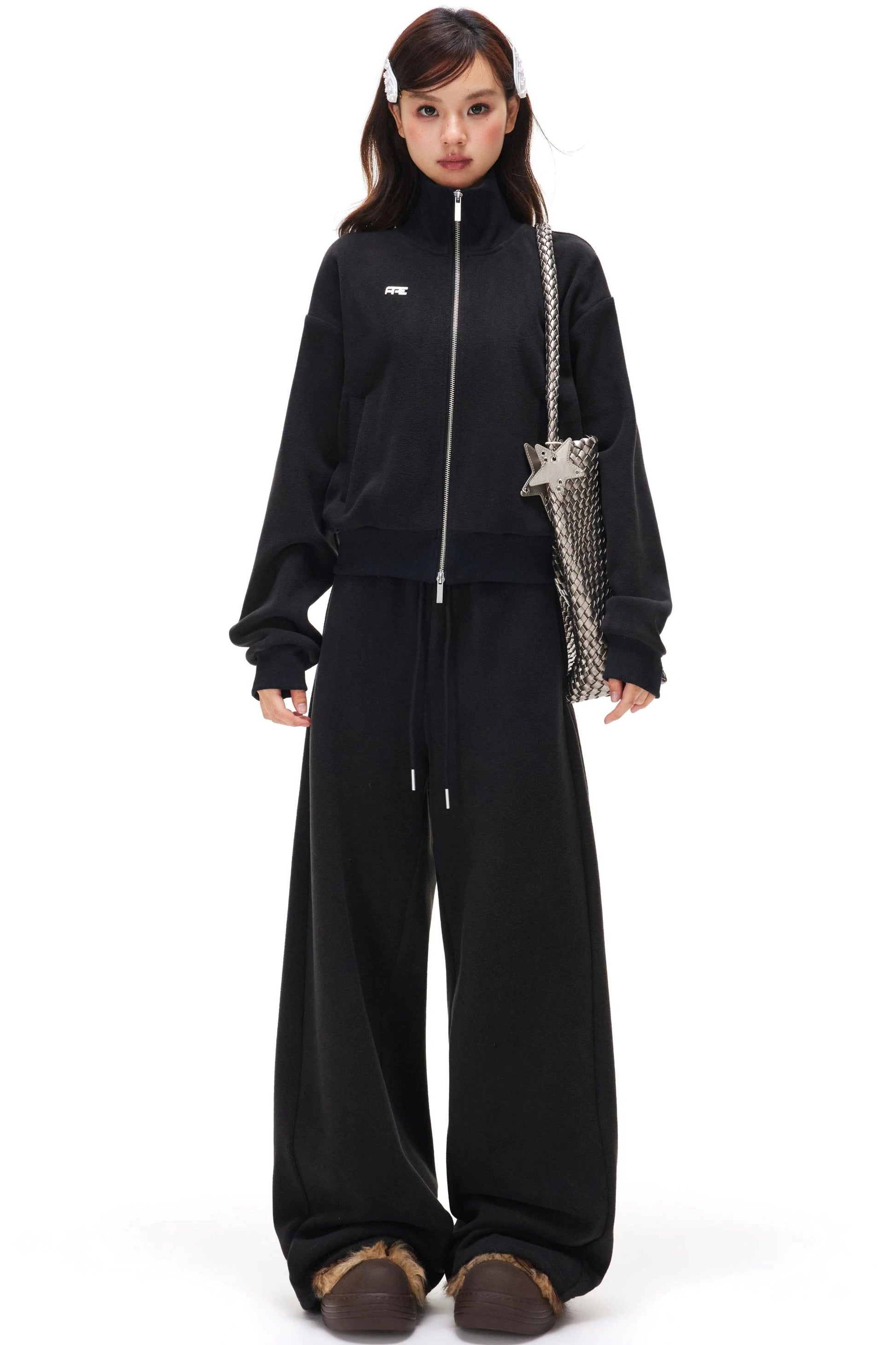 Fleece Zipper Jacket and Pants Suit Set-Up