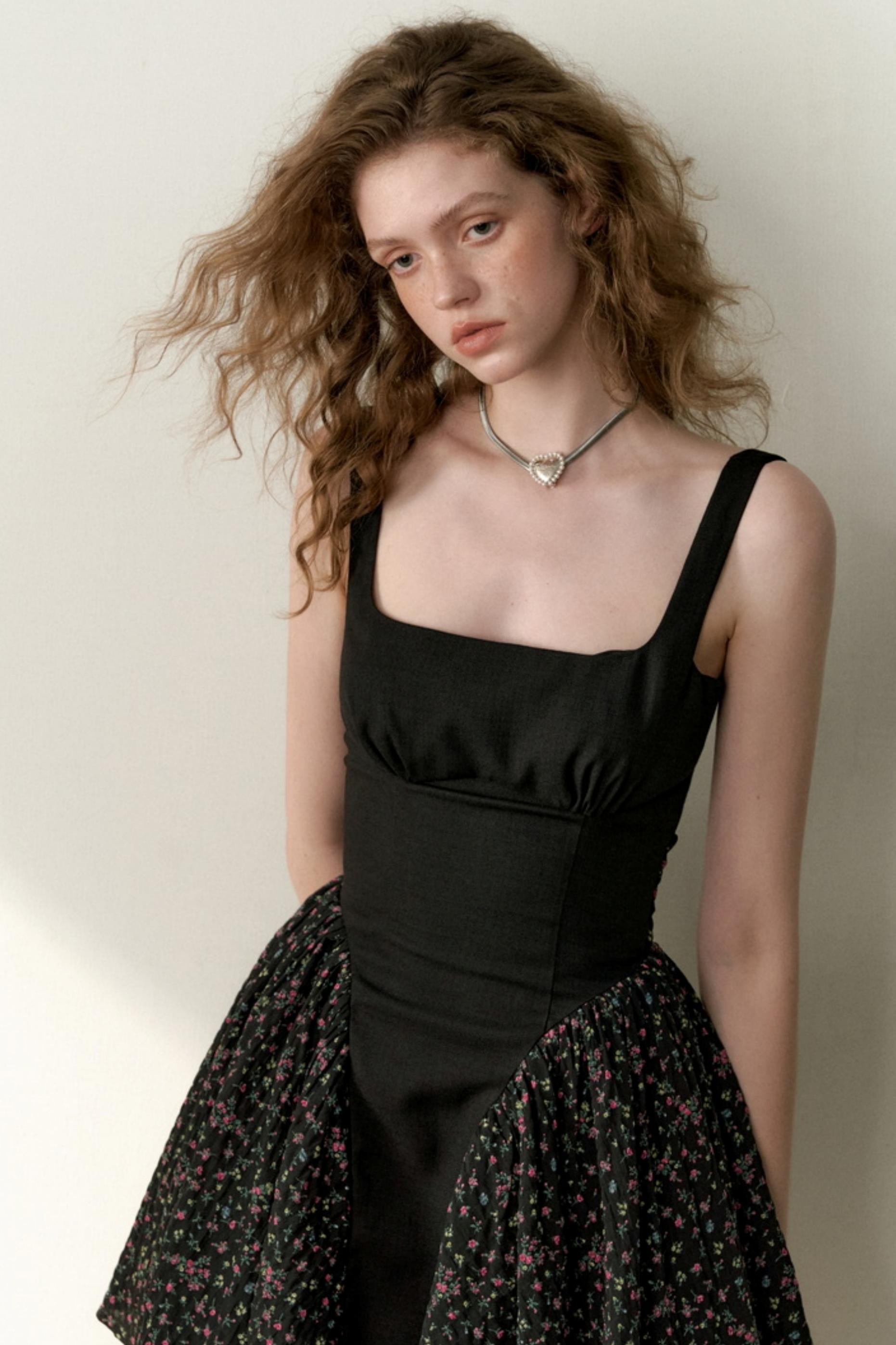 Floral Patchwork Bowtie Camisole Dress