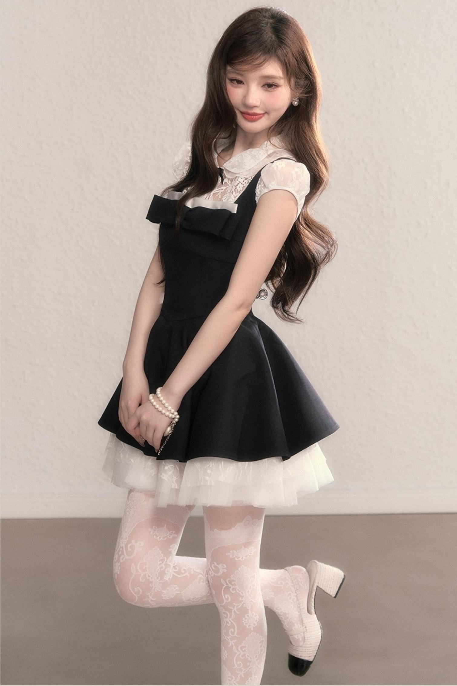 French Slimming Lace Hepburn Dress Set