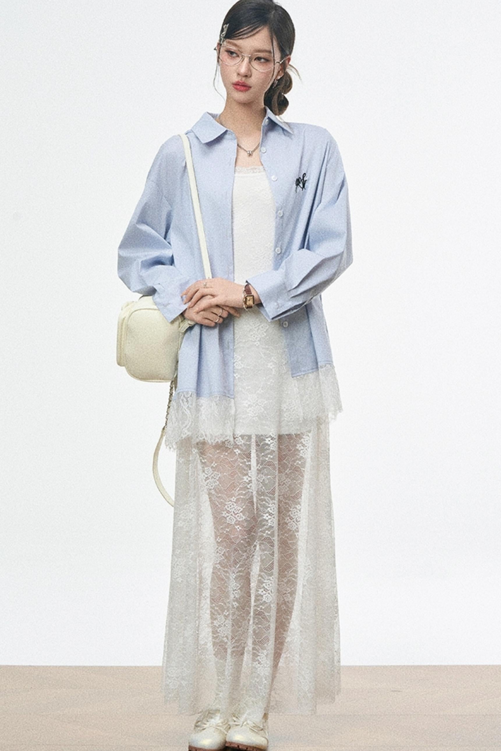 Fusion Lace Dress With Lace Shirt Set-Up