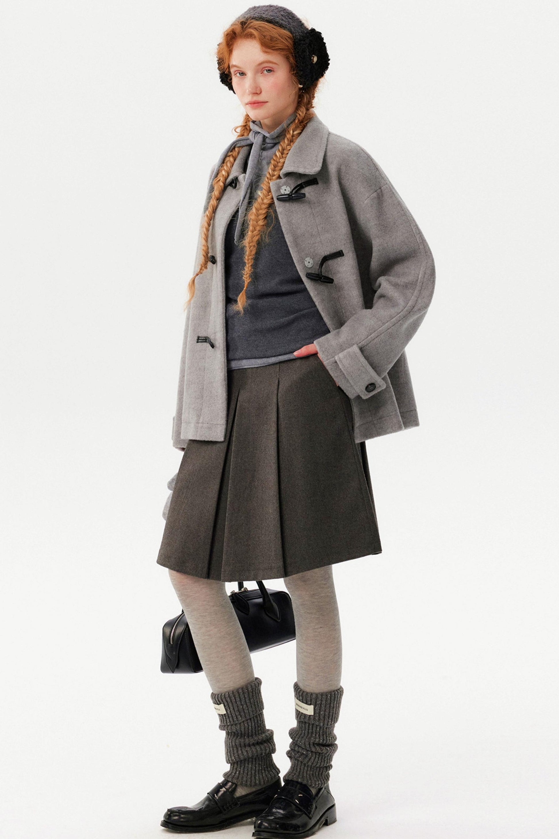 Gray Lapel Woolen Coat