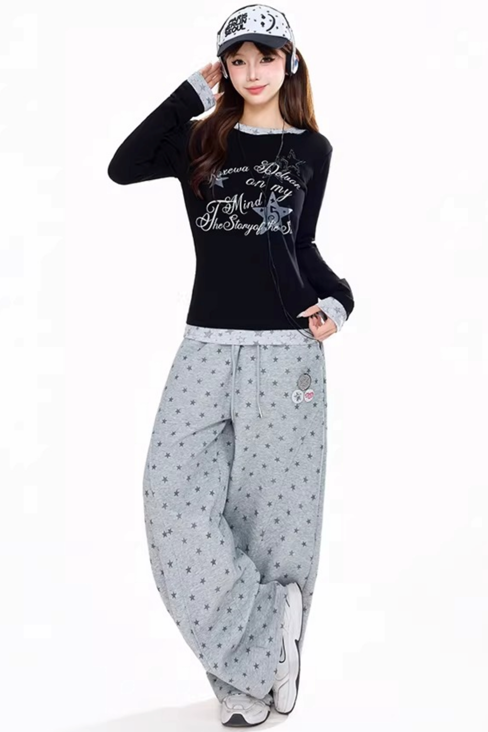 회색 별 프린트 스웨트팬츠