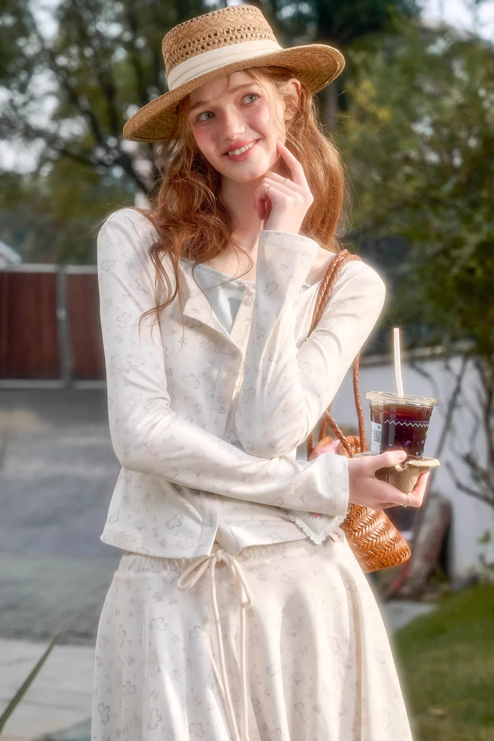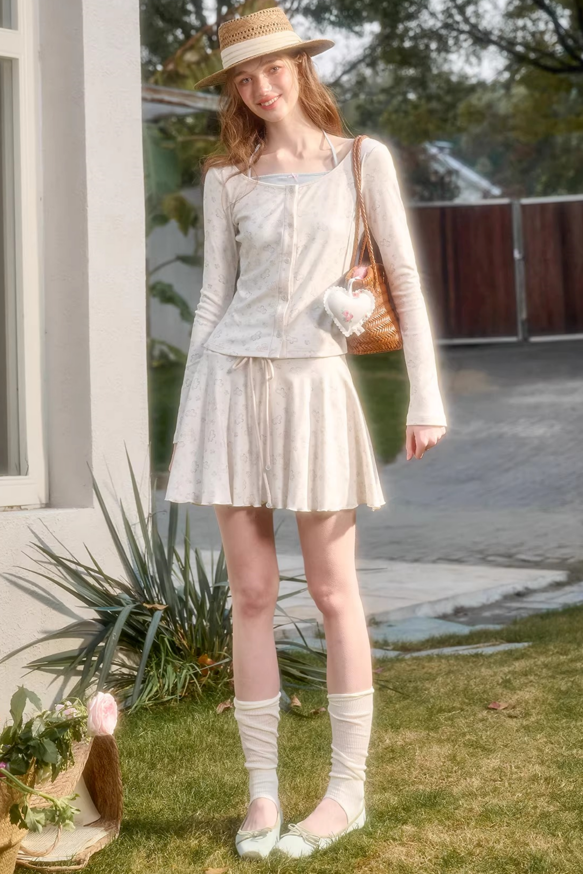 손으로 그린 가디건 스커트 셋업