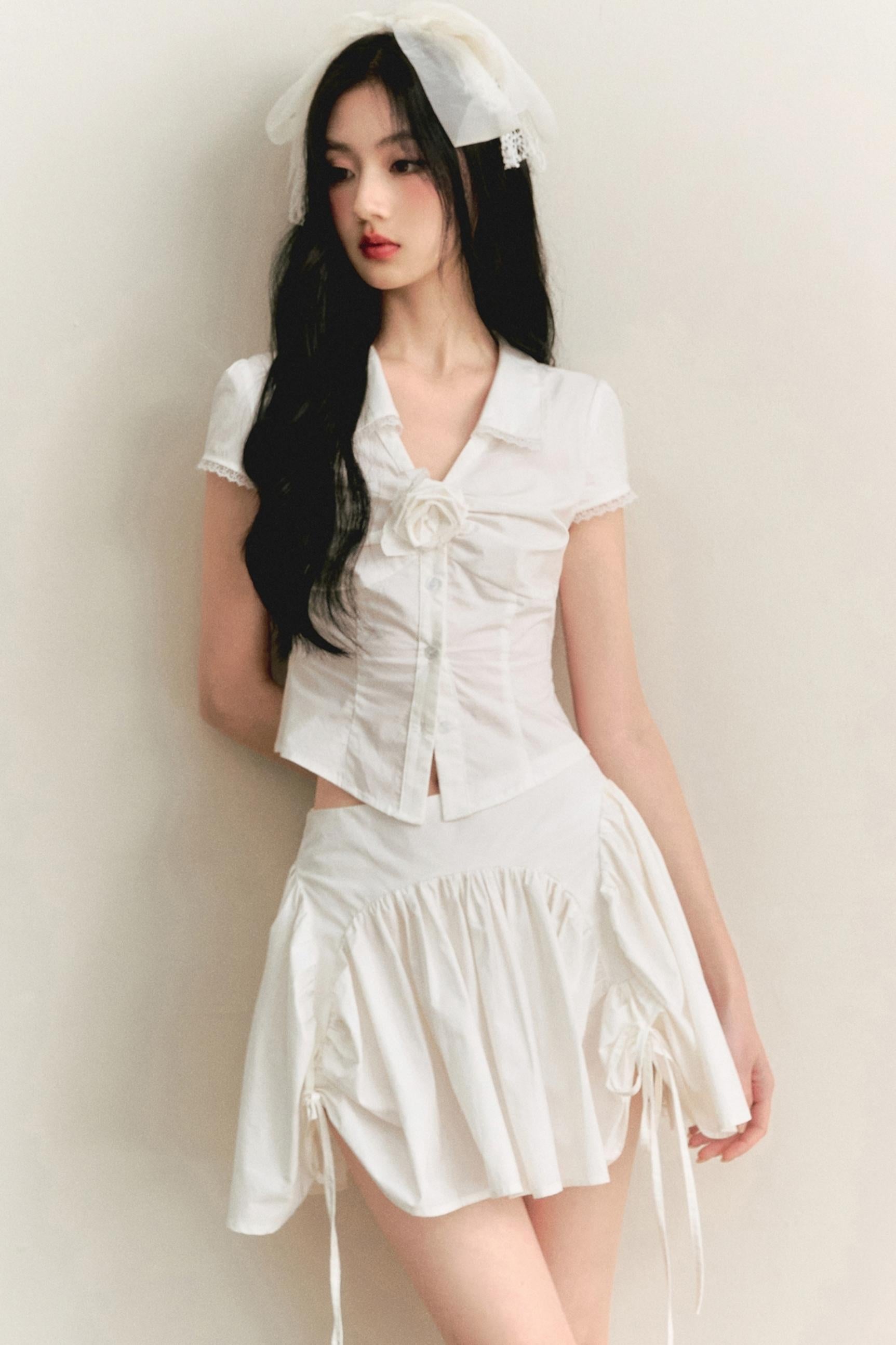 Light Lace-Up Pleated Skirt Set-Up