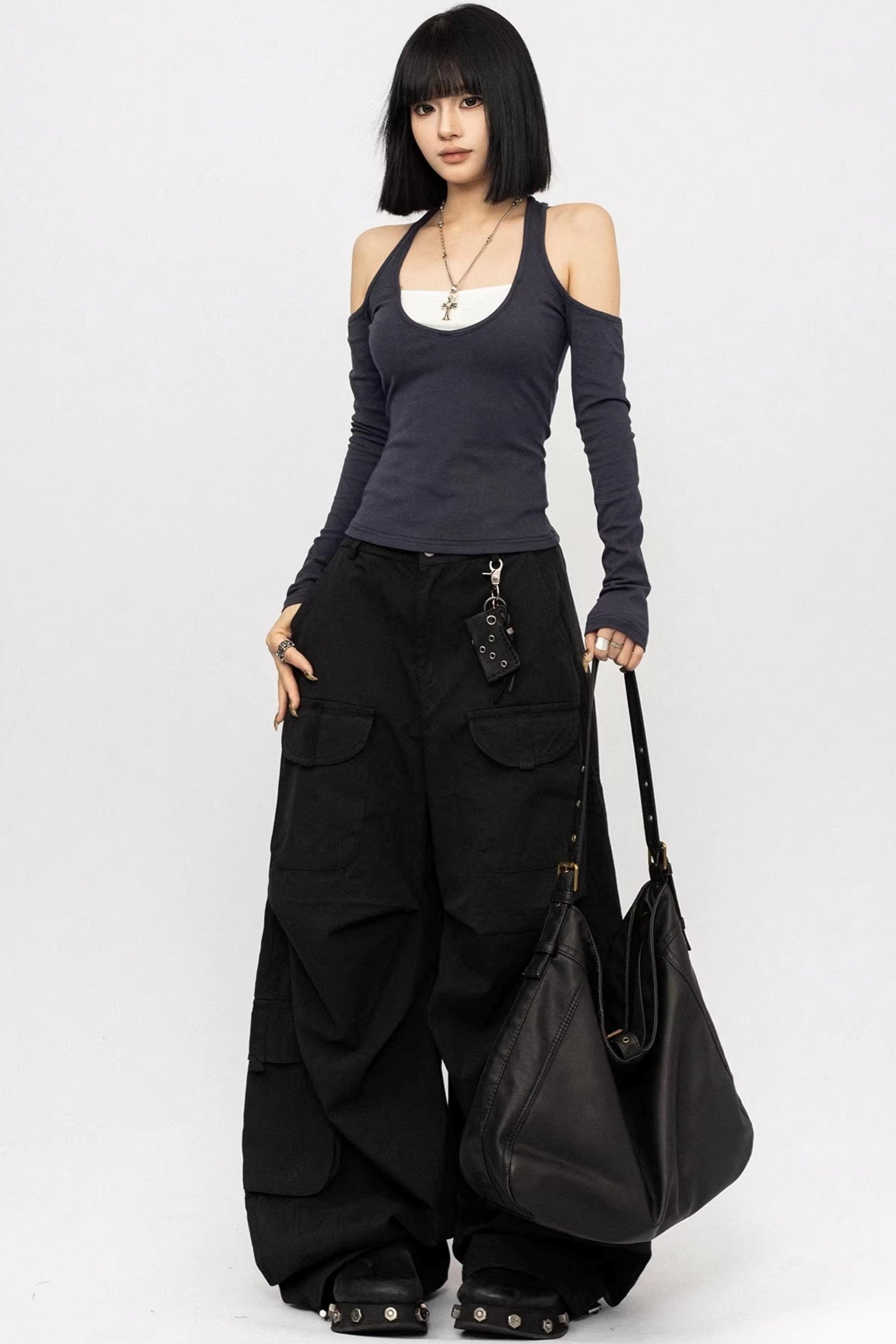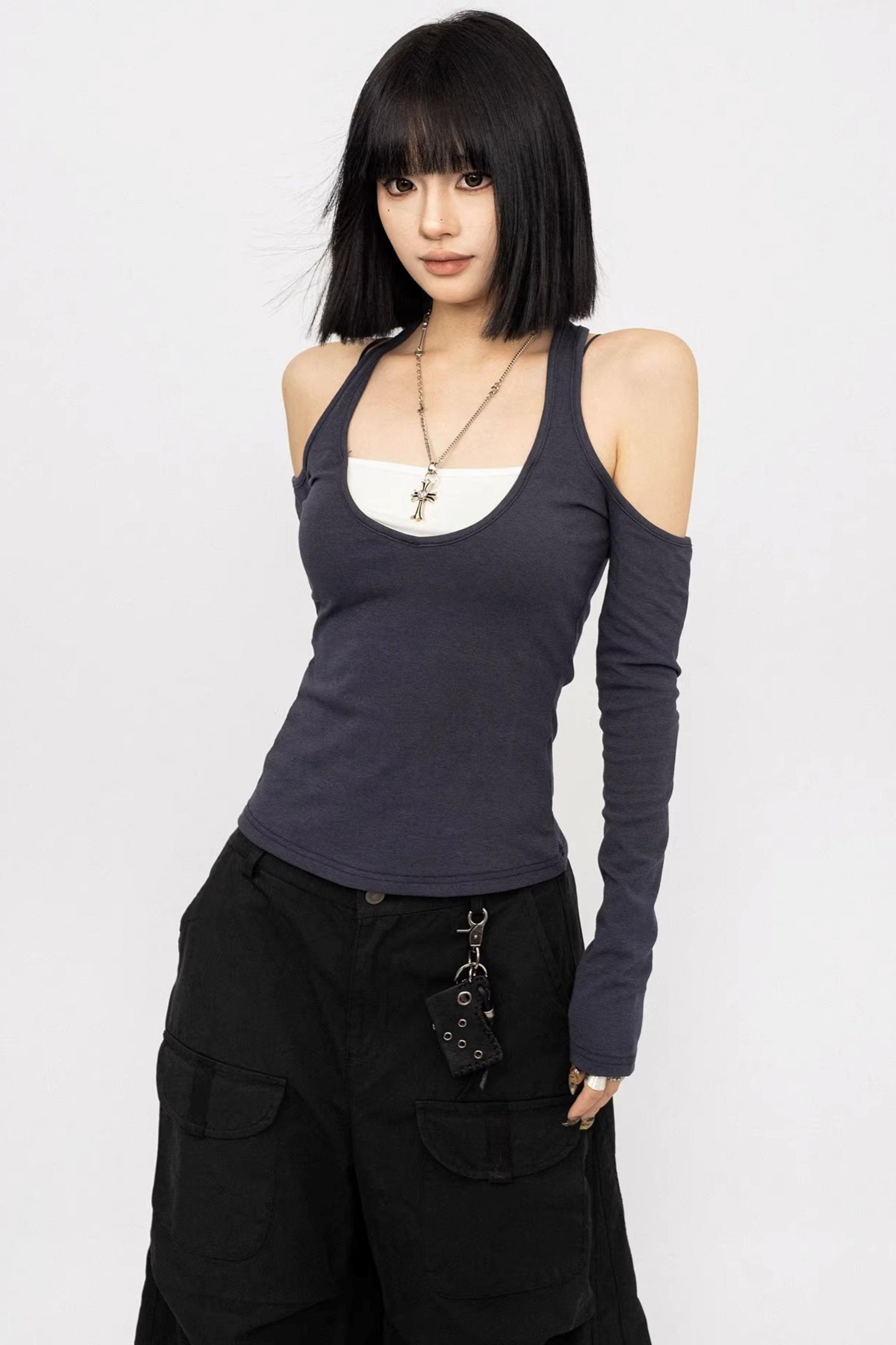오프숄더 홀터넥 탑