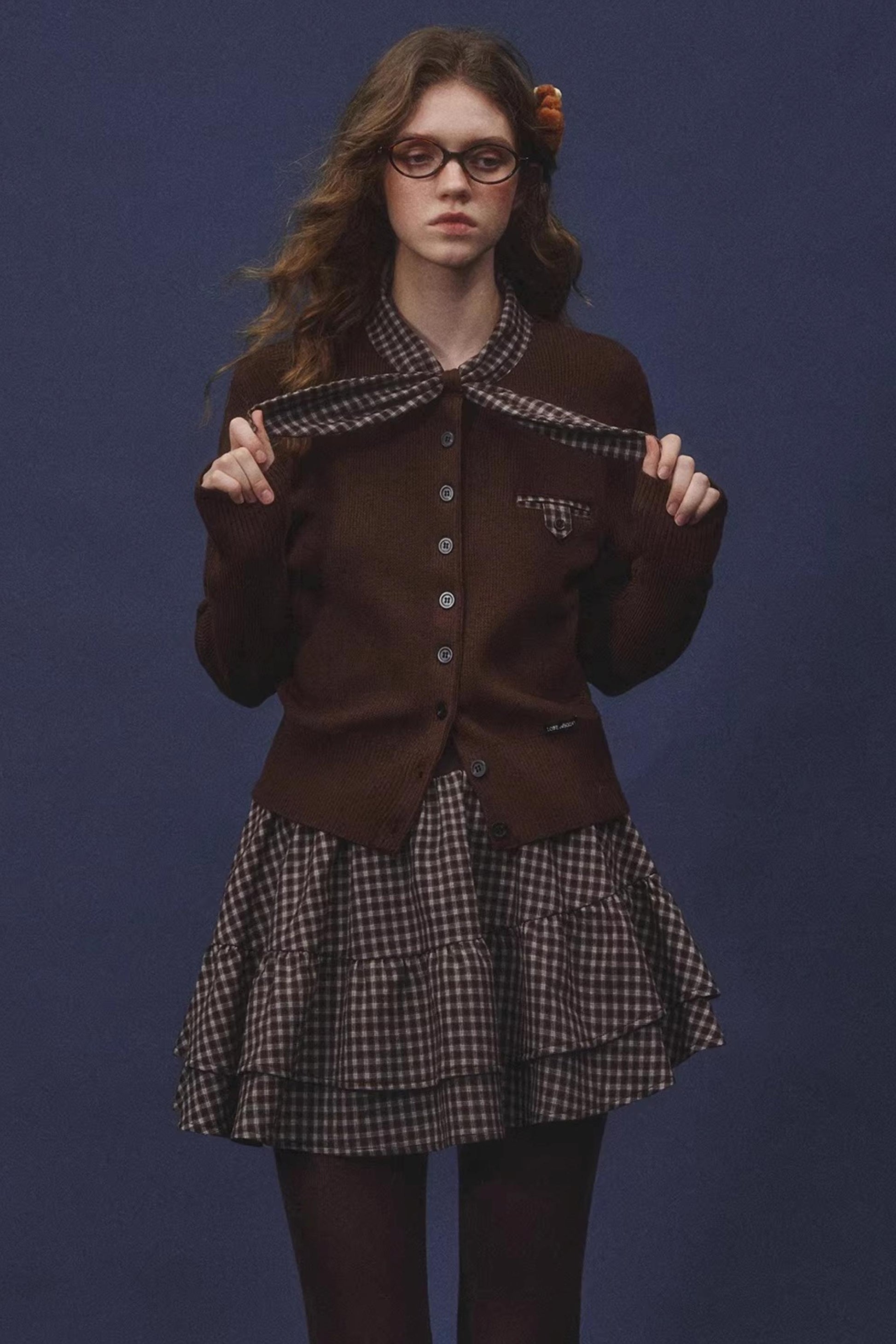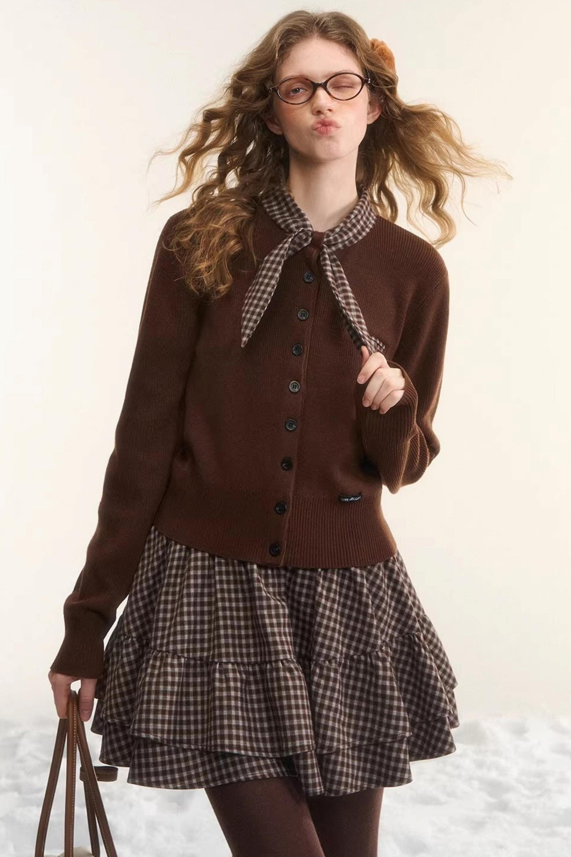 Plaid Melard Knit Top Skirt Set-Up