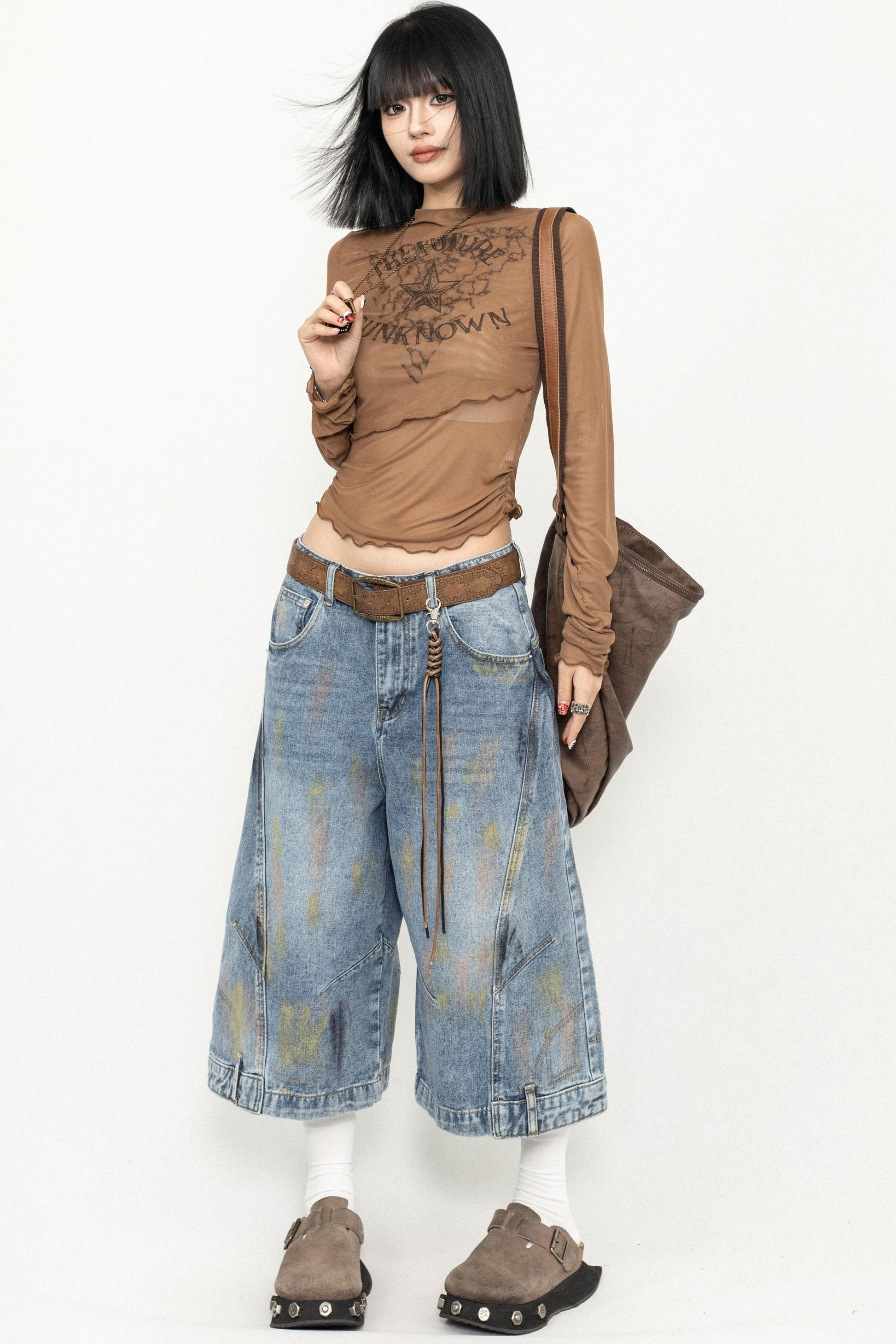 Retro Chic Brown Tulle Top