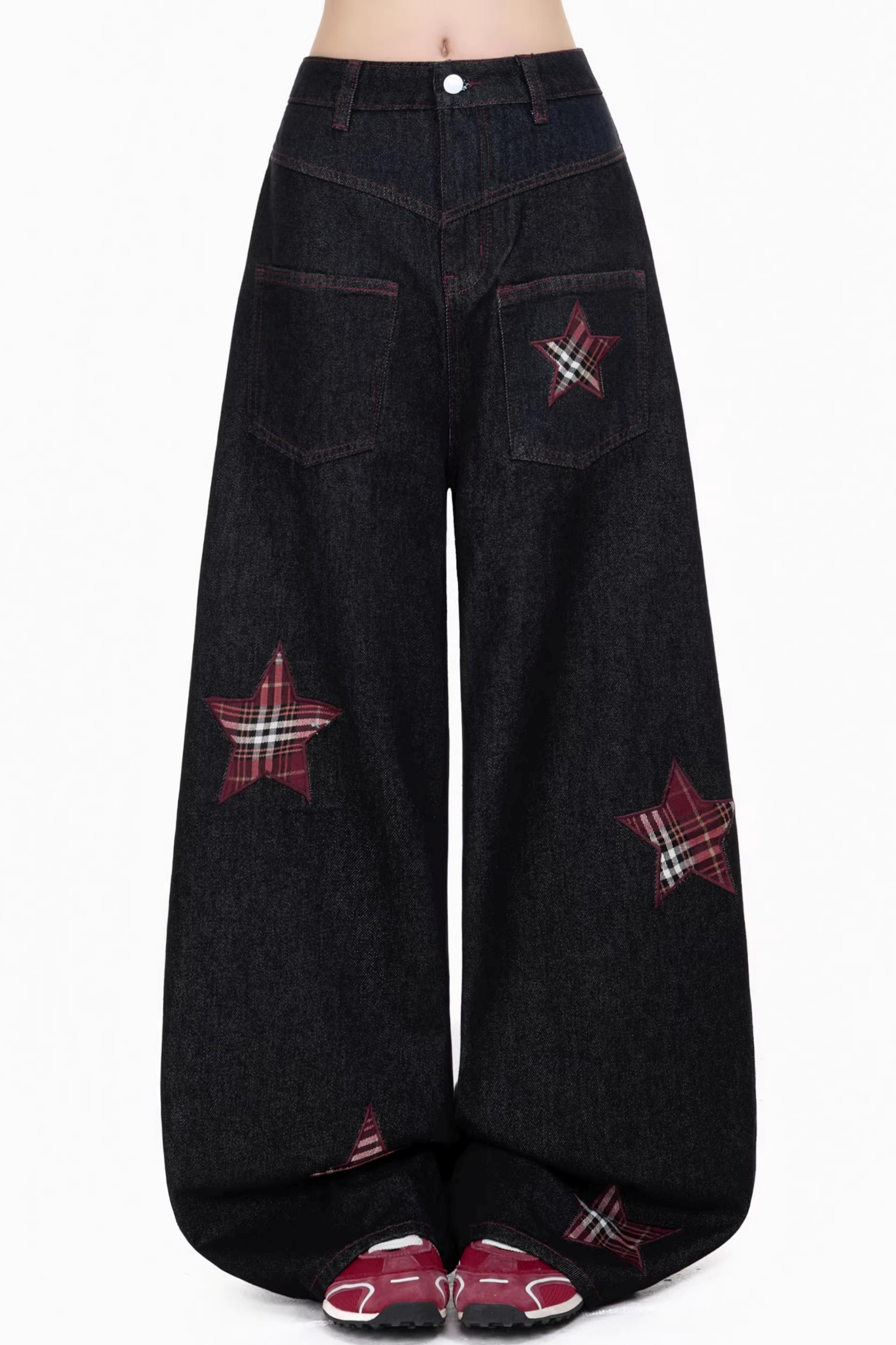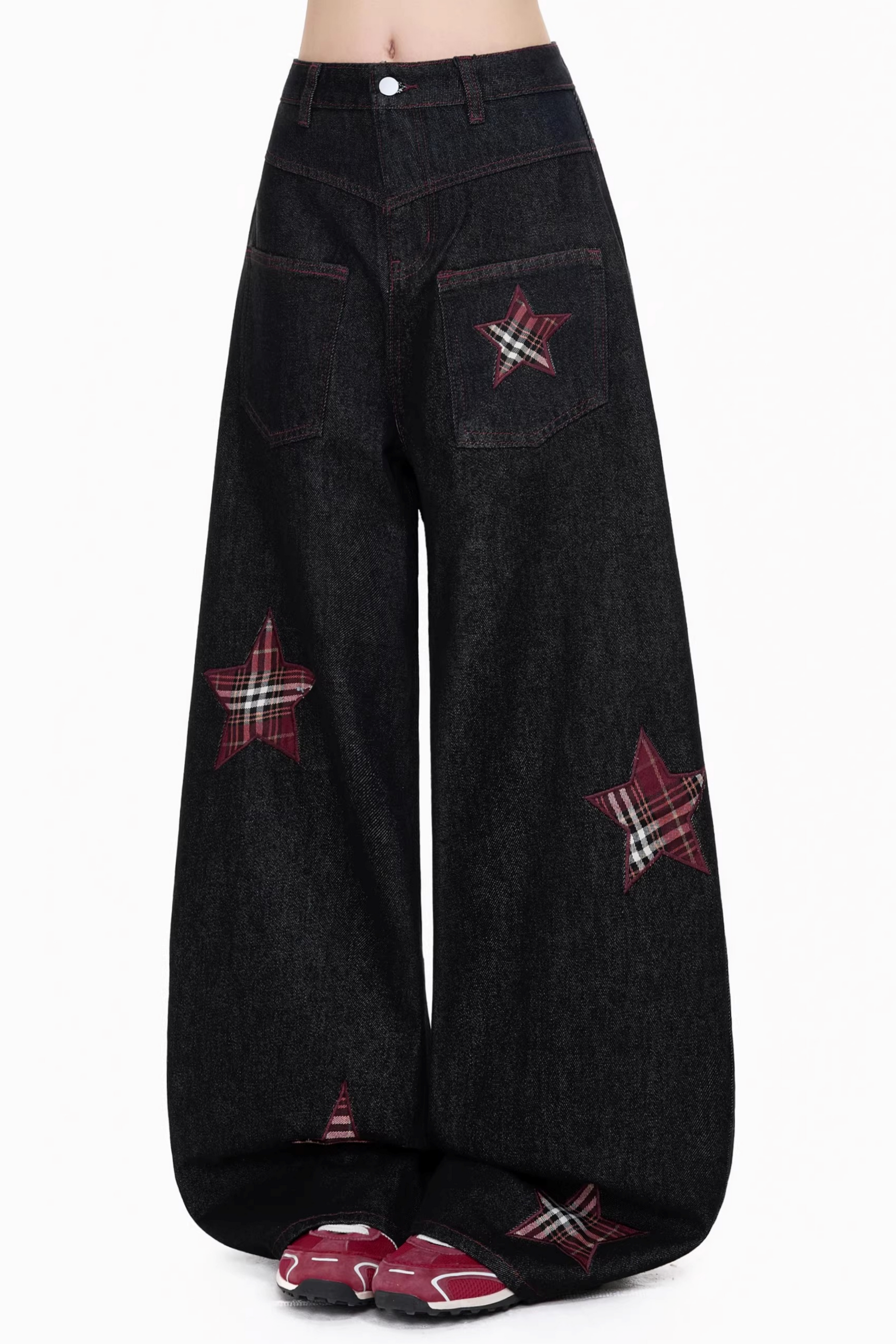 레트로 자수 체크 바지