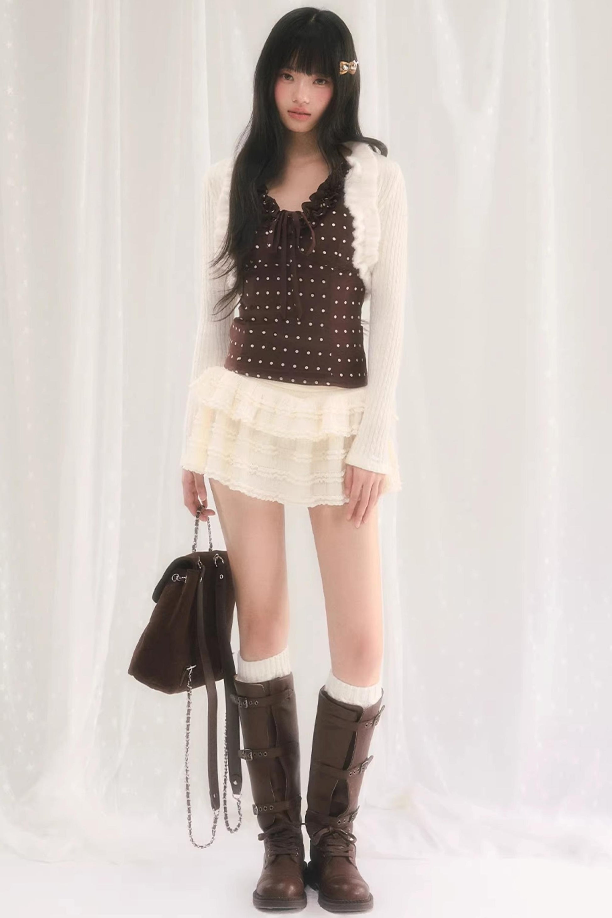 러플 니트 가디건 재킷 셋업