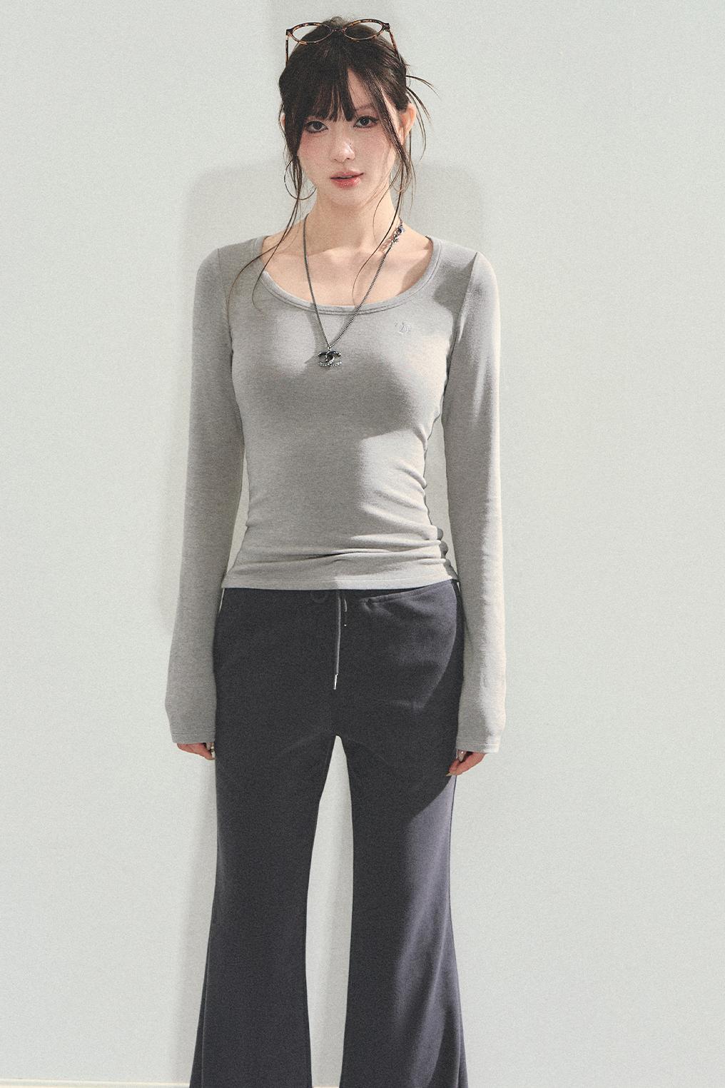 Slimming U-Neck Long-Sleeved T-Shirt