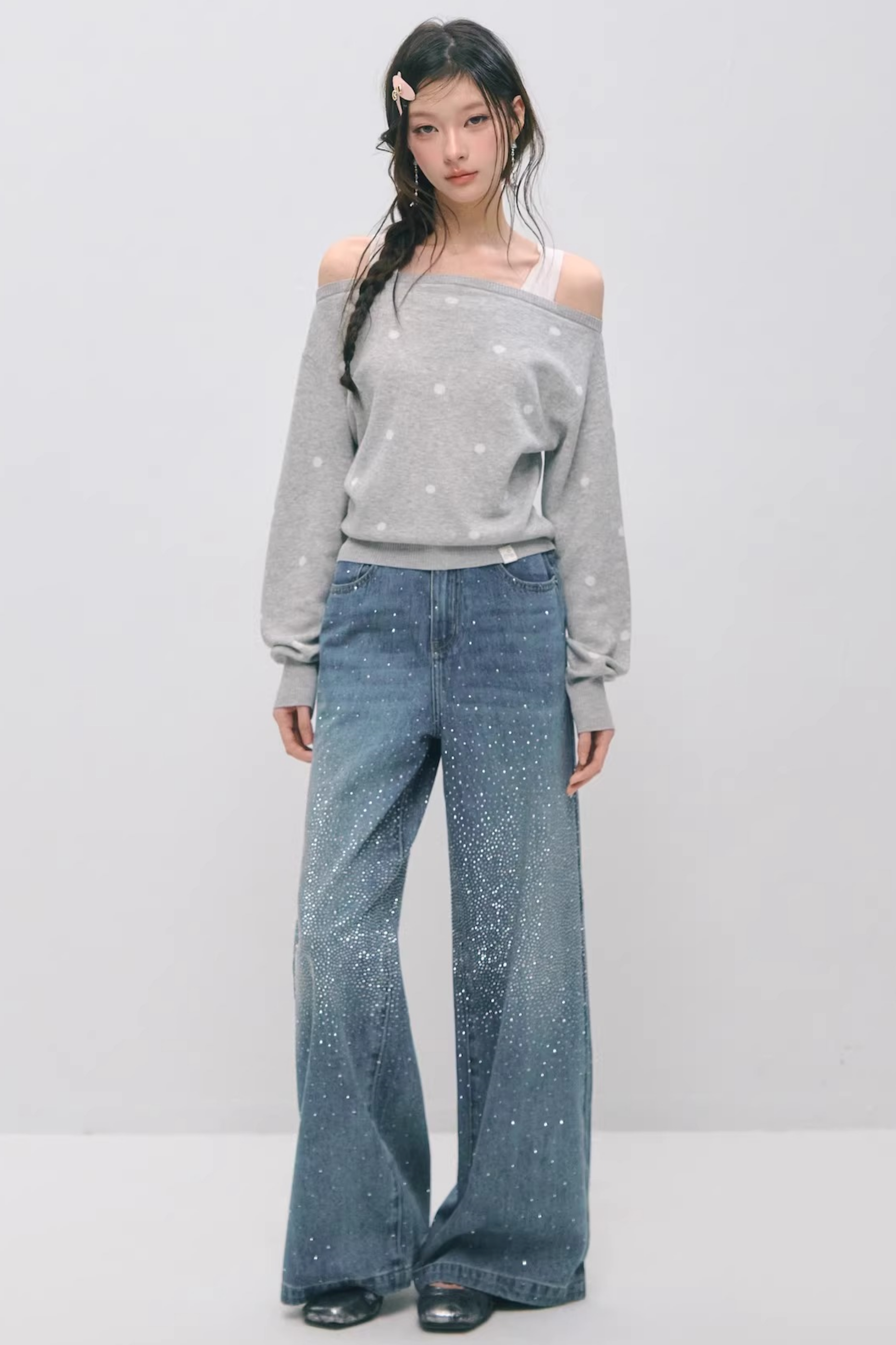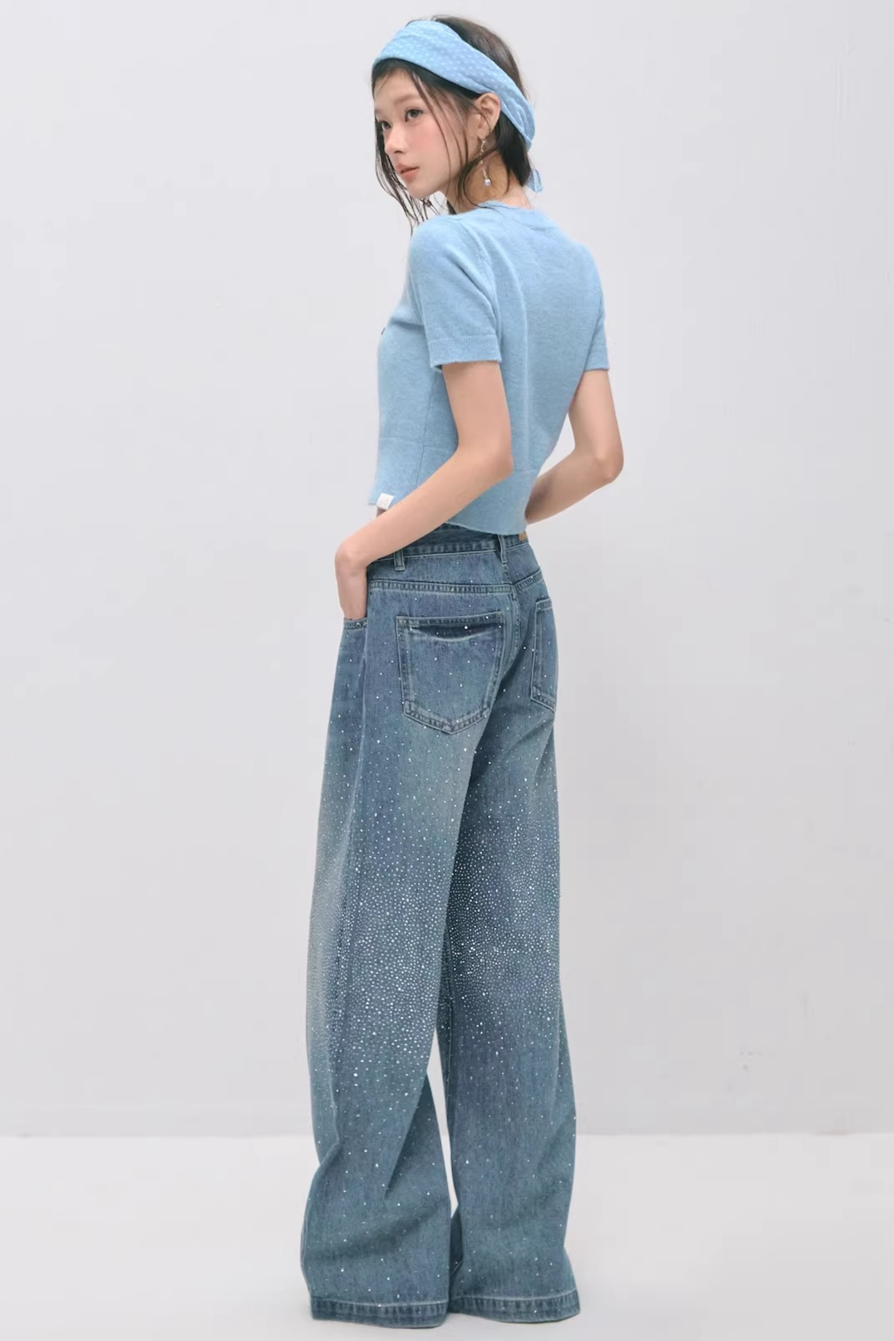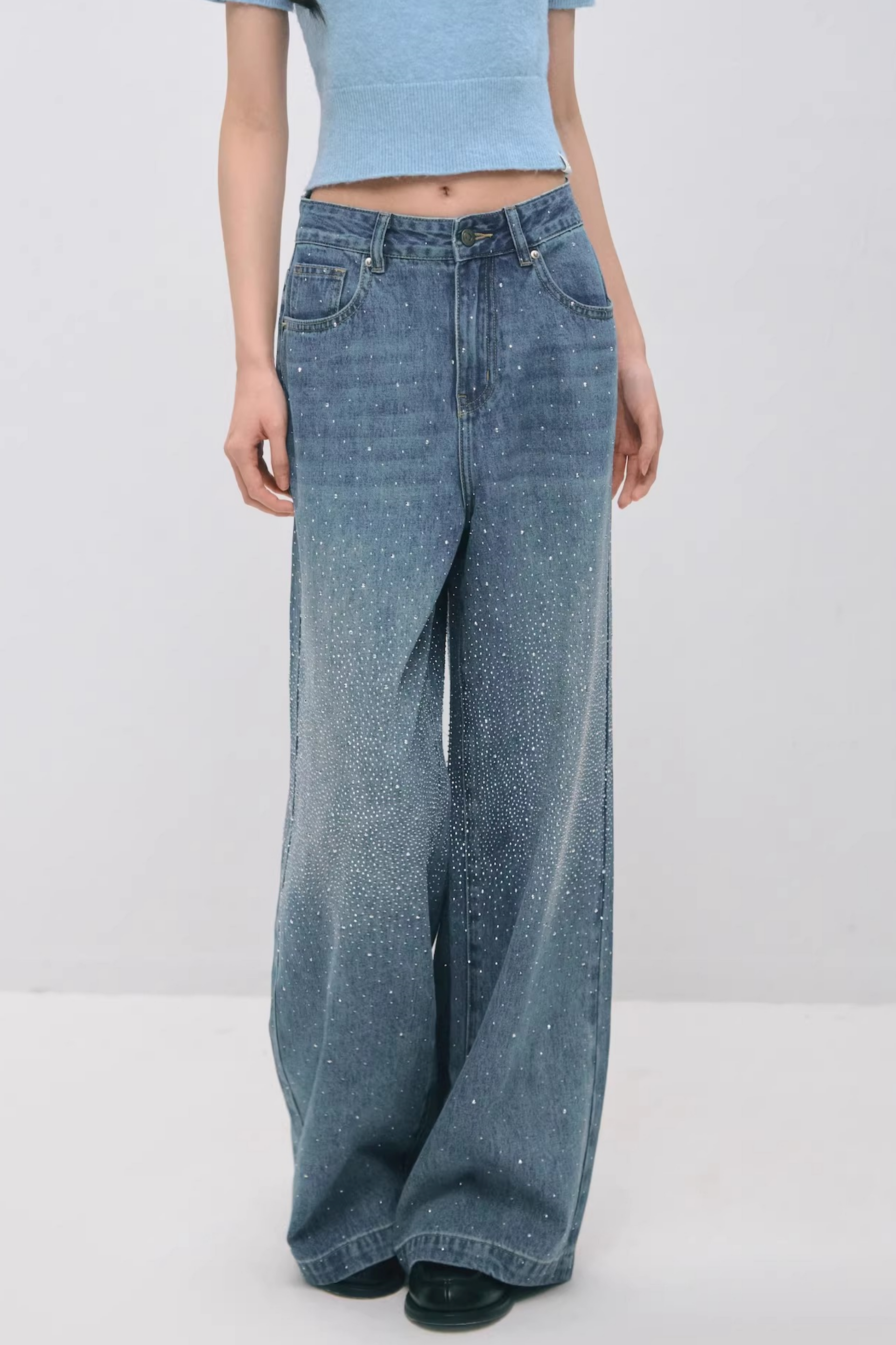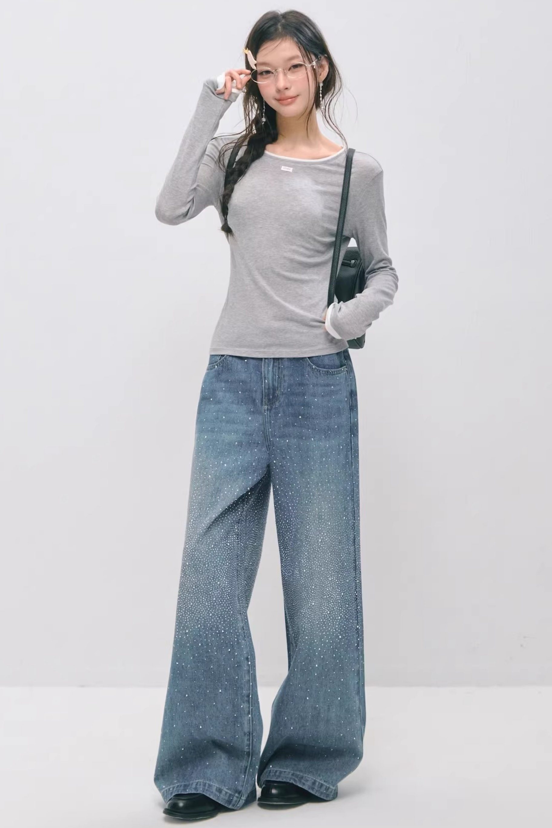 Somesowe 레트로 스트레이트핏 스파클링 청바지