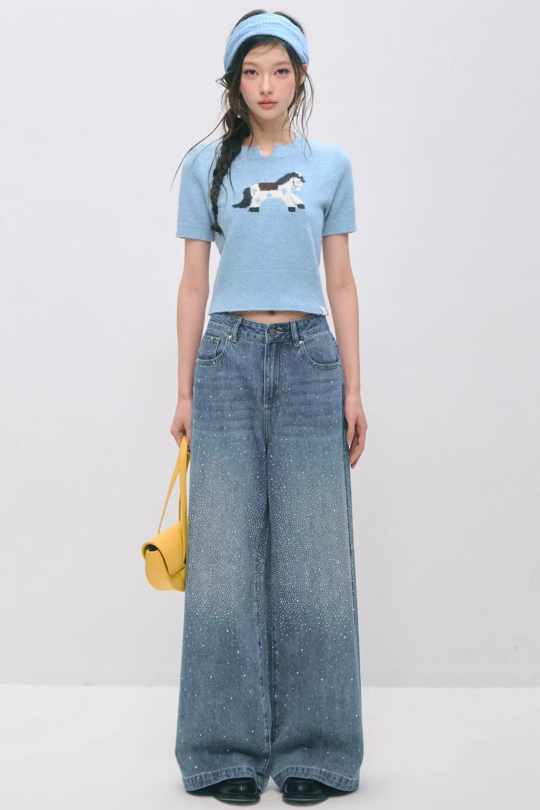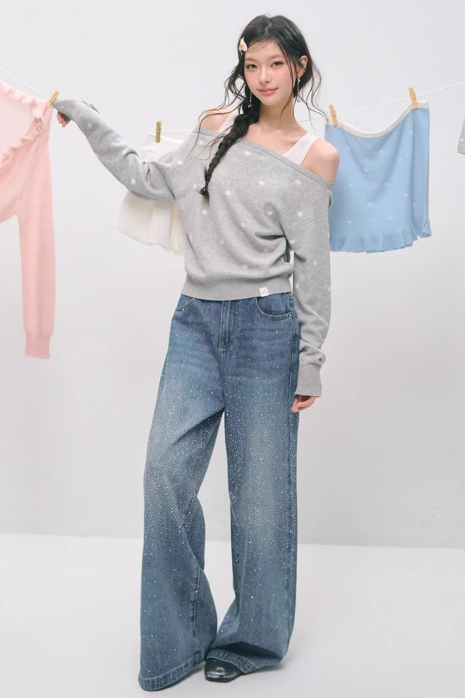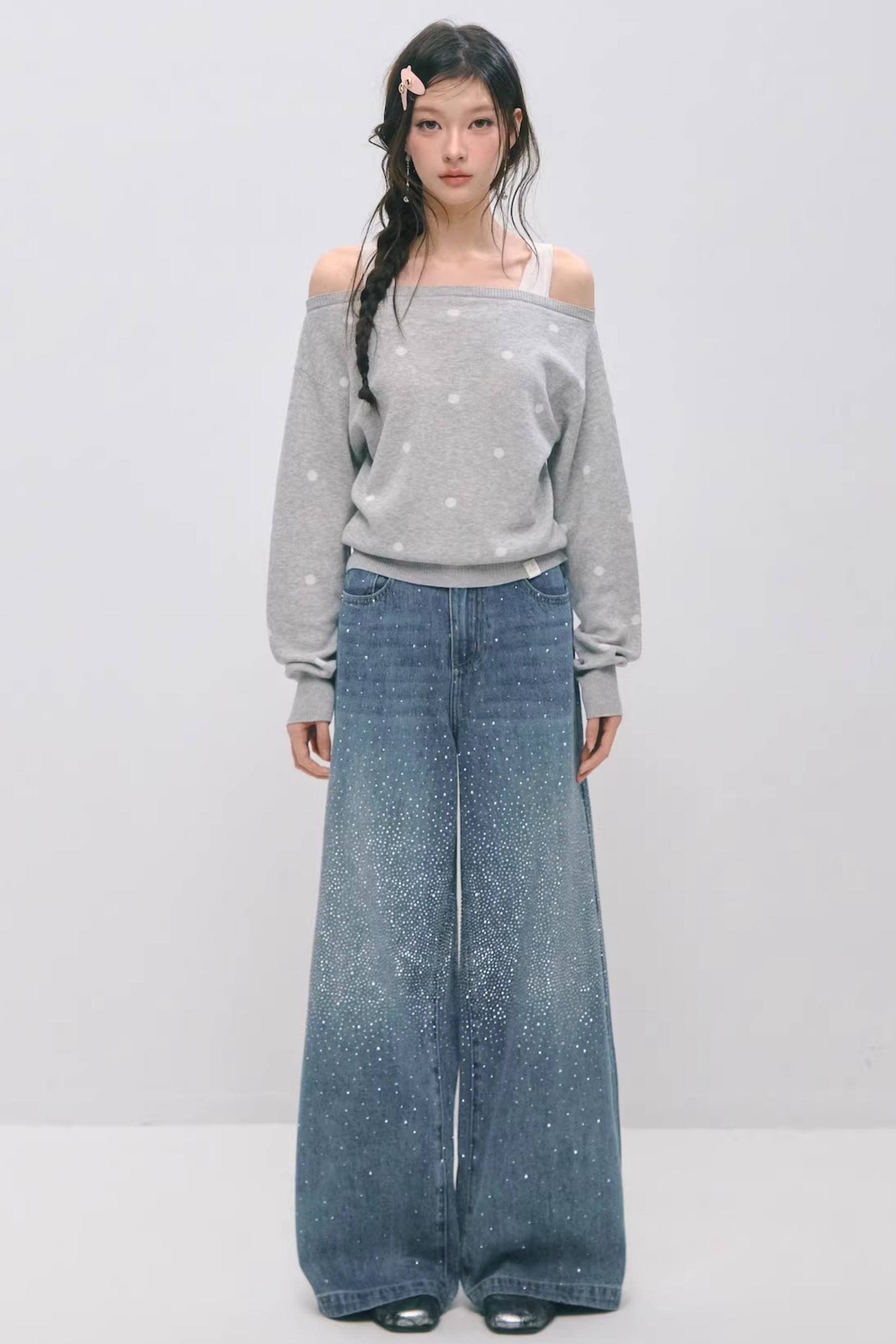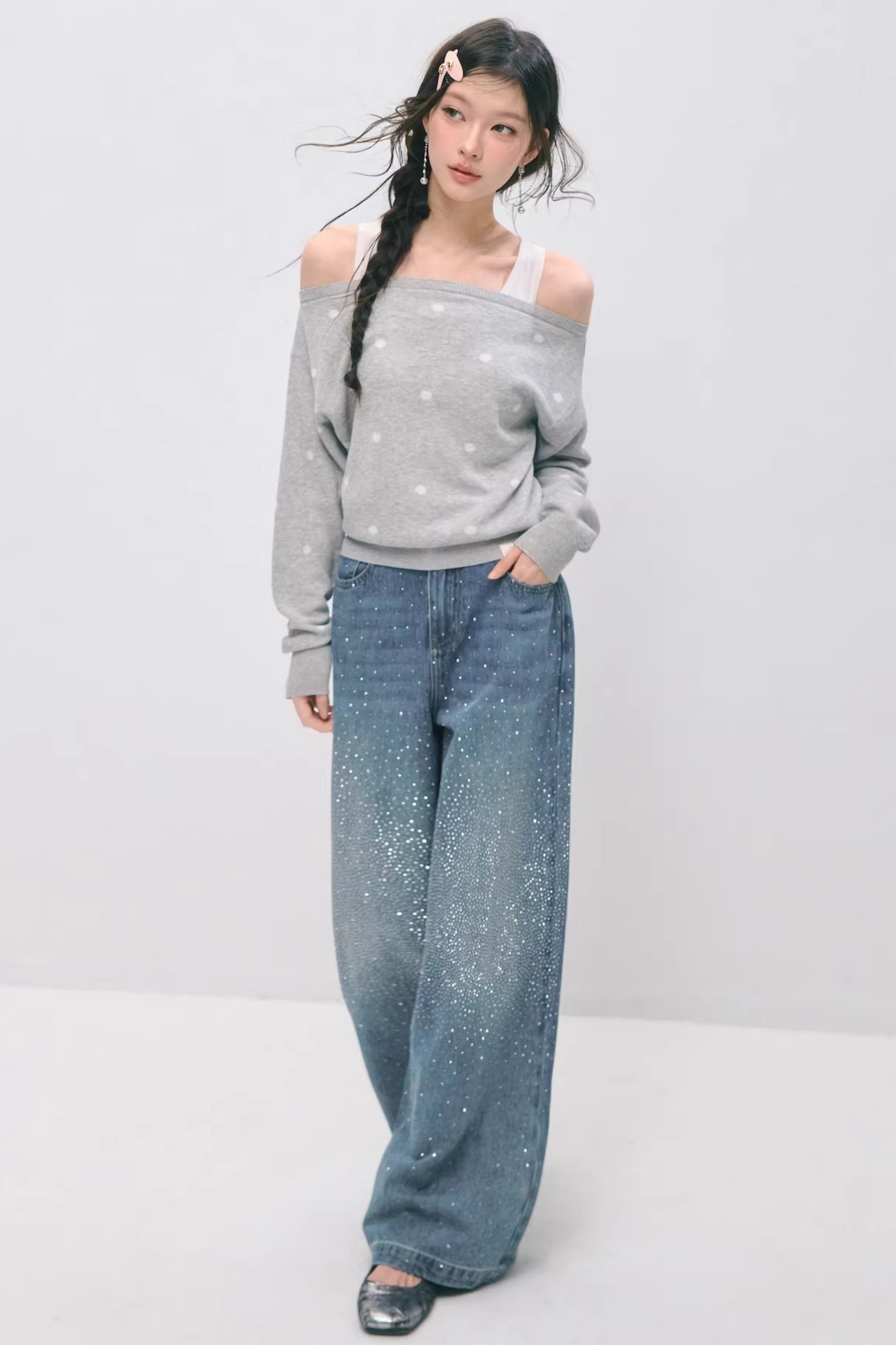 Somesowe 레트로 스트레이트핏 스파클링 청바지