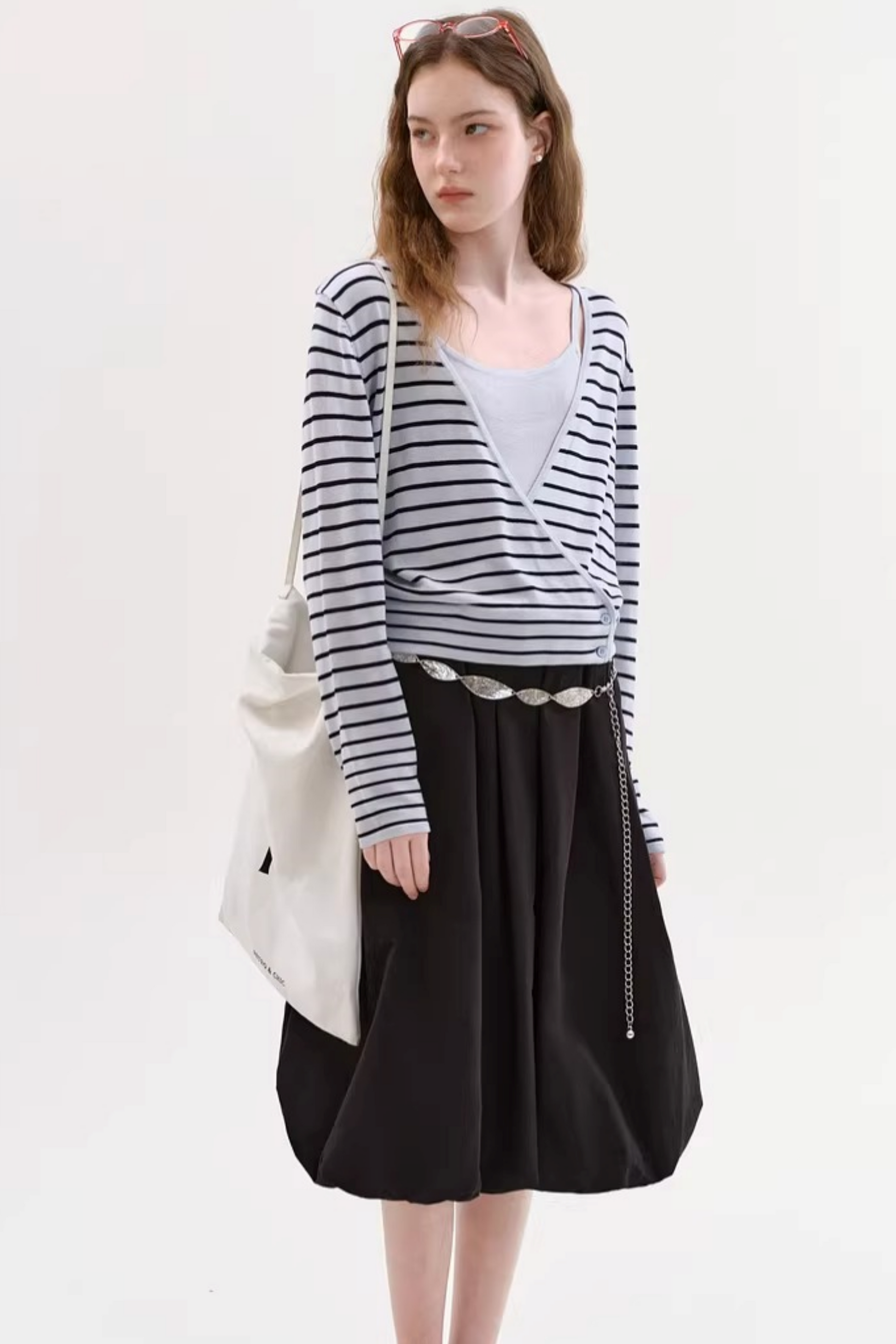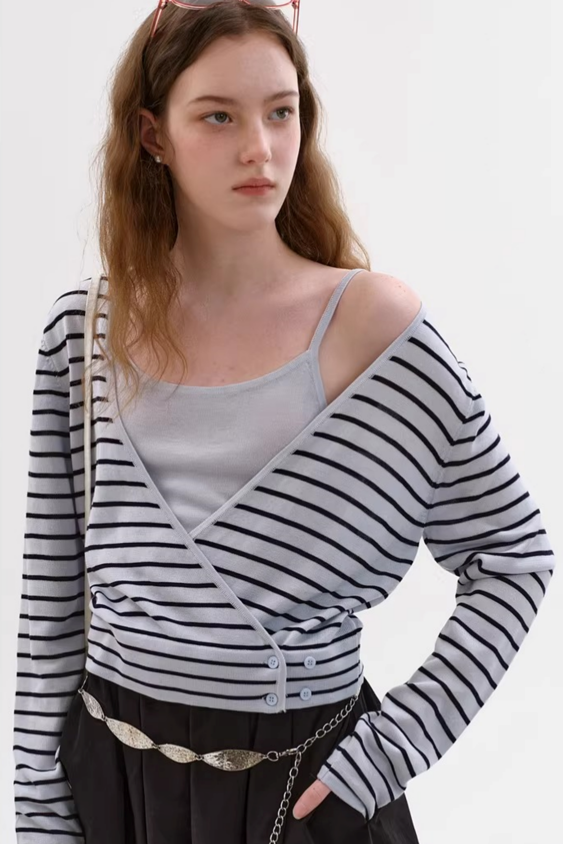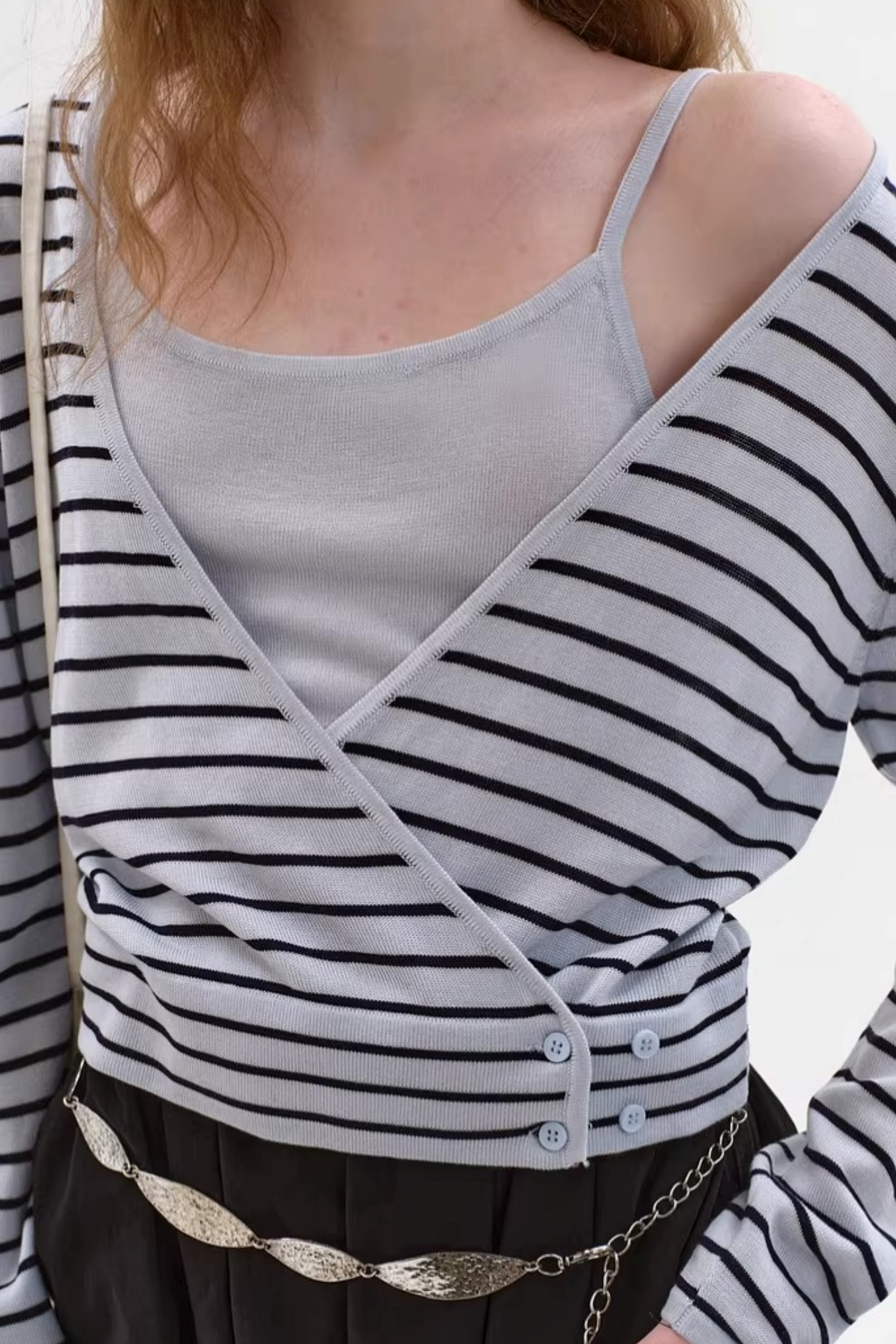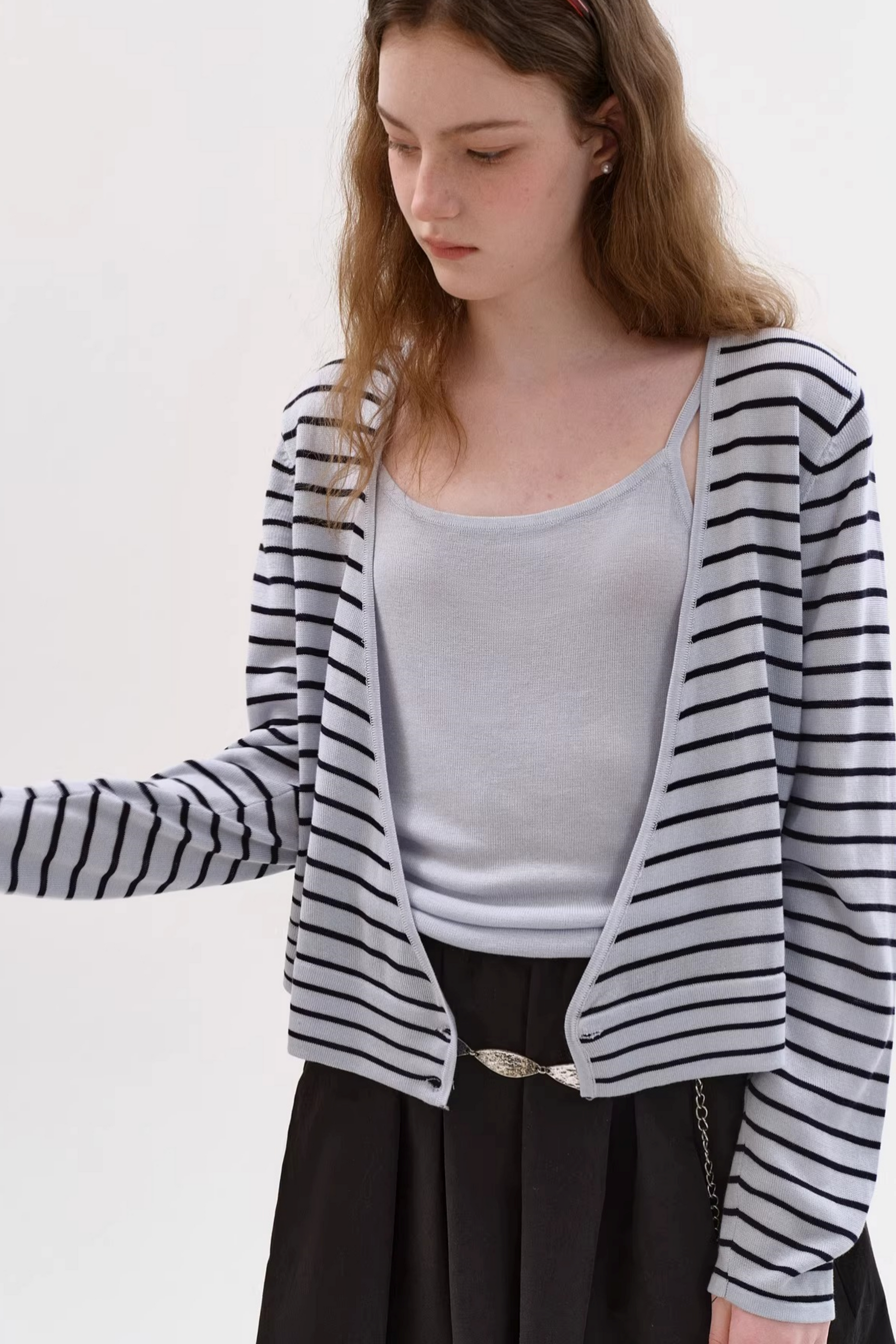 텐셀 스트라이프 가디건 세트