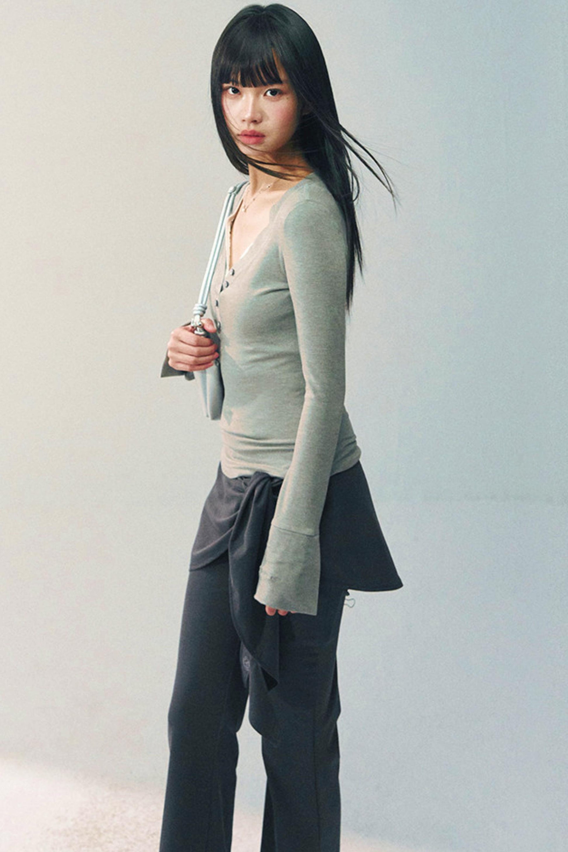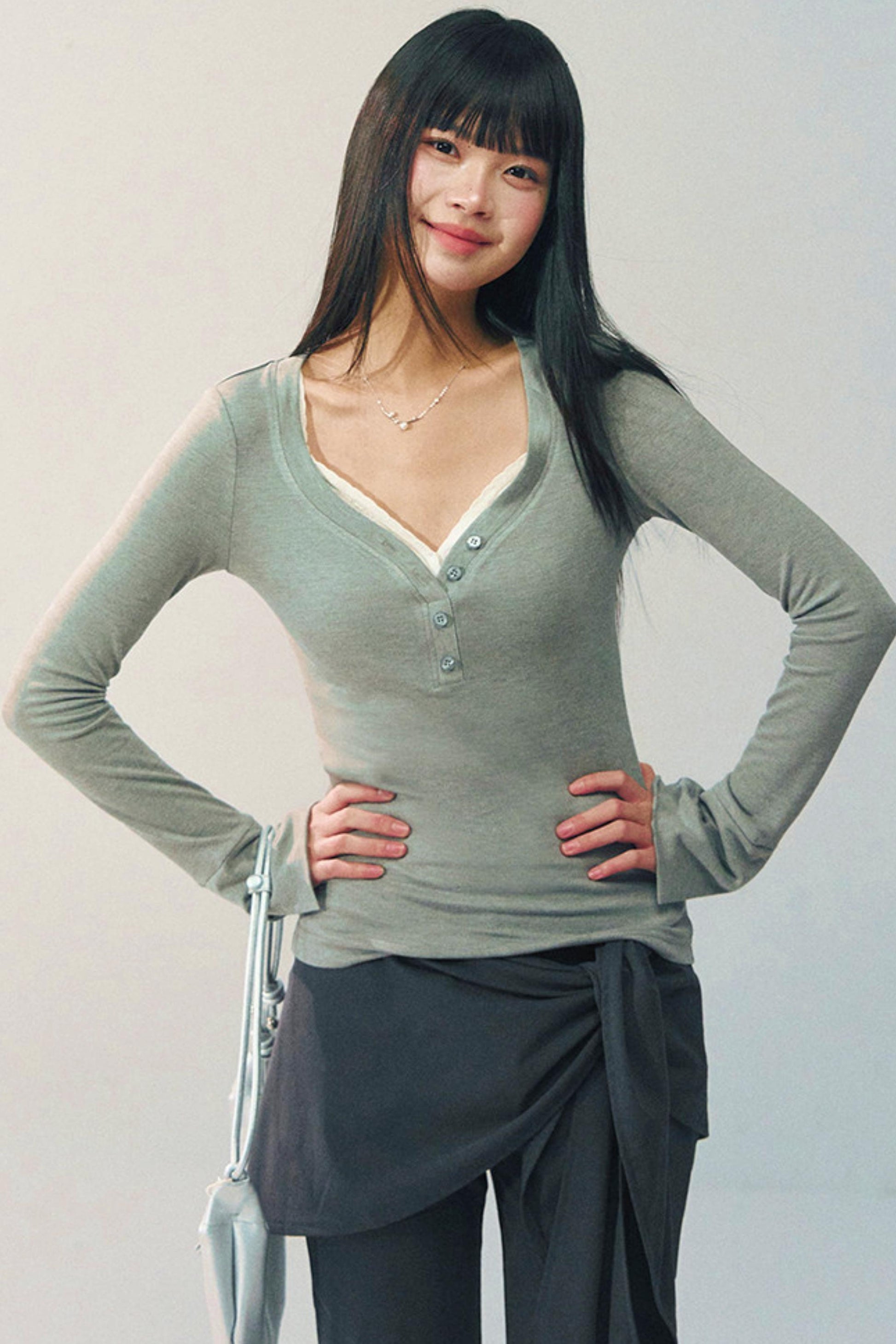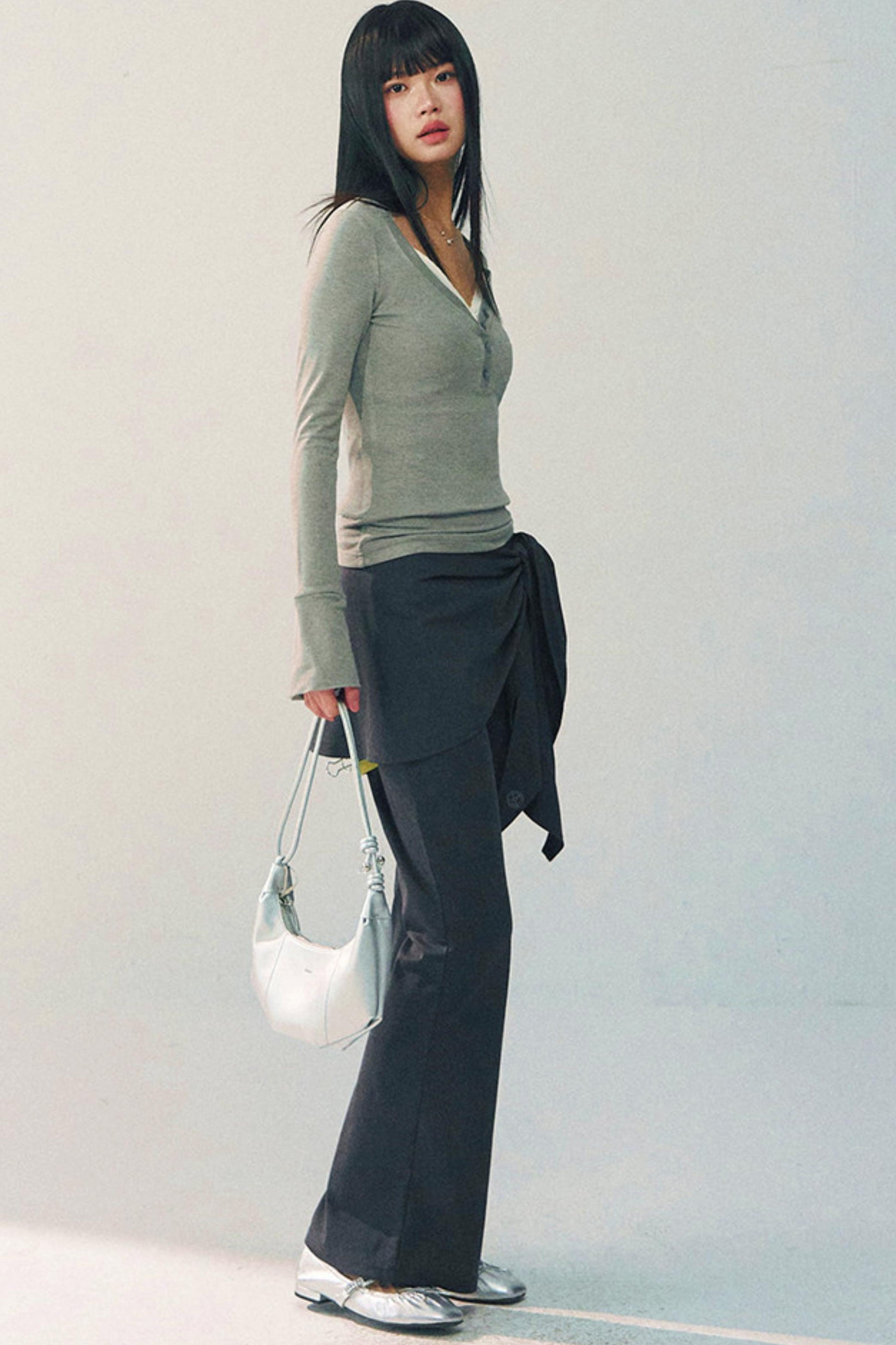 브이넥 슬림 탑