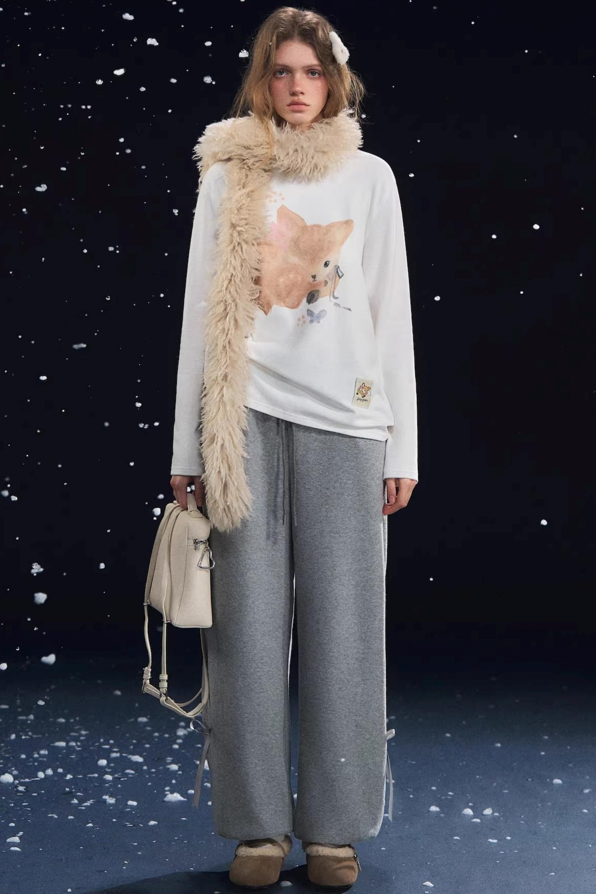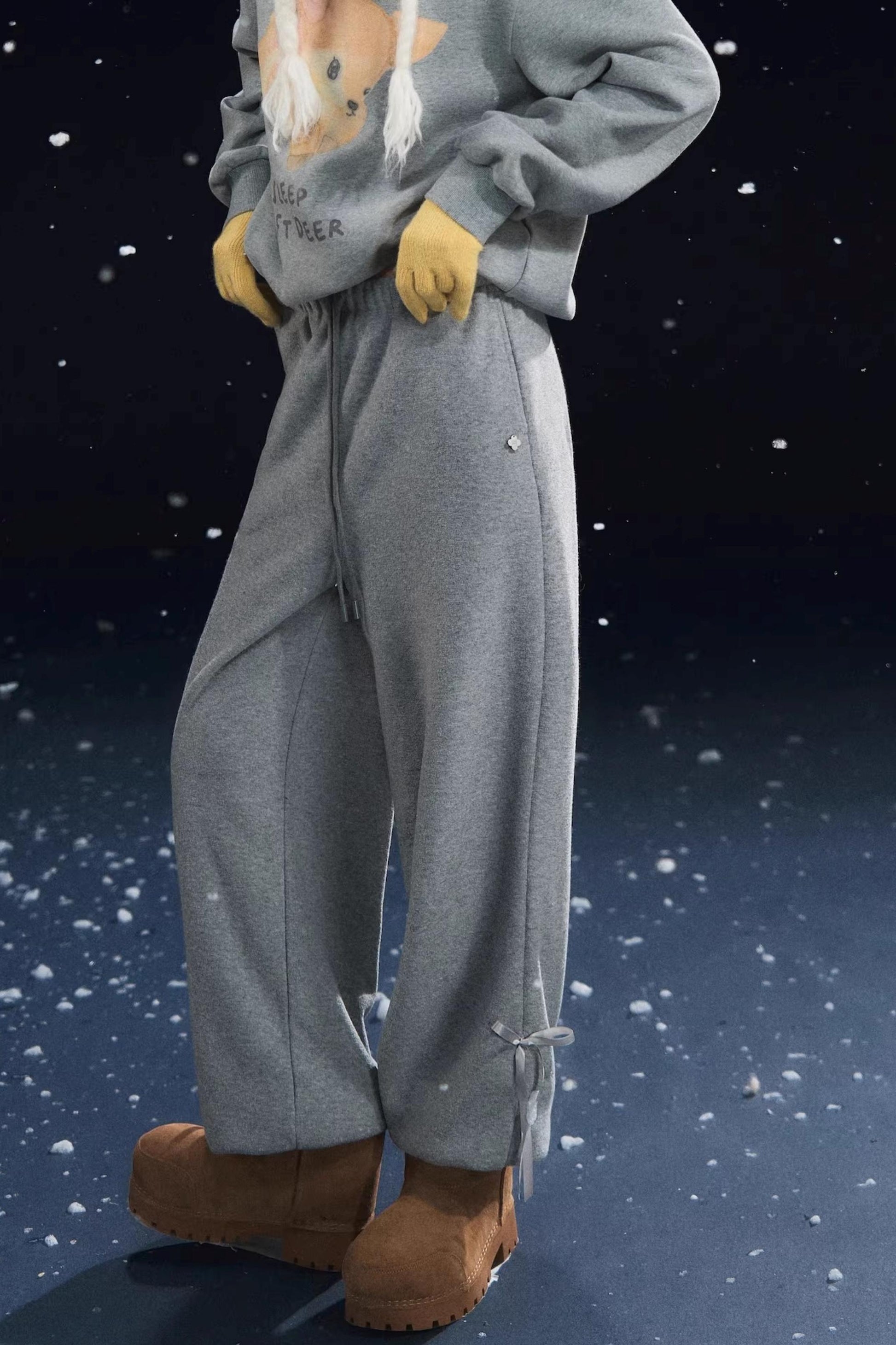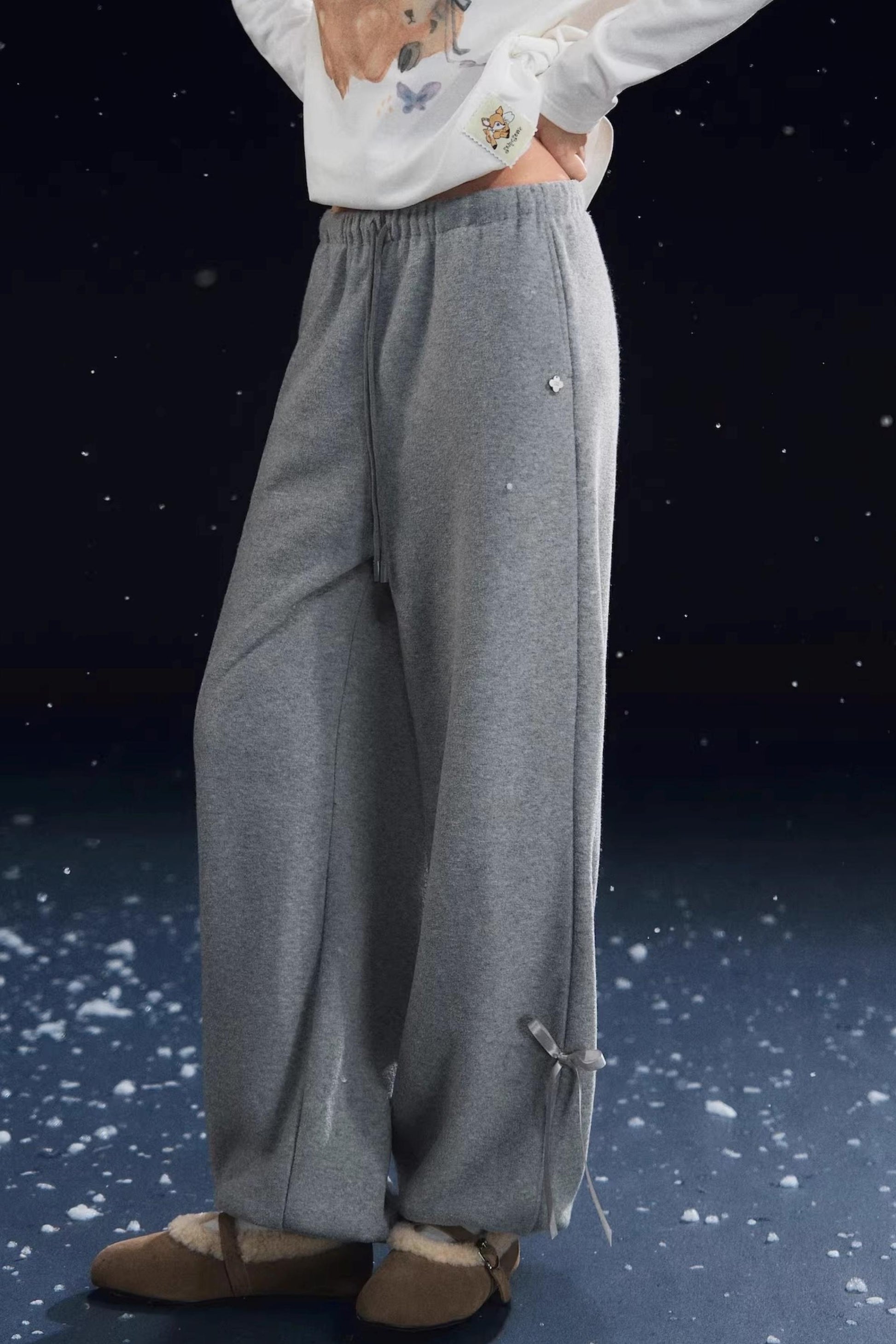 Velvet-Feel Cuffed Lantern Casual Pants