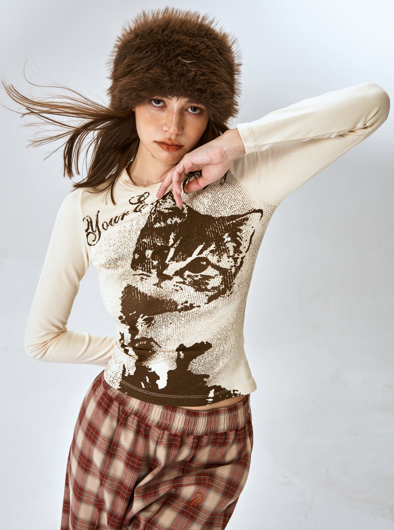 American cat slim long sleeve T-shirt