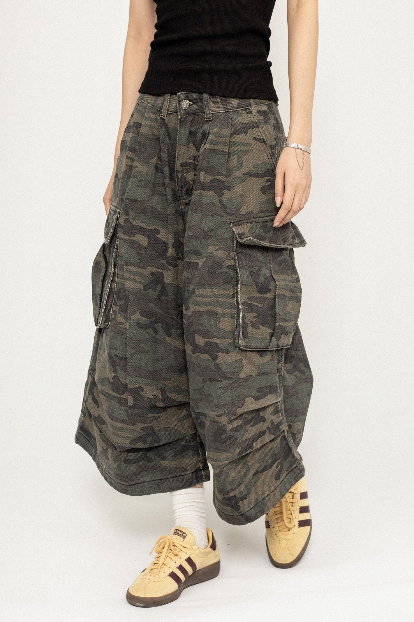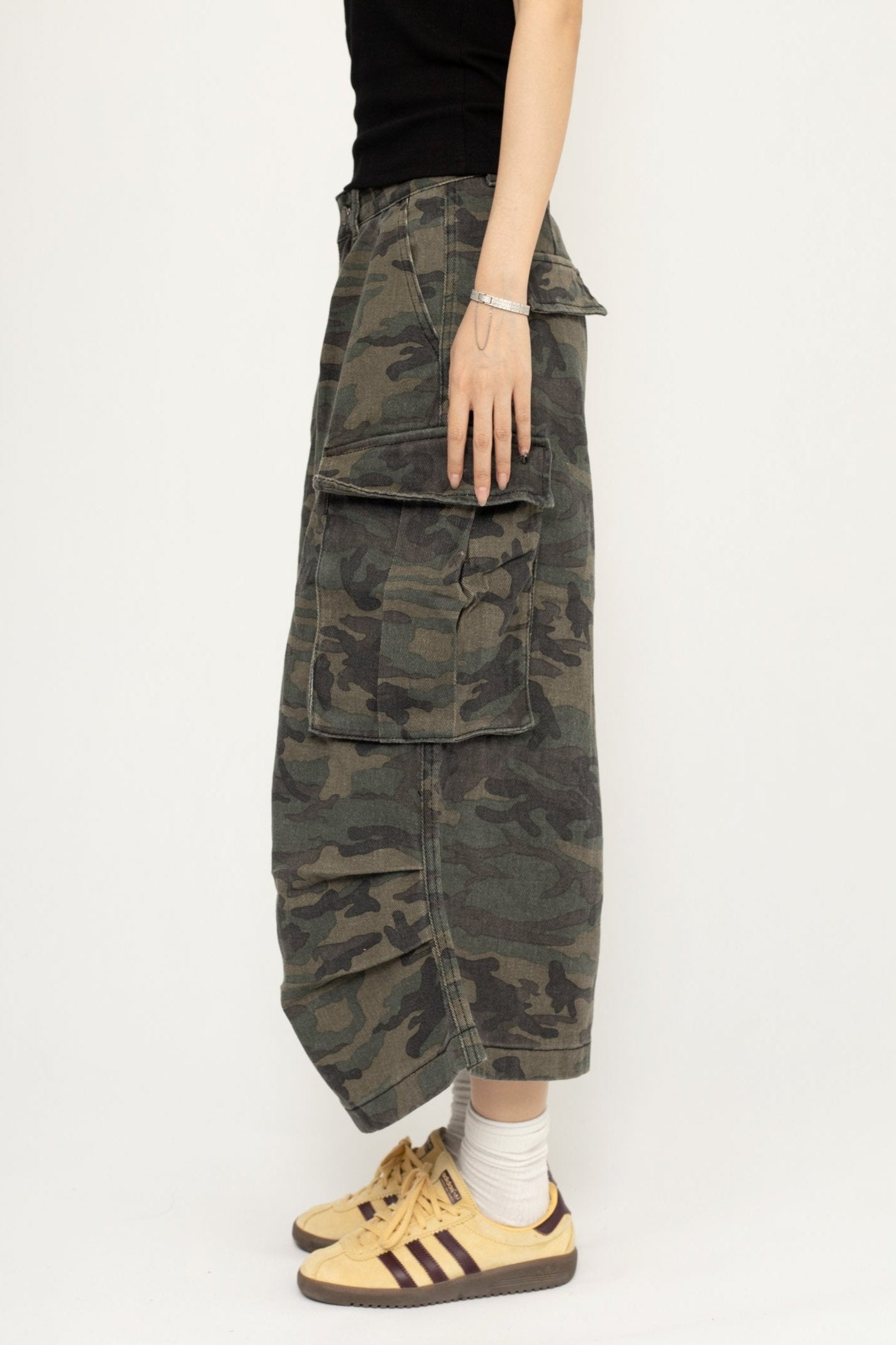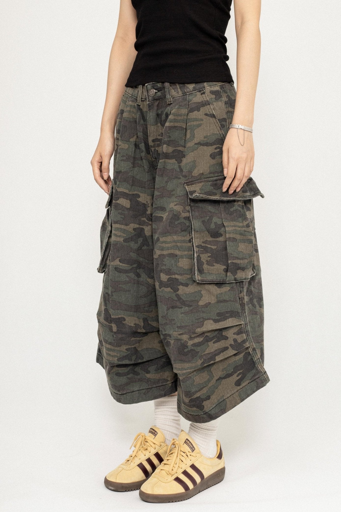 | サイズ | ウエスト (㎝/in) | ヒップ (㎝/in) | 着丈 (㎝/in) | 裾幅 (㎝/in) |