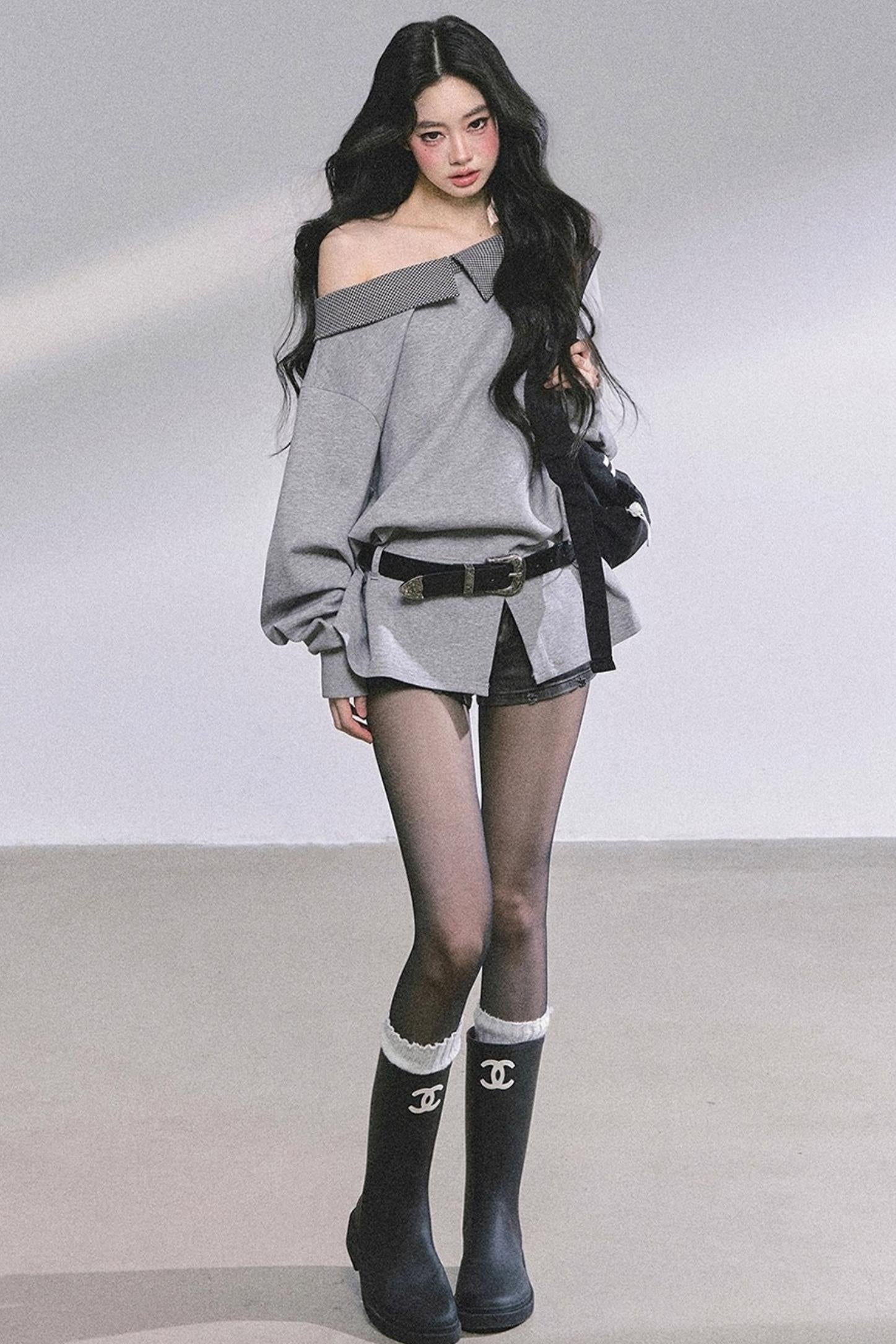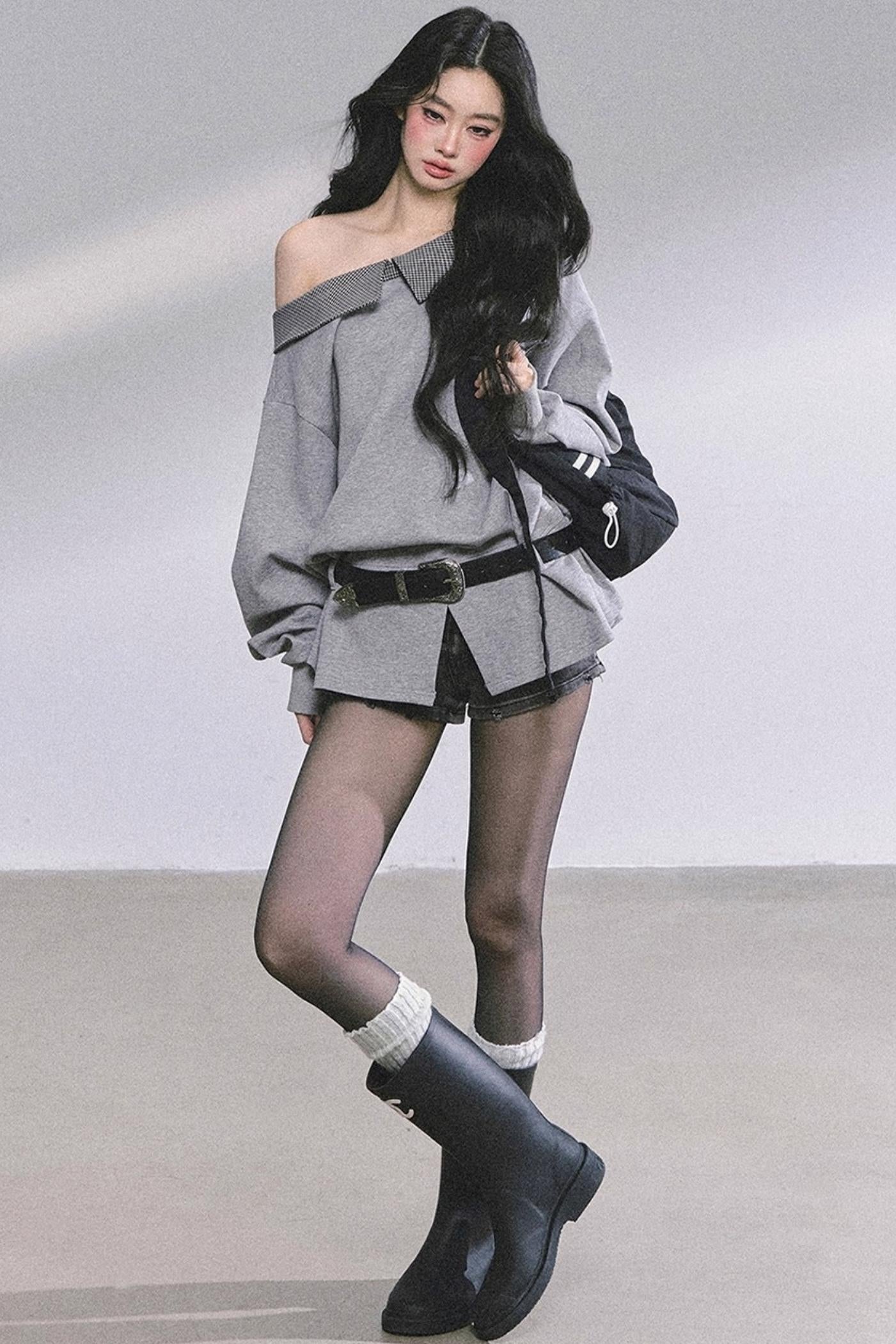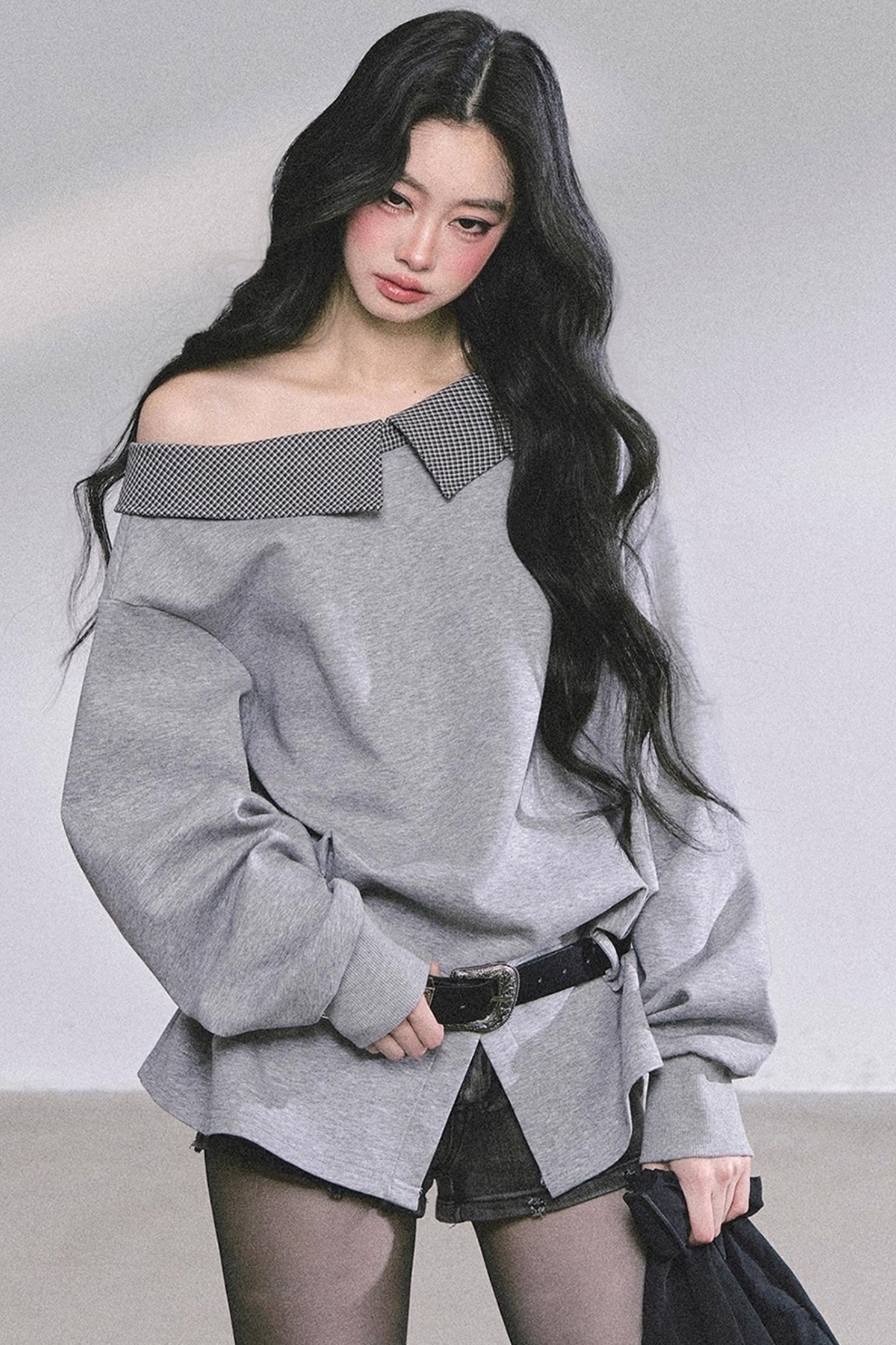 American Slanted Shoulder Plaid Sweatshirt