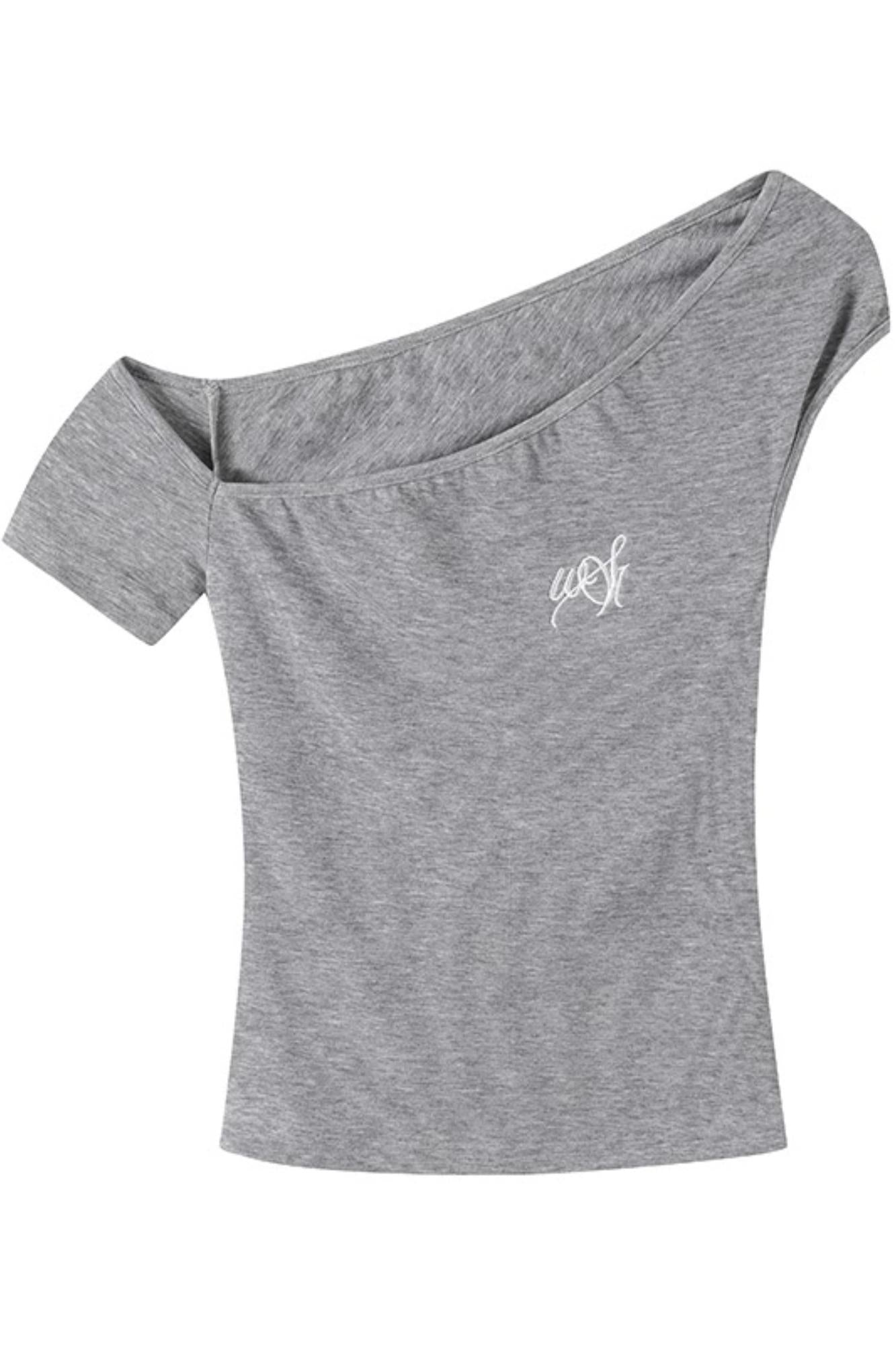 Asymmetrical Grey Top & Polka Dot Maxi Skirt Set-Up