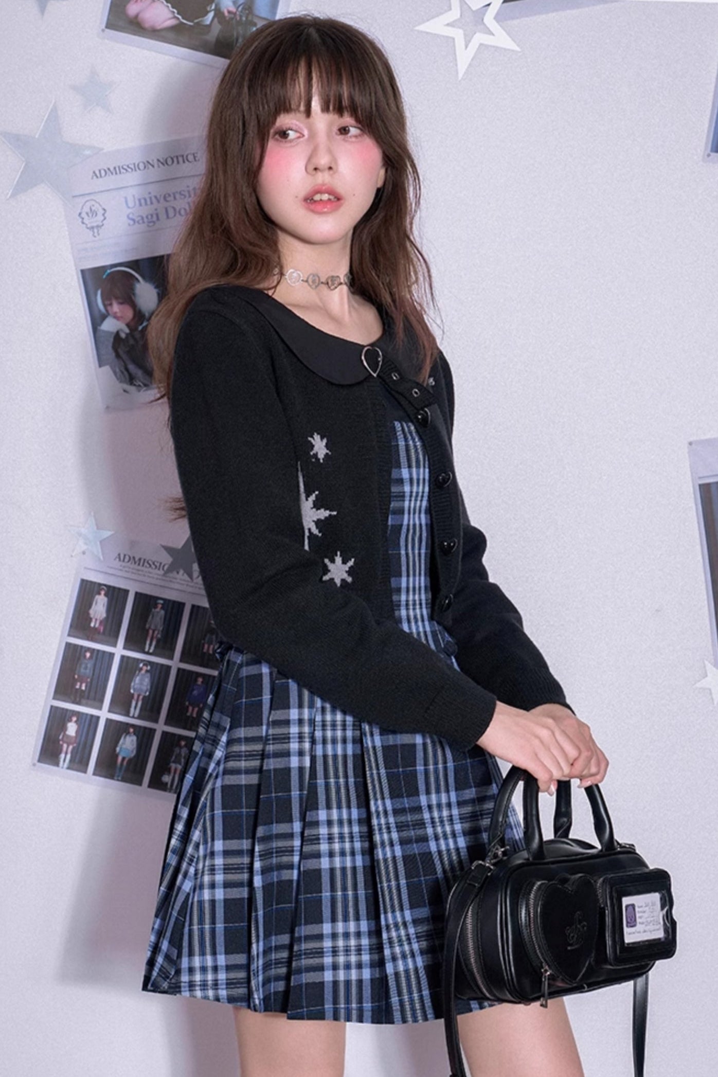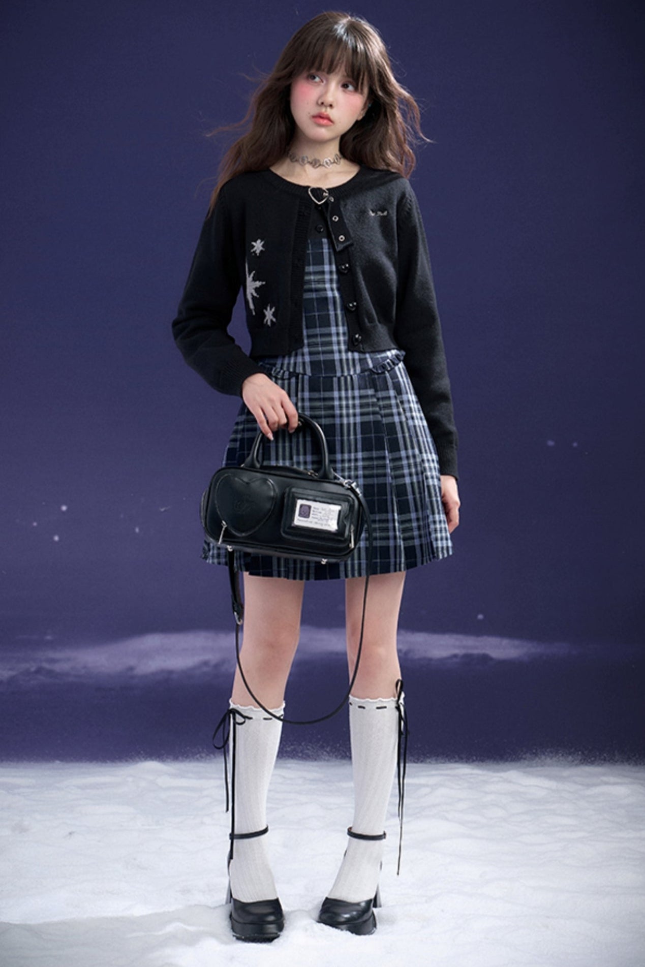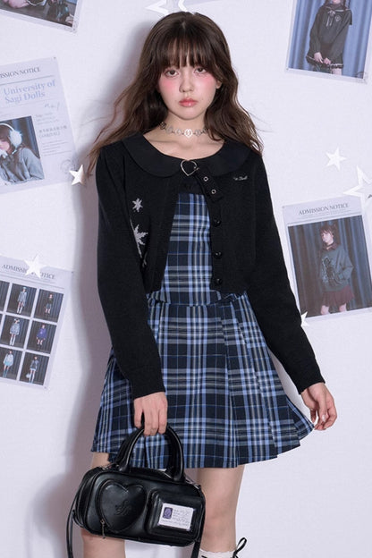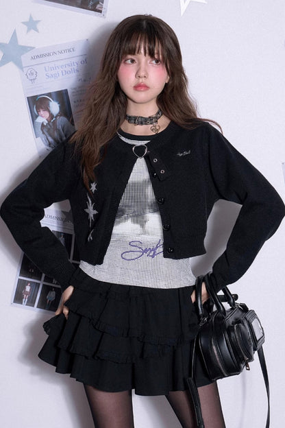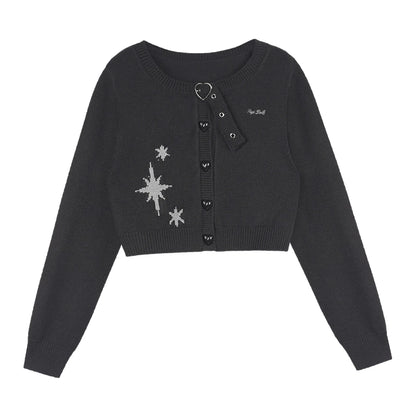 Black Heart Button Cropped Cardigan Sweater